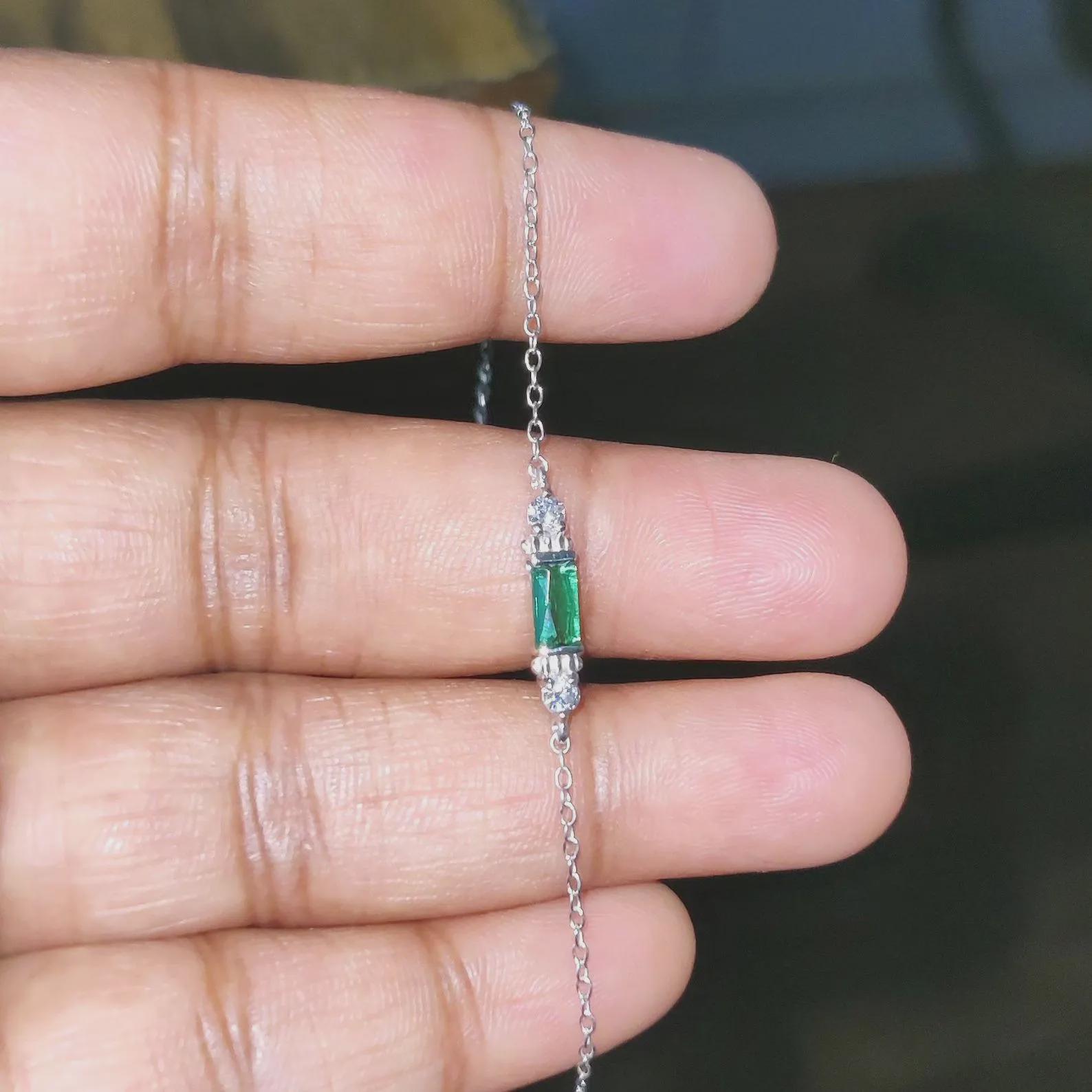 0.20Ct Baguette Cut Simulated Emerald Bracelet 14K White Gold Finish Sterling 925 Silver Bracelet Gift For her Birthday Gift and Party Wear