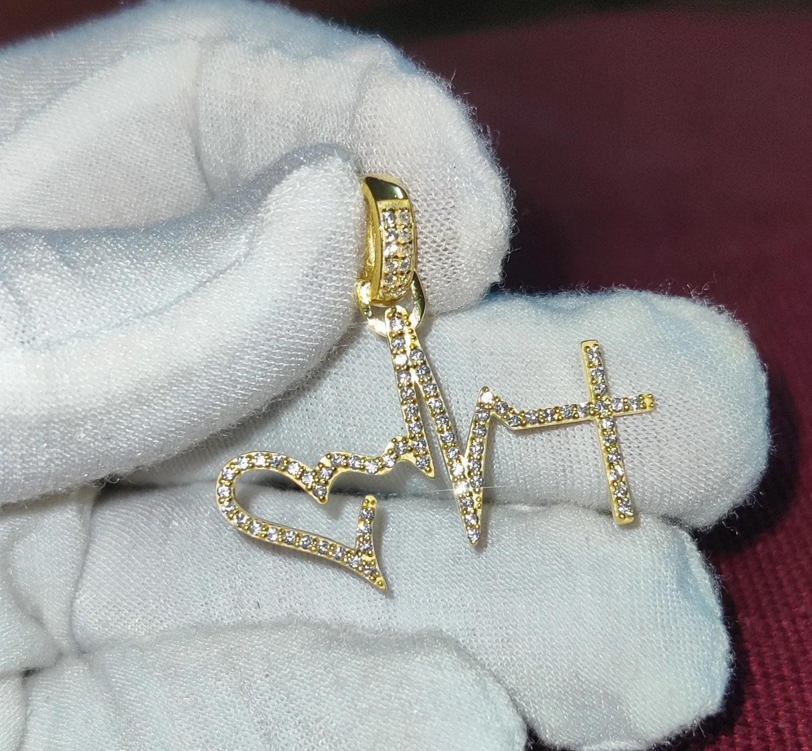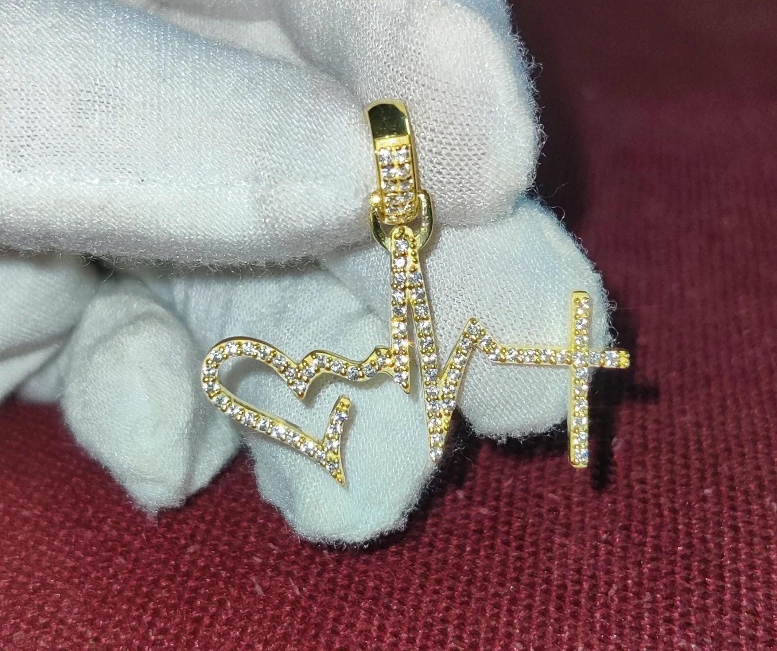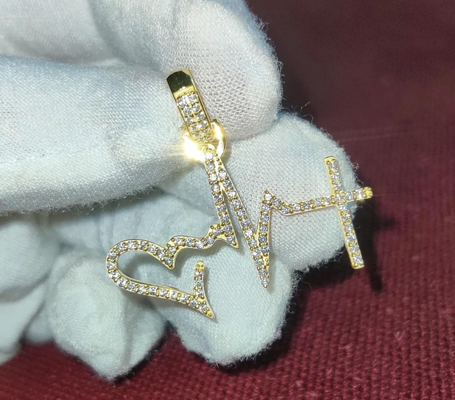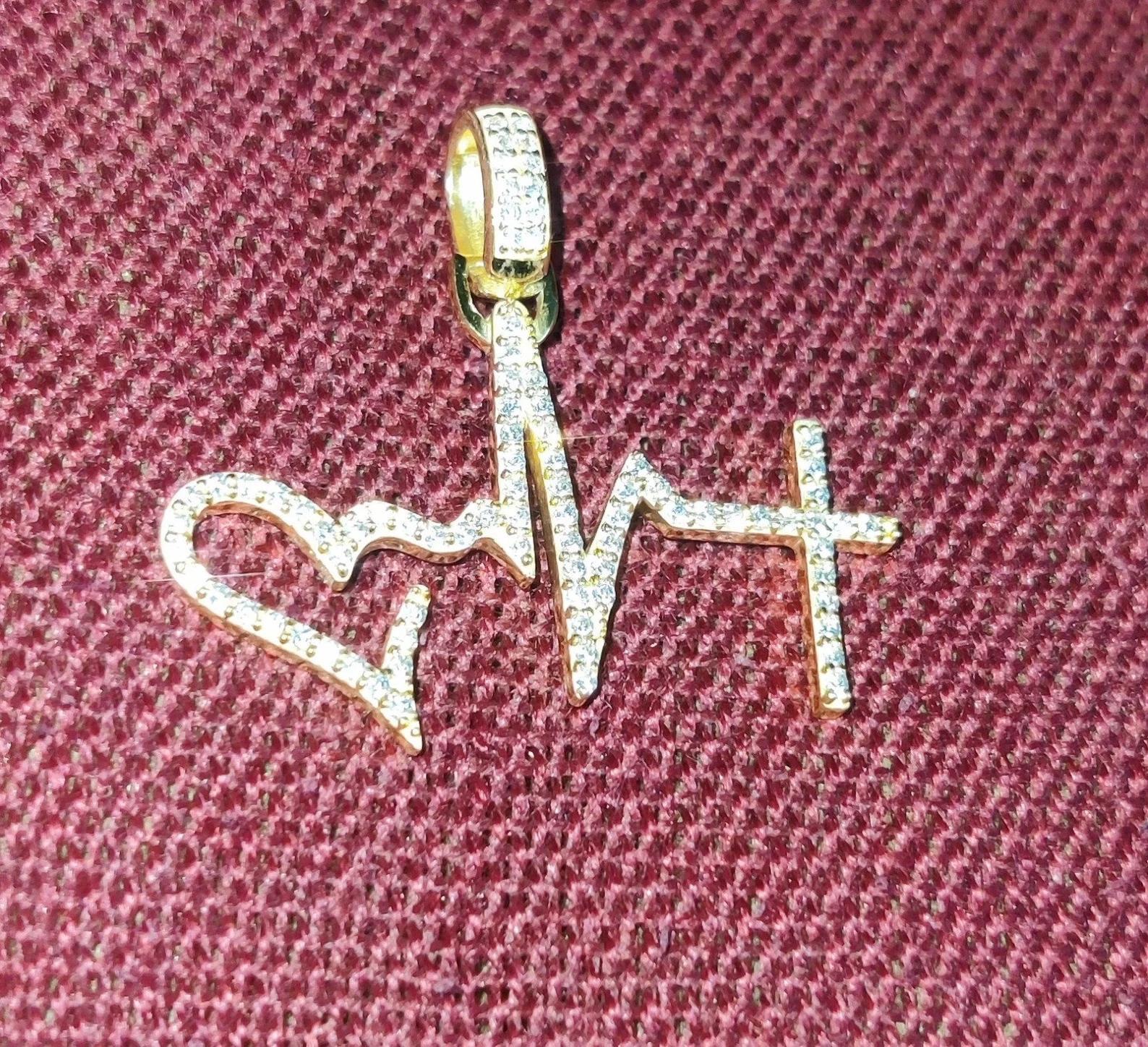 1.50Ct Diamond Round Cut Simulated Diamond Pendant, Love Heartbeat Pendant 14K Yellow Gold Finish 925 Sterling Silver Birthday Party Pendant