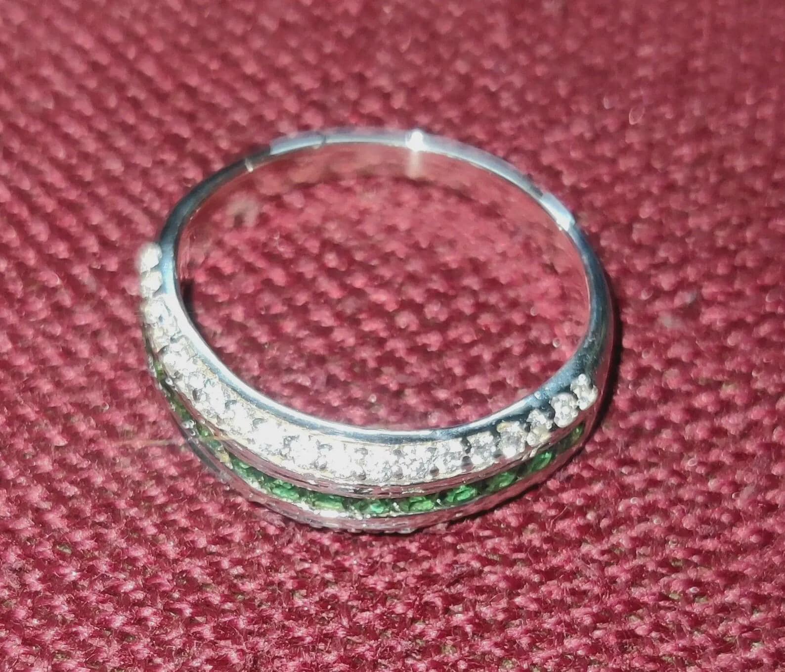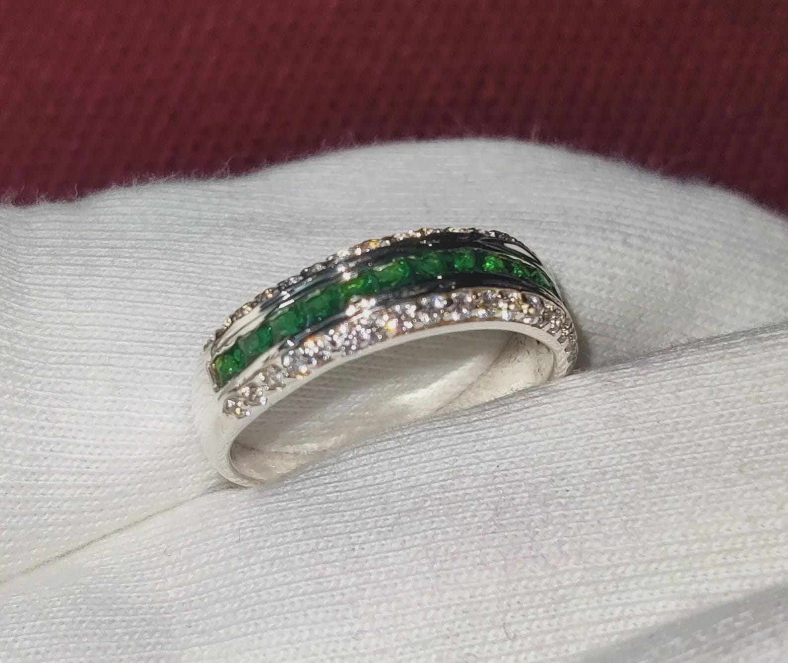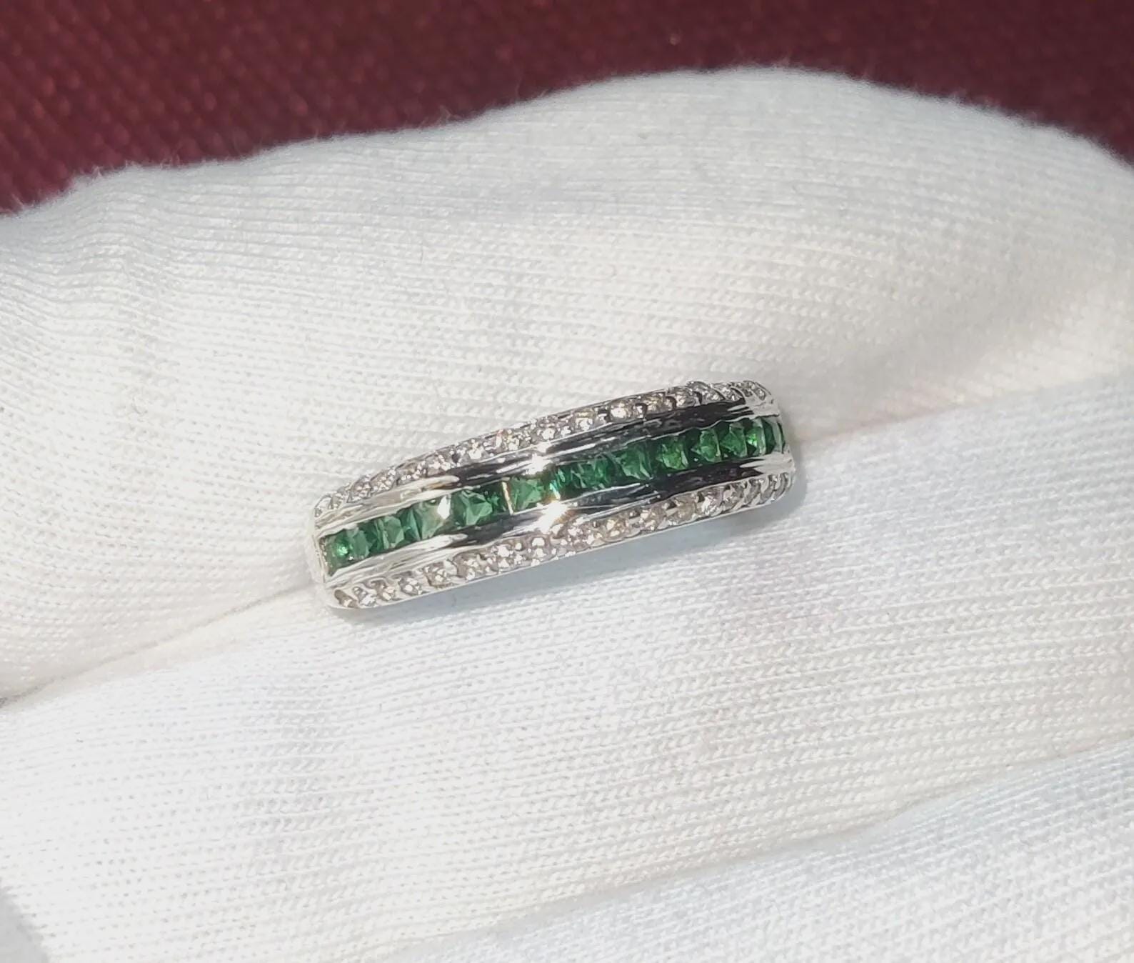 1.50Ct Emerald Princess Cut Simulated Emerald Diamond Band Engagement Anniversary Ring Prong 14K White Gold Finish 925 Sterling Silver