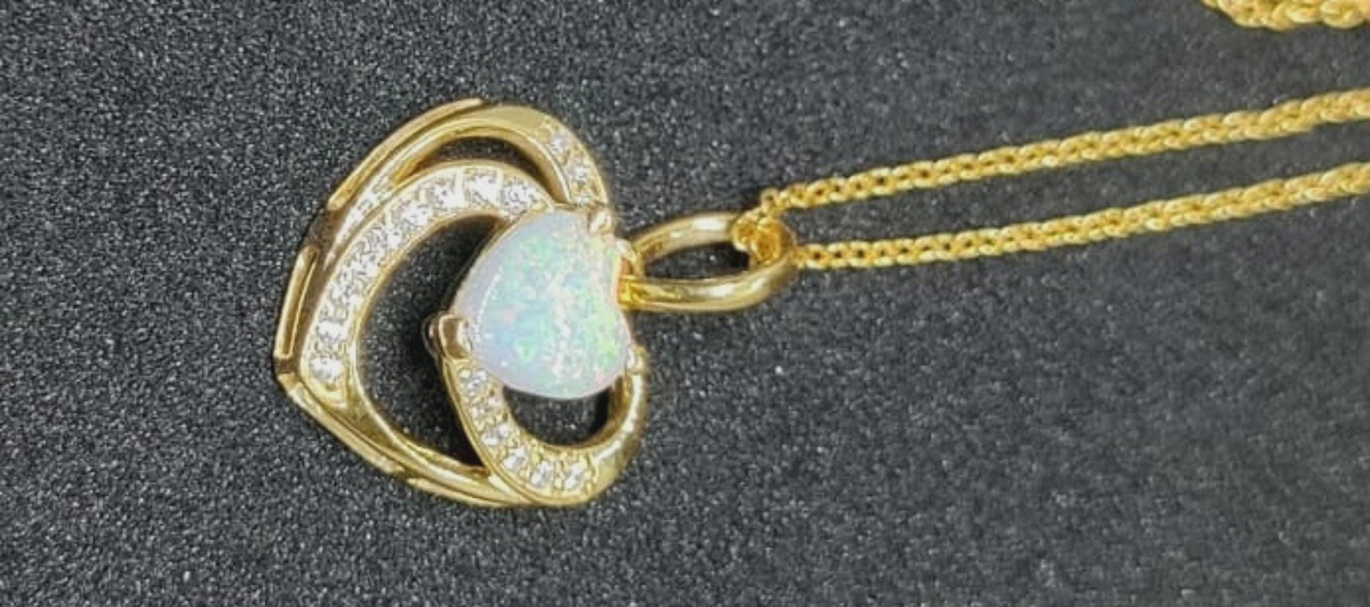 1.50Ct Heart Cut Fire Opal Open Heart Shape Pendant In 14K Yellow Gold Finish With 18''Free Chain