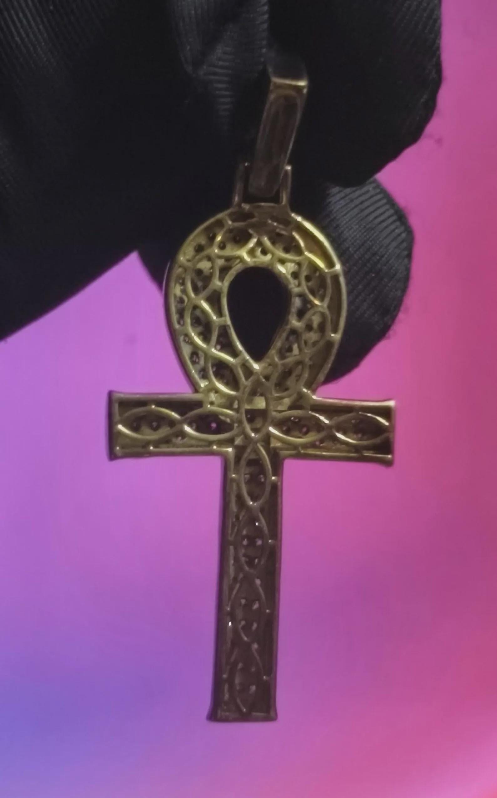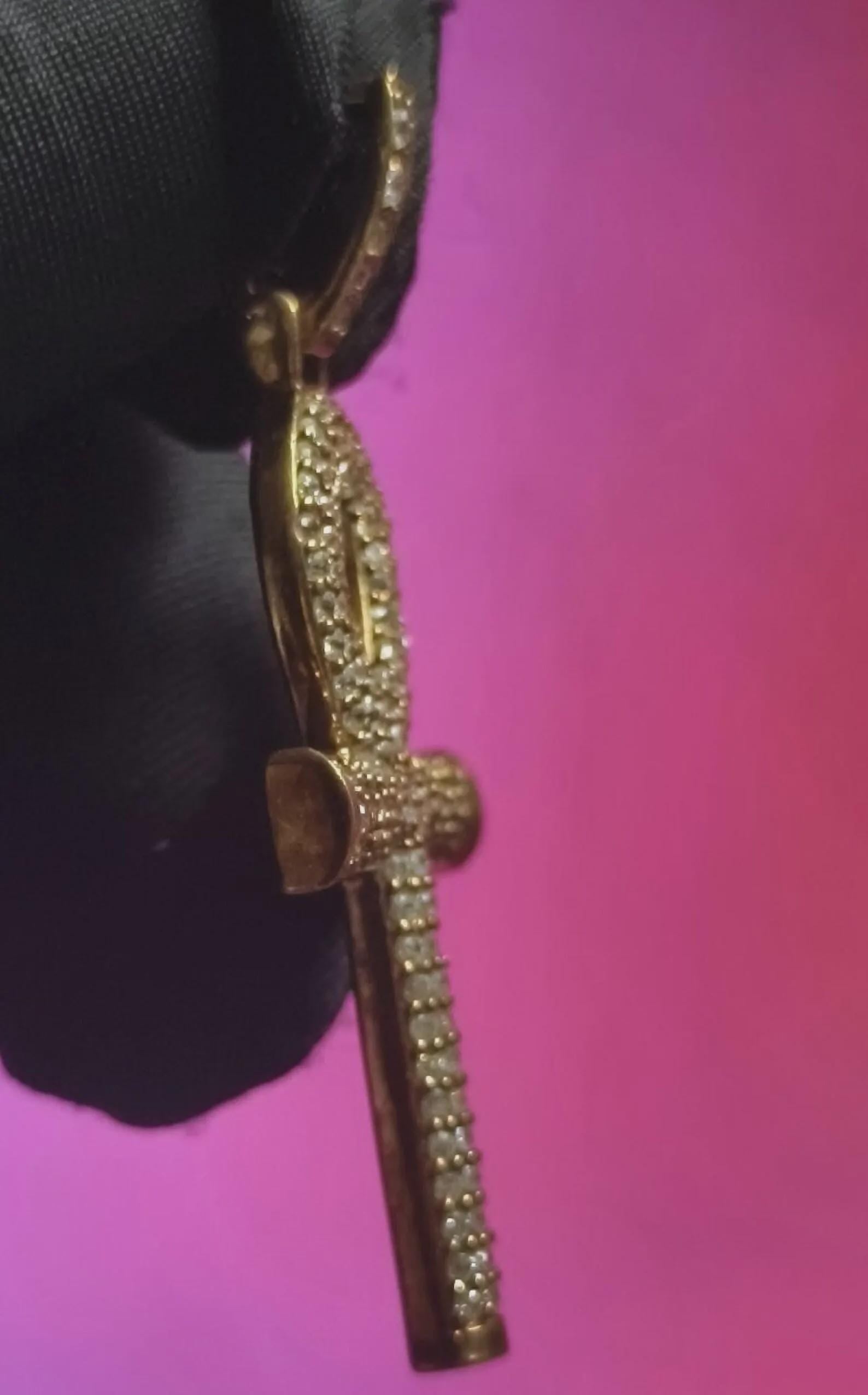 1.50Ct Moissanite Cross Pendant Round 14K Yellow Gold Plated 925 Sterling Silver, Hip Hop Pendant, Christmas Religious Pendant