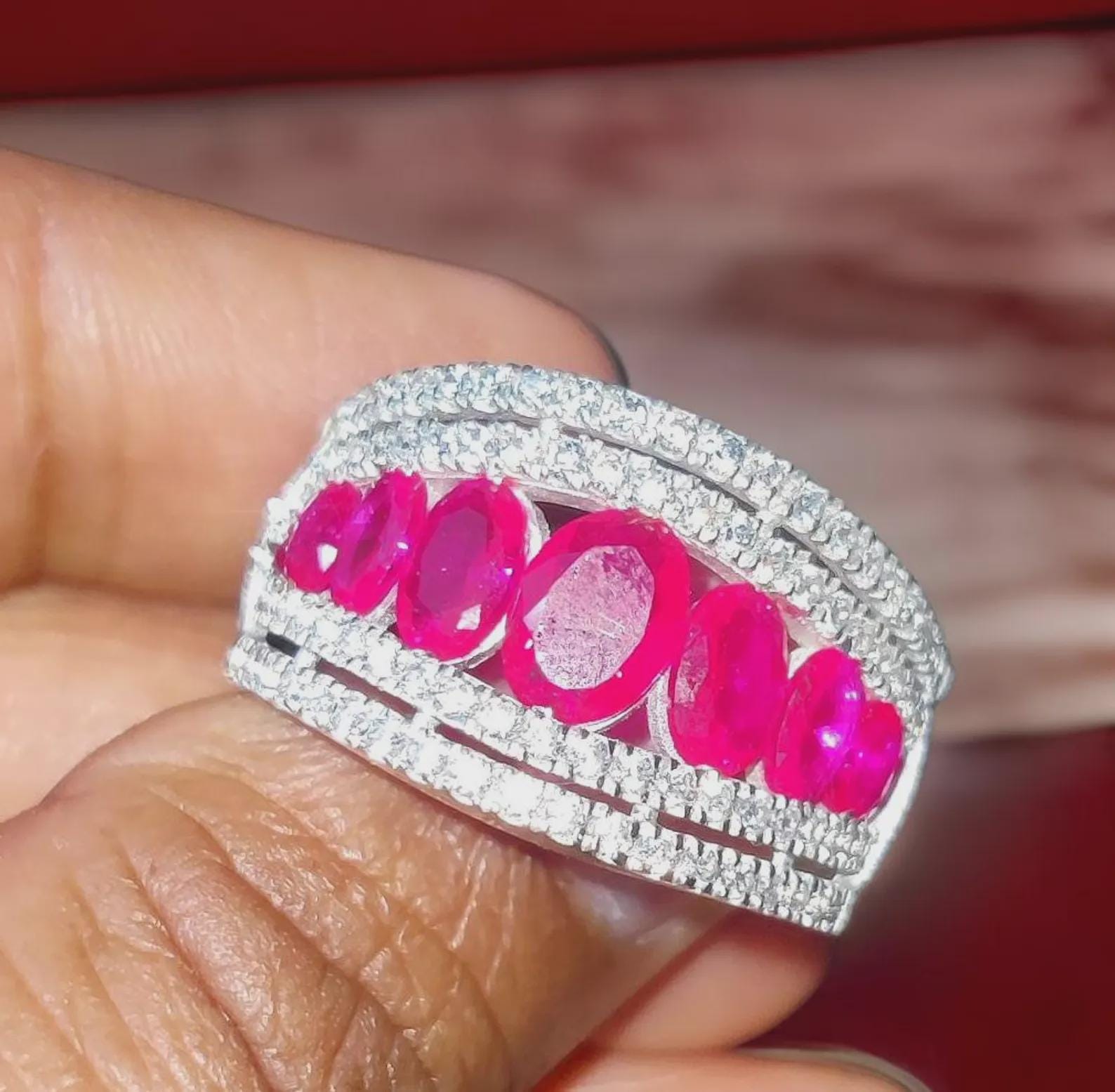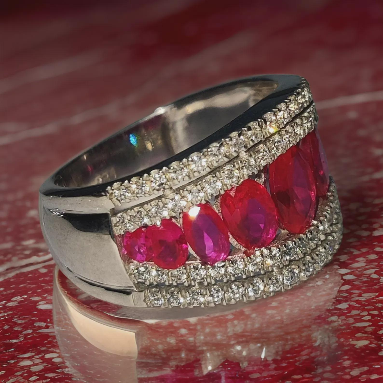 1.50Ct Oval Cut Lab-Created Red Ruby Wedding Engagement Band Ring 14K White Gold Finish 925 Silver Red Ruby Cocktail Wedding Band