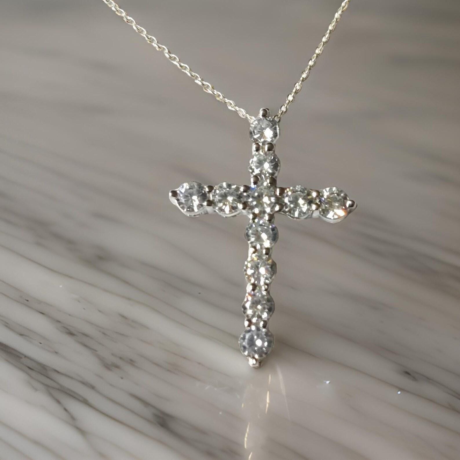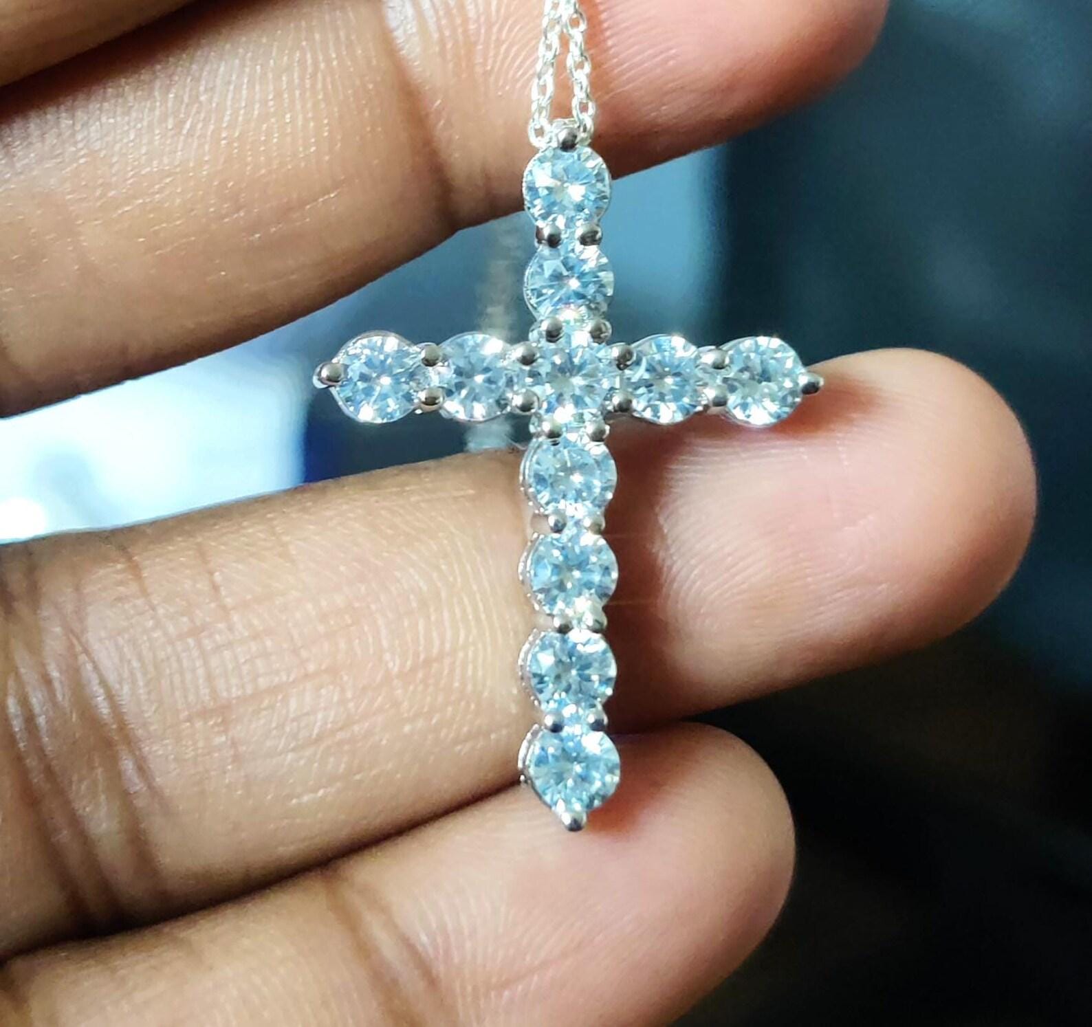 1.50Ct Round Cut Fancy VVS1 Diamond Cross Pendant 14k White Gold Plated- 925 Silver Free Chain