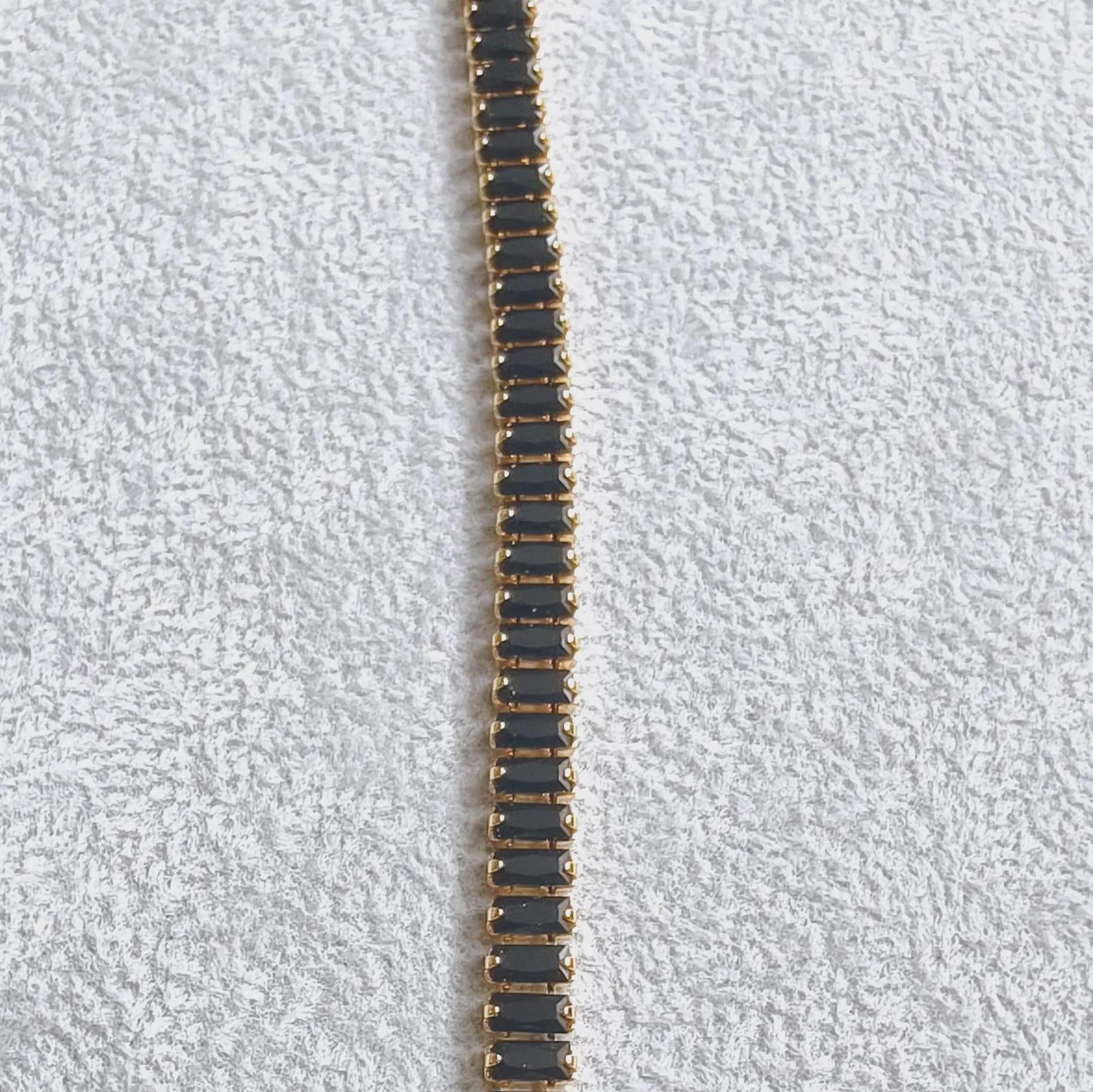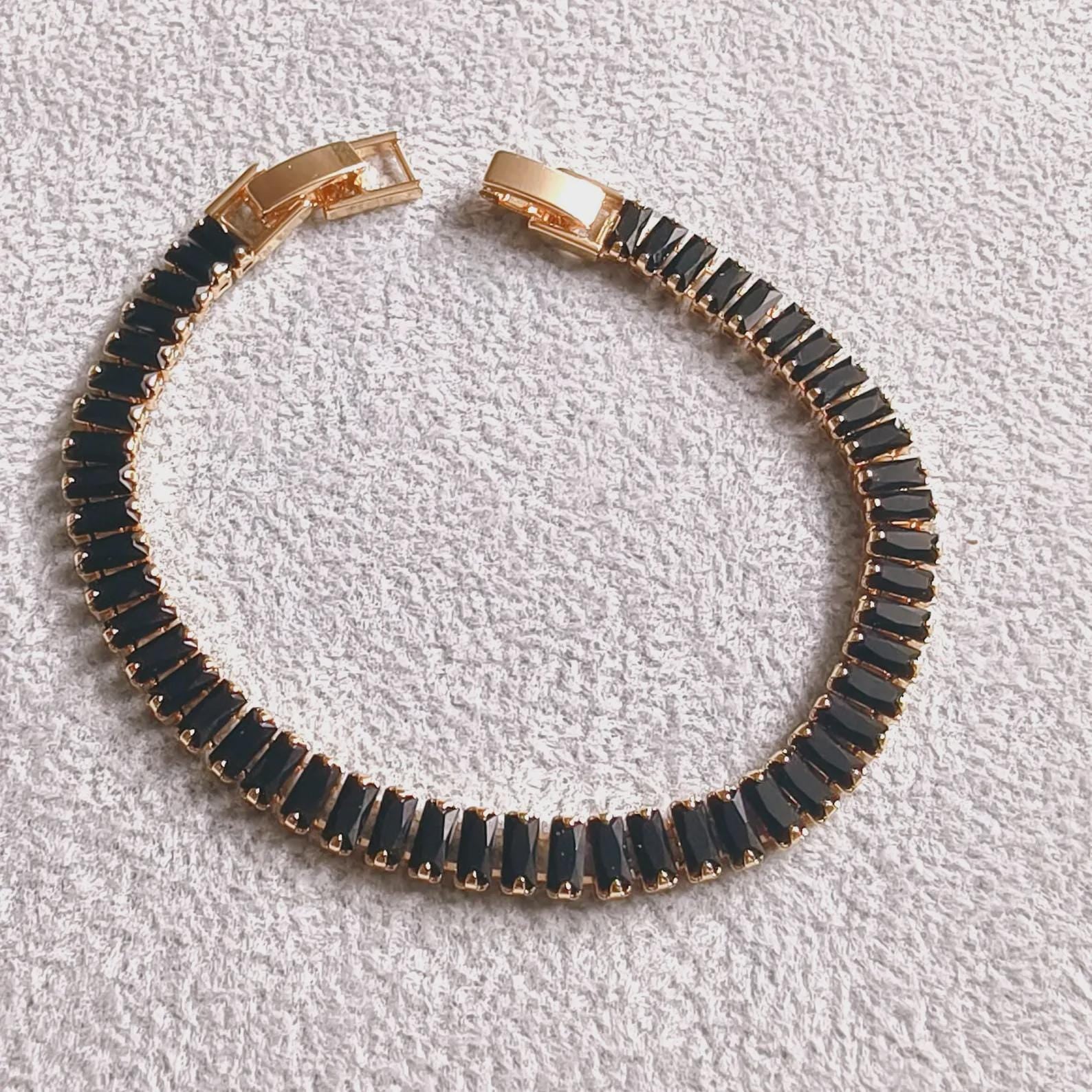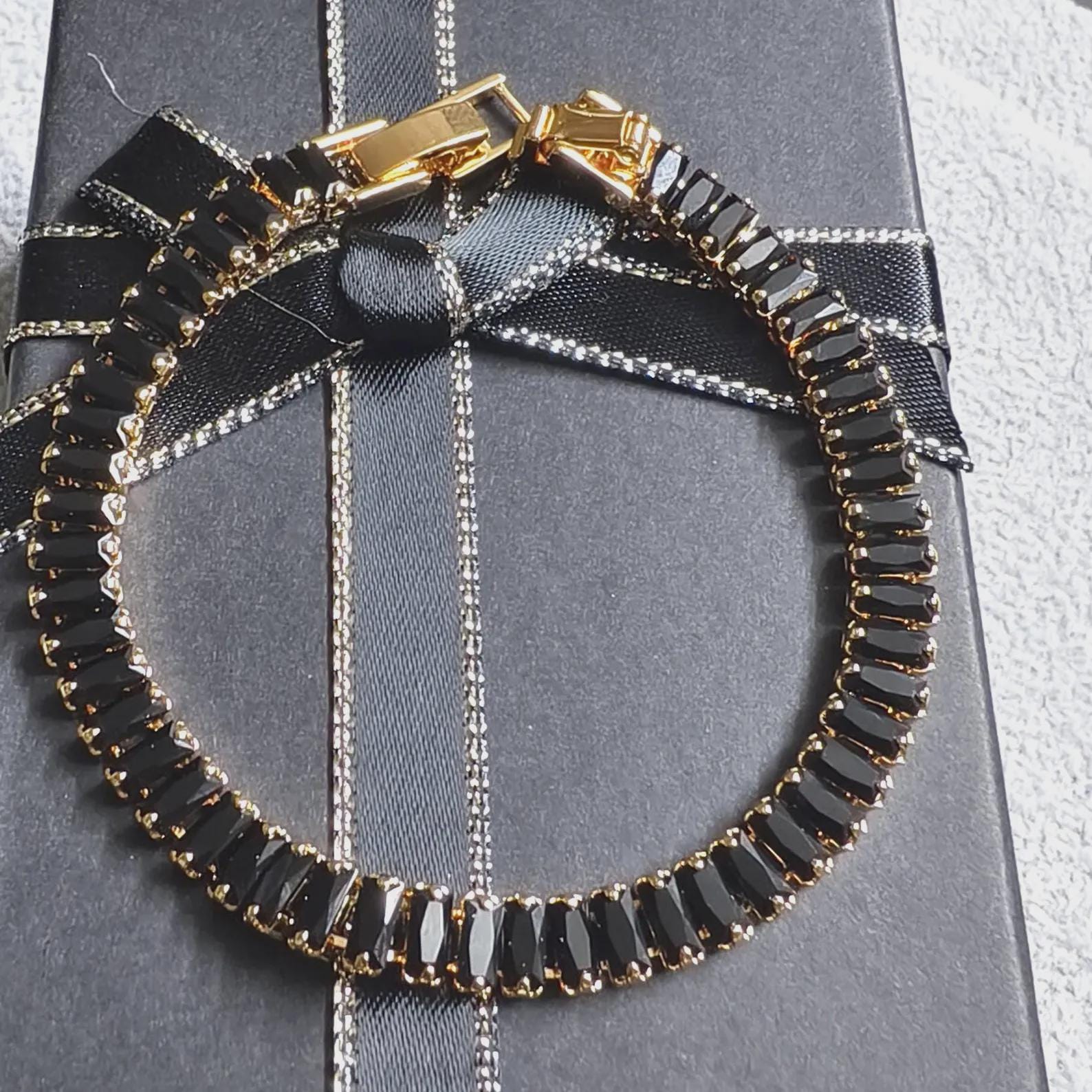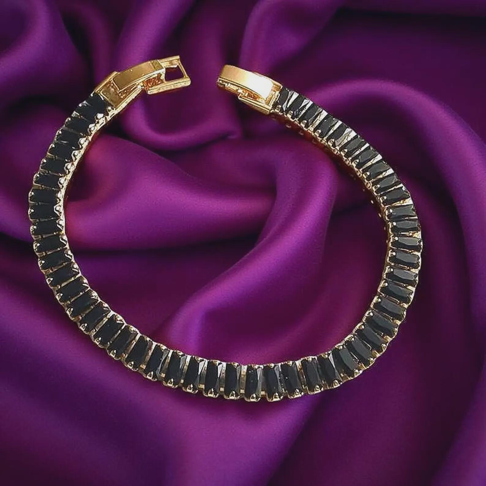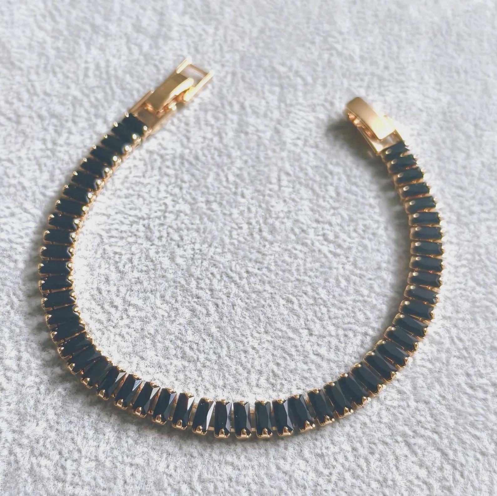 12Ct Baguette Cut CZ Black Diamond Lab-Created Spinel Tennis Bracelet 14K Yellow Gold Plated Diamond Bracelet Size 7.5" Inch 925 Silver