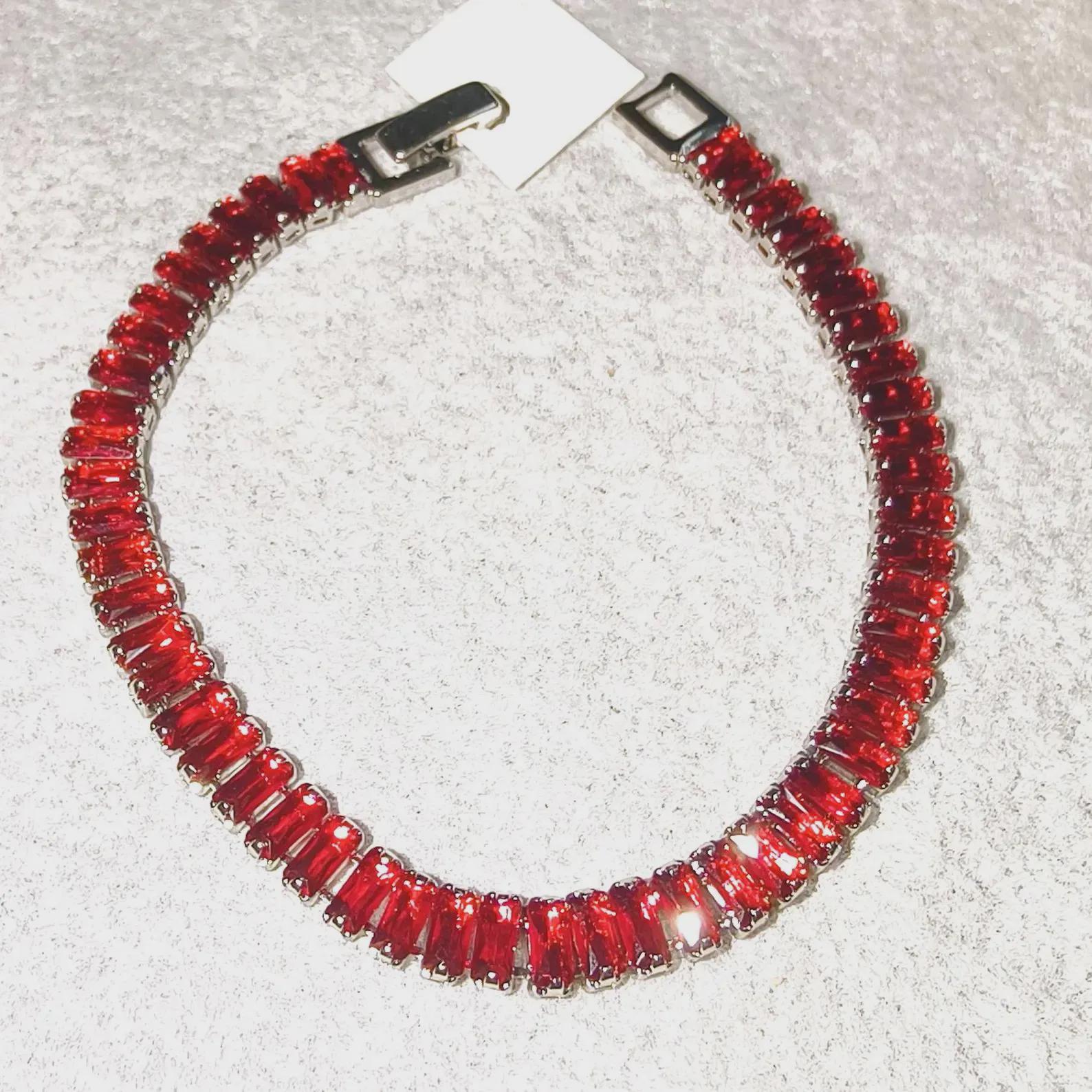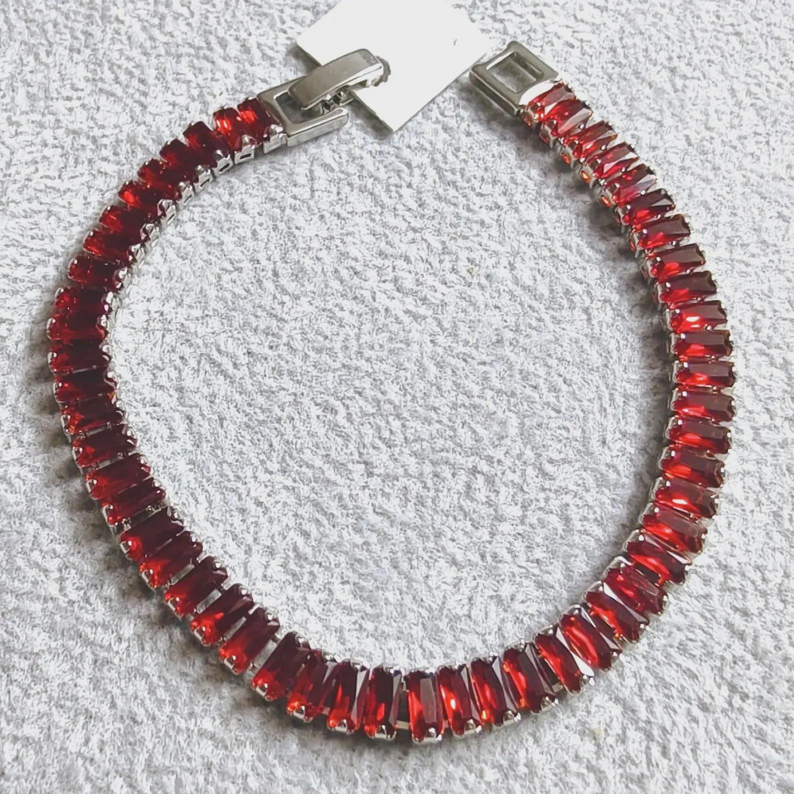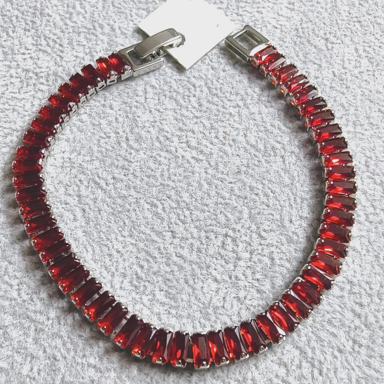 12Ct Radiant Baguette Cut Red Garnet Lab-Created Garnet Tennis Bracelet 14K White Gold Plated Diamond Bracelet Size 7.5" Inch 925 Silver