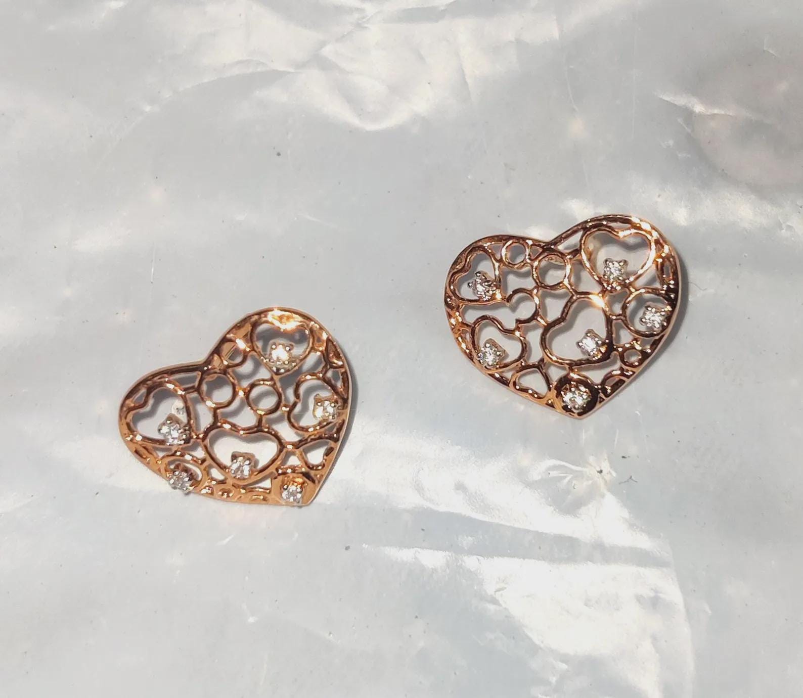 1Ct Diamond Stud Earrings VVS1 Diamond Cluster Heart Stud Earrings 14K Rose Gold Finish 925 Silver Stud Earrings Push Back Stud