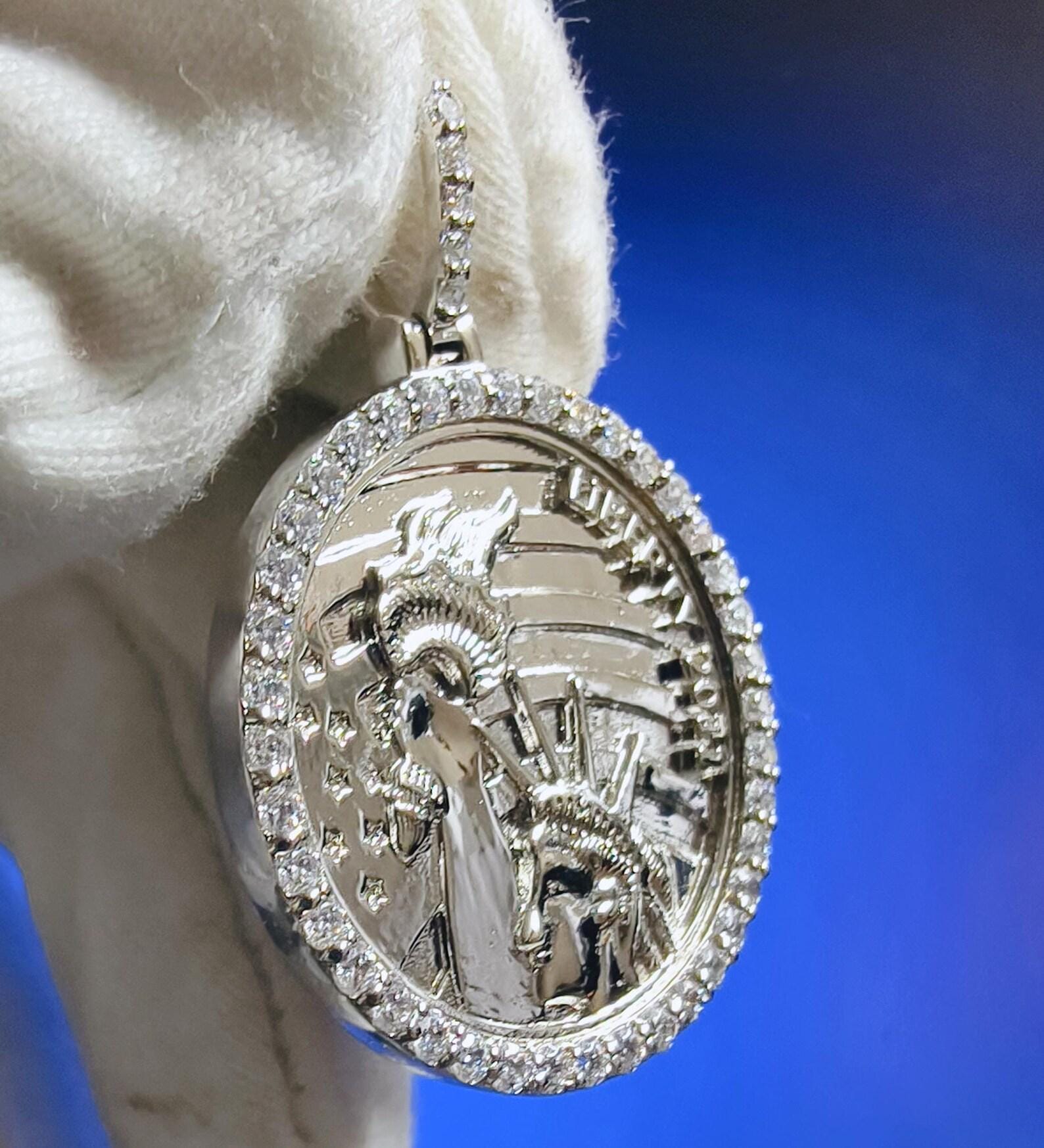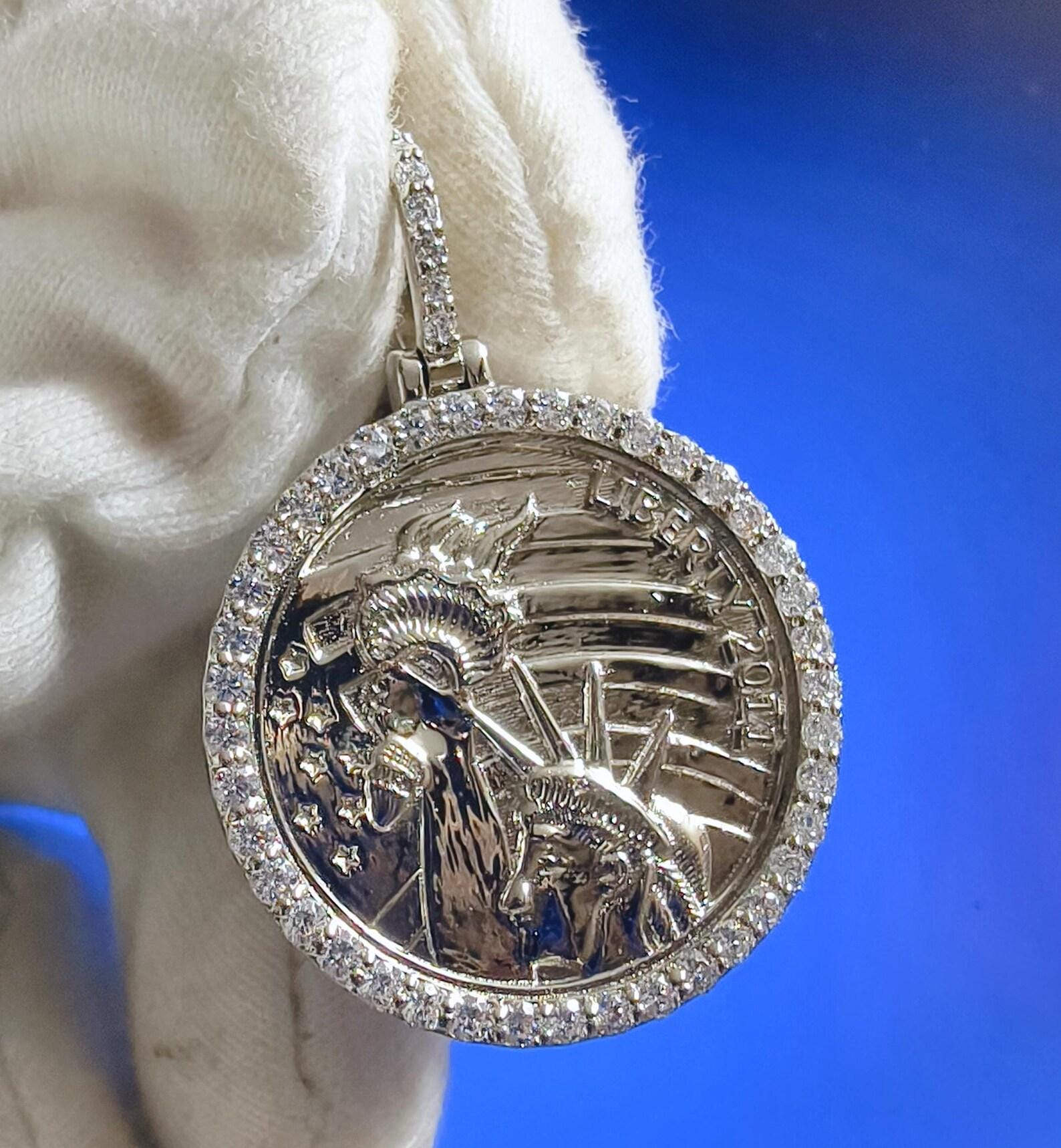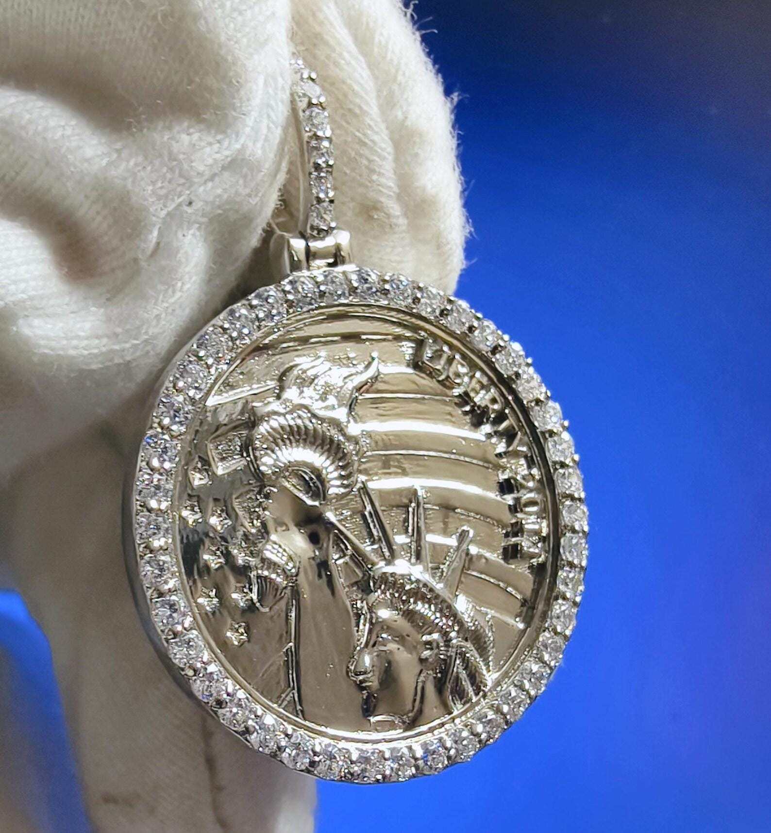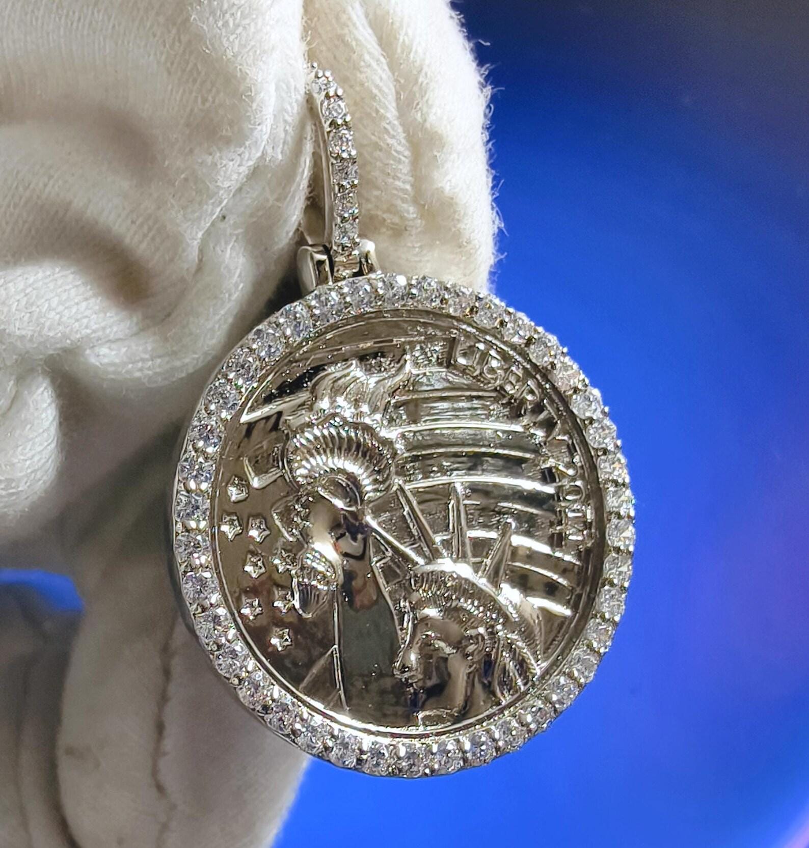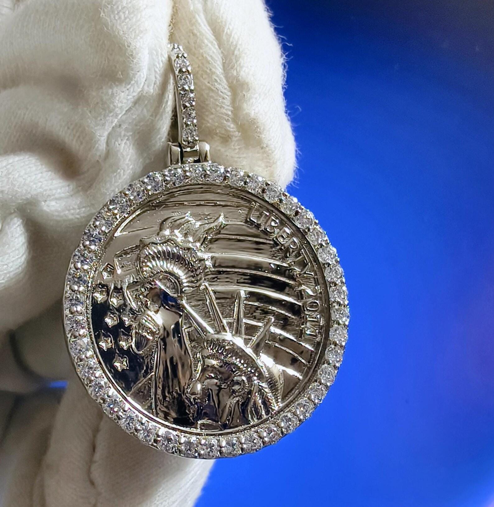 1Ct Round Cut Moissanite Pendant Liberty Coin Pendant Necklaces Pendant 14K White Gold Over Moissanite Liberty Pendant