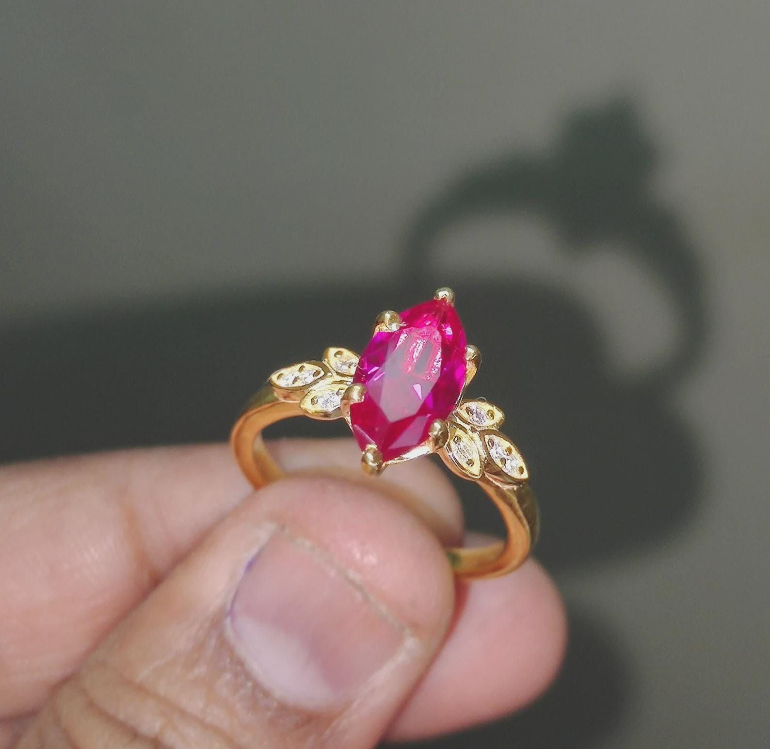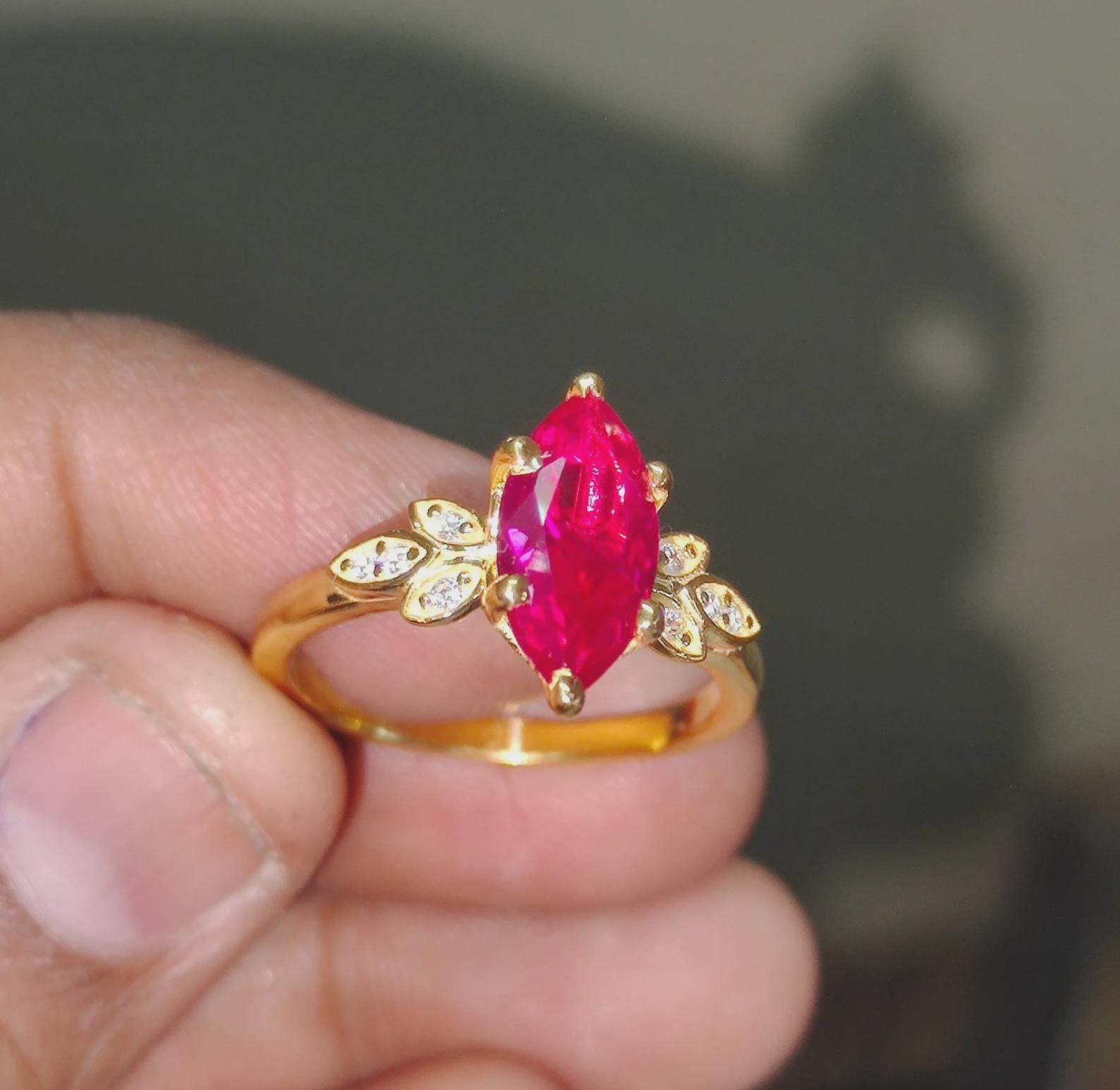 2.50Ct Marquise Cut Ruby & Diamond Solitaire Women Engagement Wedding Band Cocktail Ring 14K Yellow Gold Finish Gift For Her ,Birthday Gift