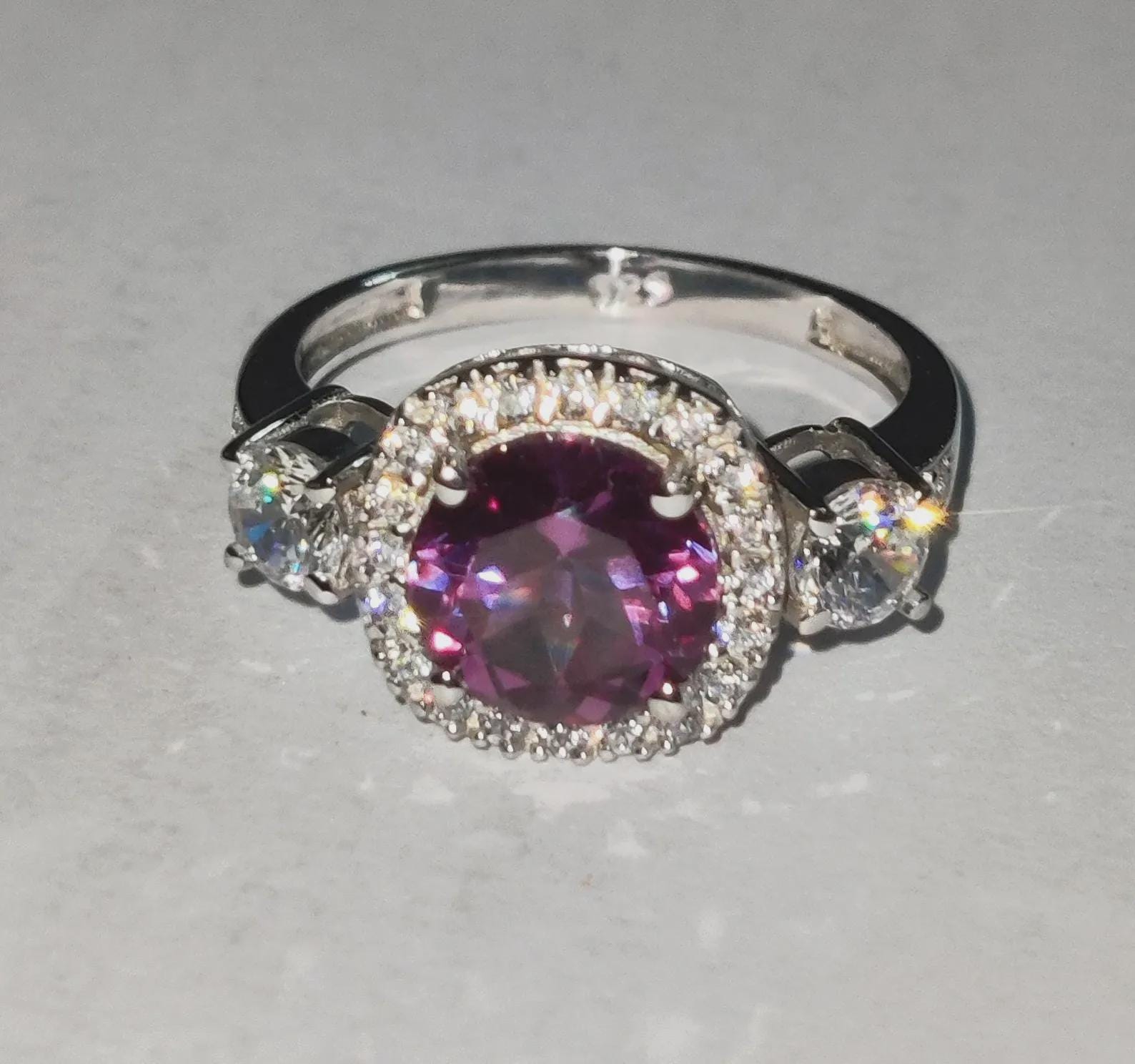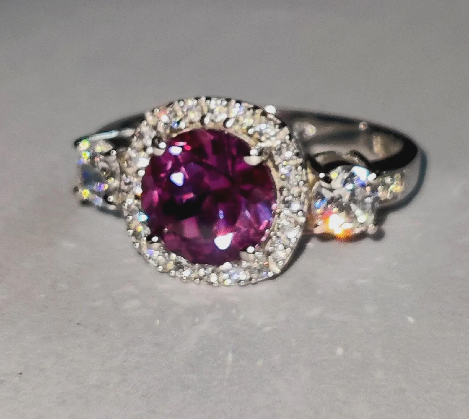 2Ct Amethyst Round Cut Simulated Diamond Halo Engagement Ring 14K White Gold Finish 925 Sterling Silver, Wedding Band, Gift For her