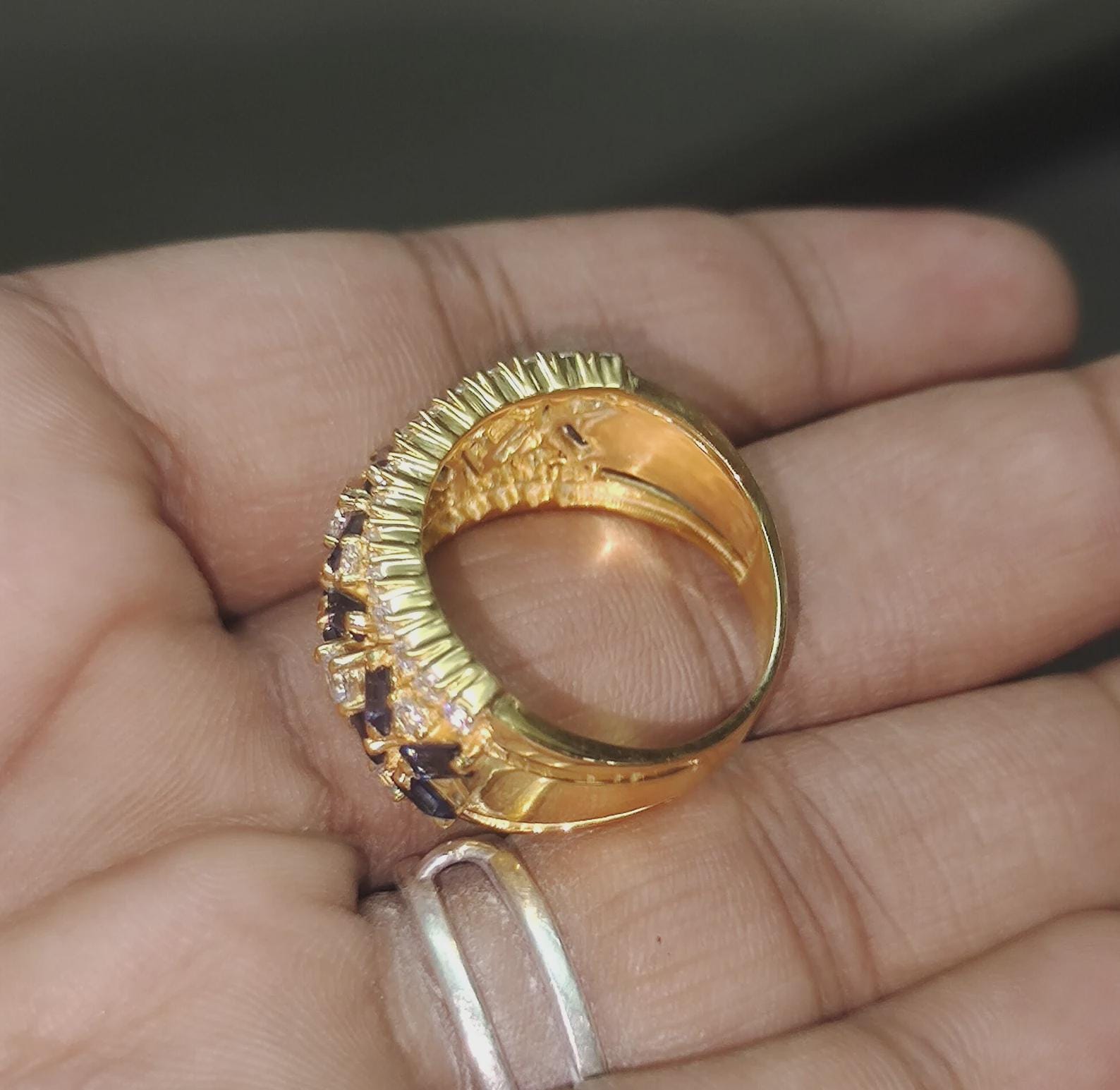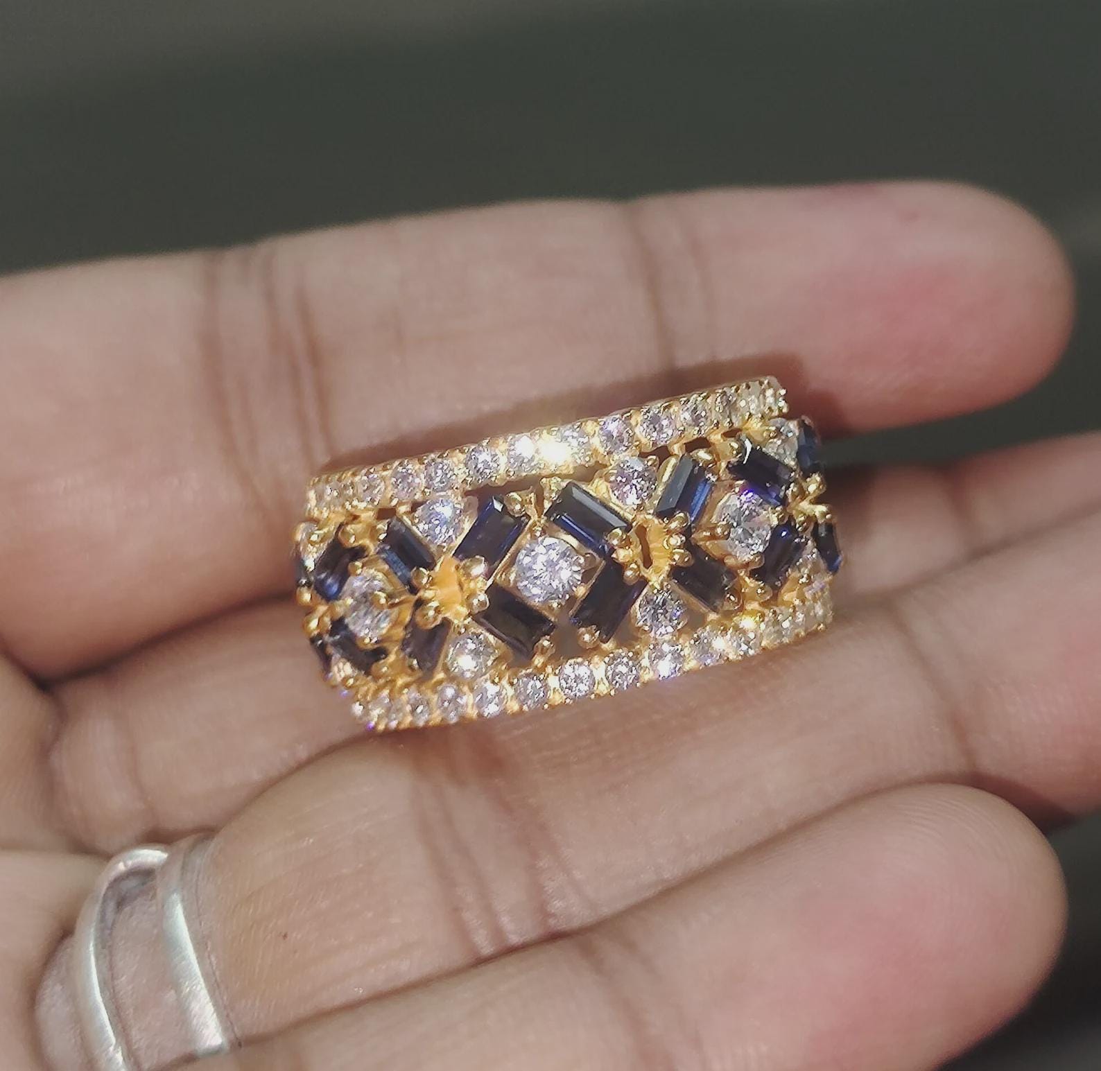 We would be more than happy to customize the item according to your specific requirements. If you have any special requests, please feel free to contact us, and we will do our best to accommodate them. For additional personalization, we can modify the gemstones, the width of the band, and the curvature of the rings to match your desired style and preferences.