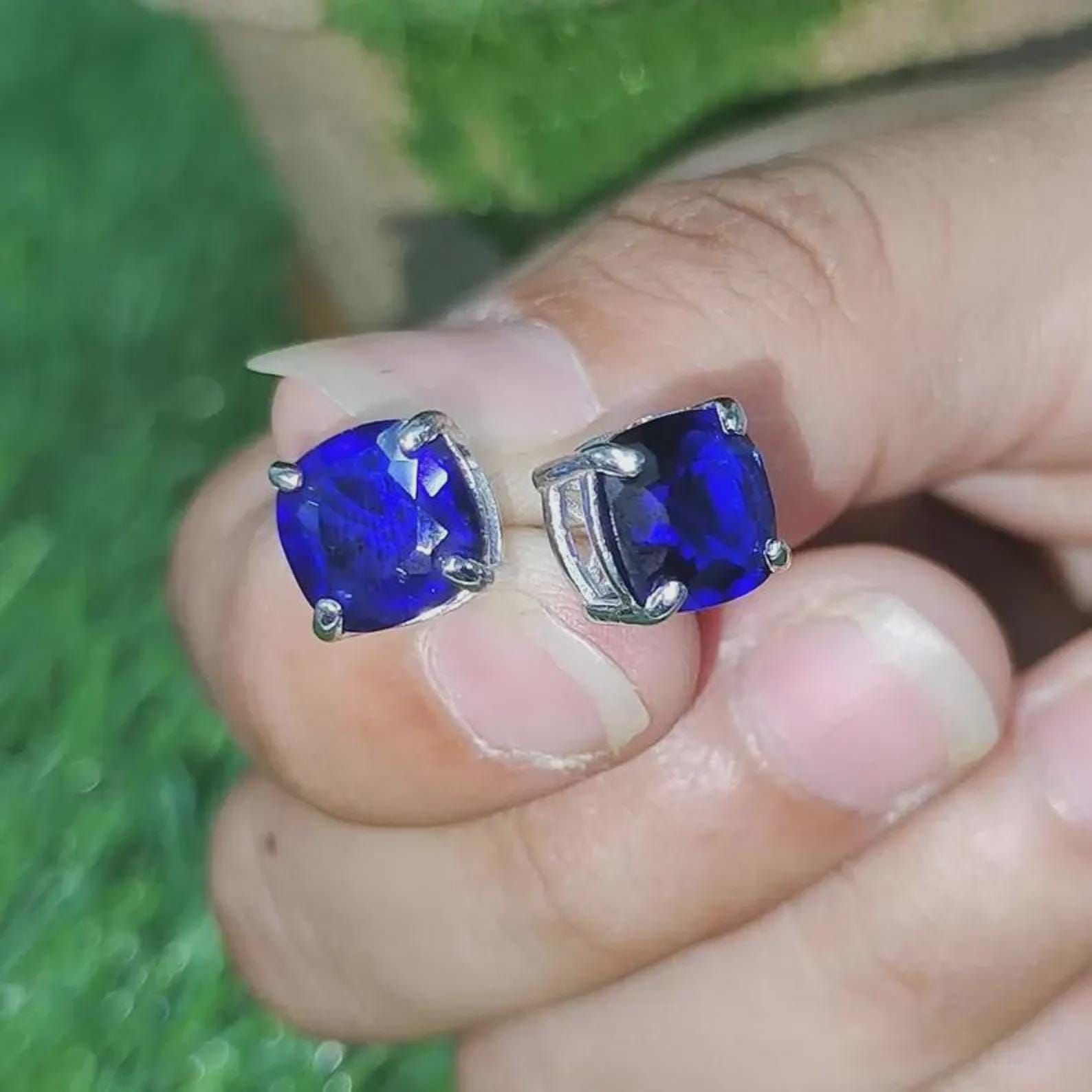 2Ct Cushion Cut Blue Sapphire Solitaire Women's Stud Earrings 14K White Gold Finish 925 Silver Blue Sapphire Women's Stud Earrings