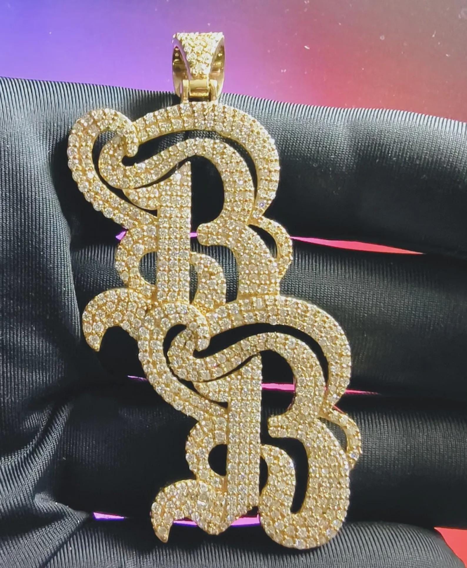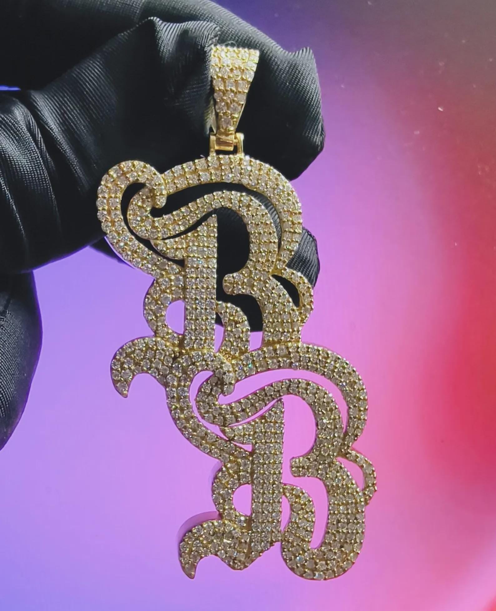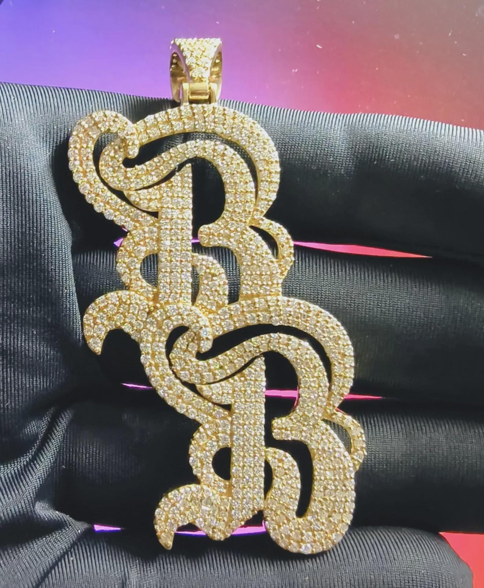 2Ct Custom Letter Round Cut Simulated Diamond Pendant 14K Yellow Gold Plated 925 Sterling Silver Custom Any Letter Pendant ,Hip Hop Pendant