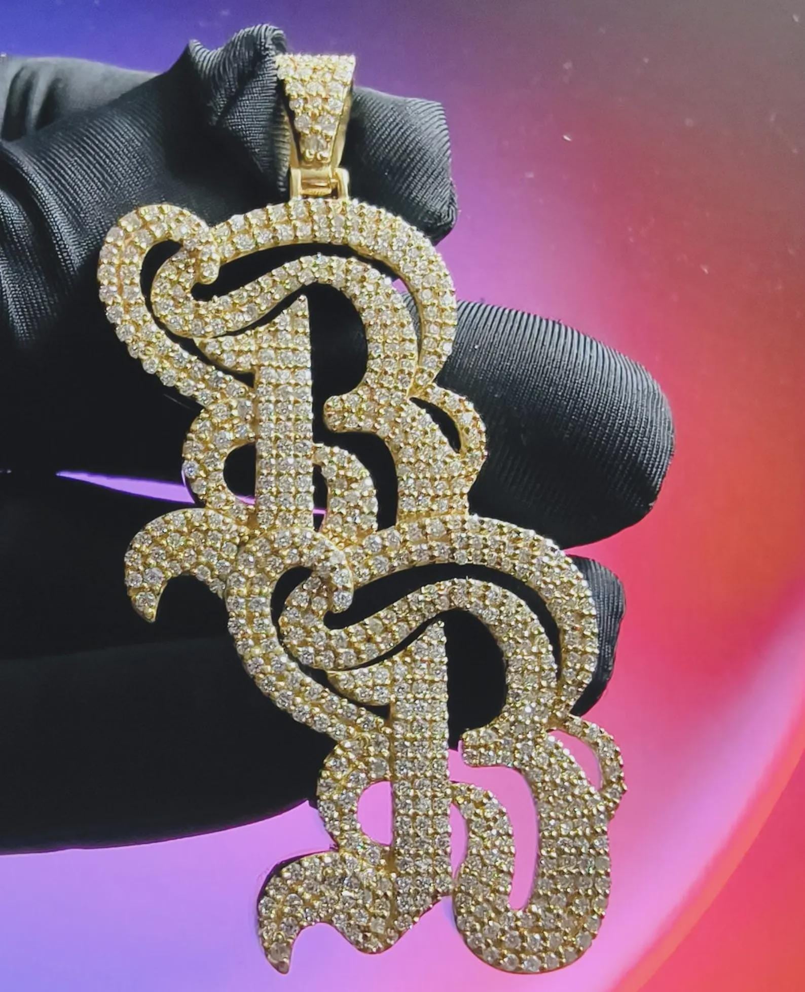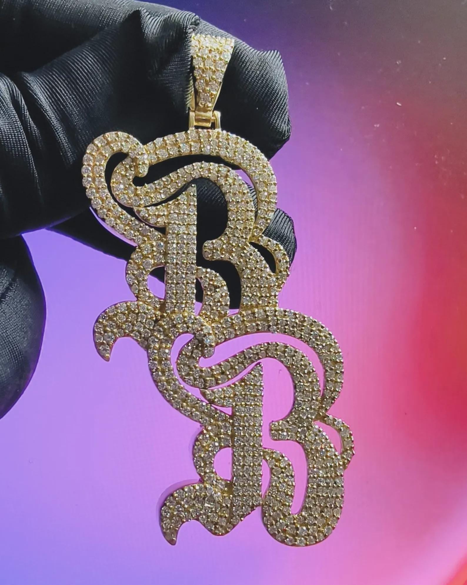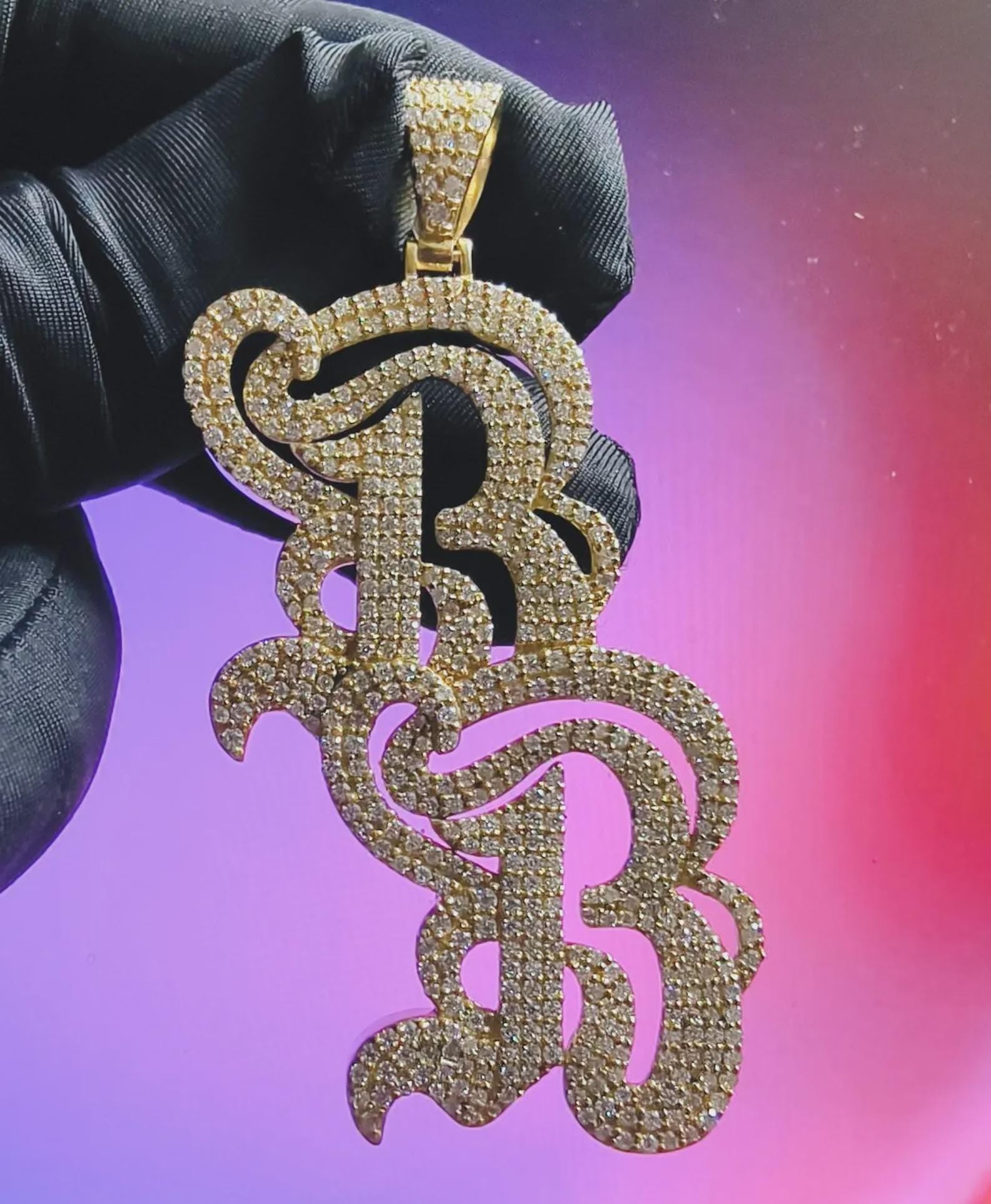 2Ct Custom Letter Round Cut Simulated Diamond Pendant 14K Yellow Gold Plated 925 Sterling Silver Custom Any Letter Pendant ,Hip Hop Pendant