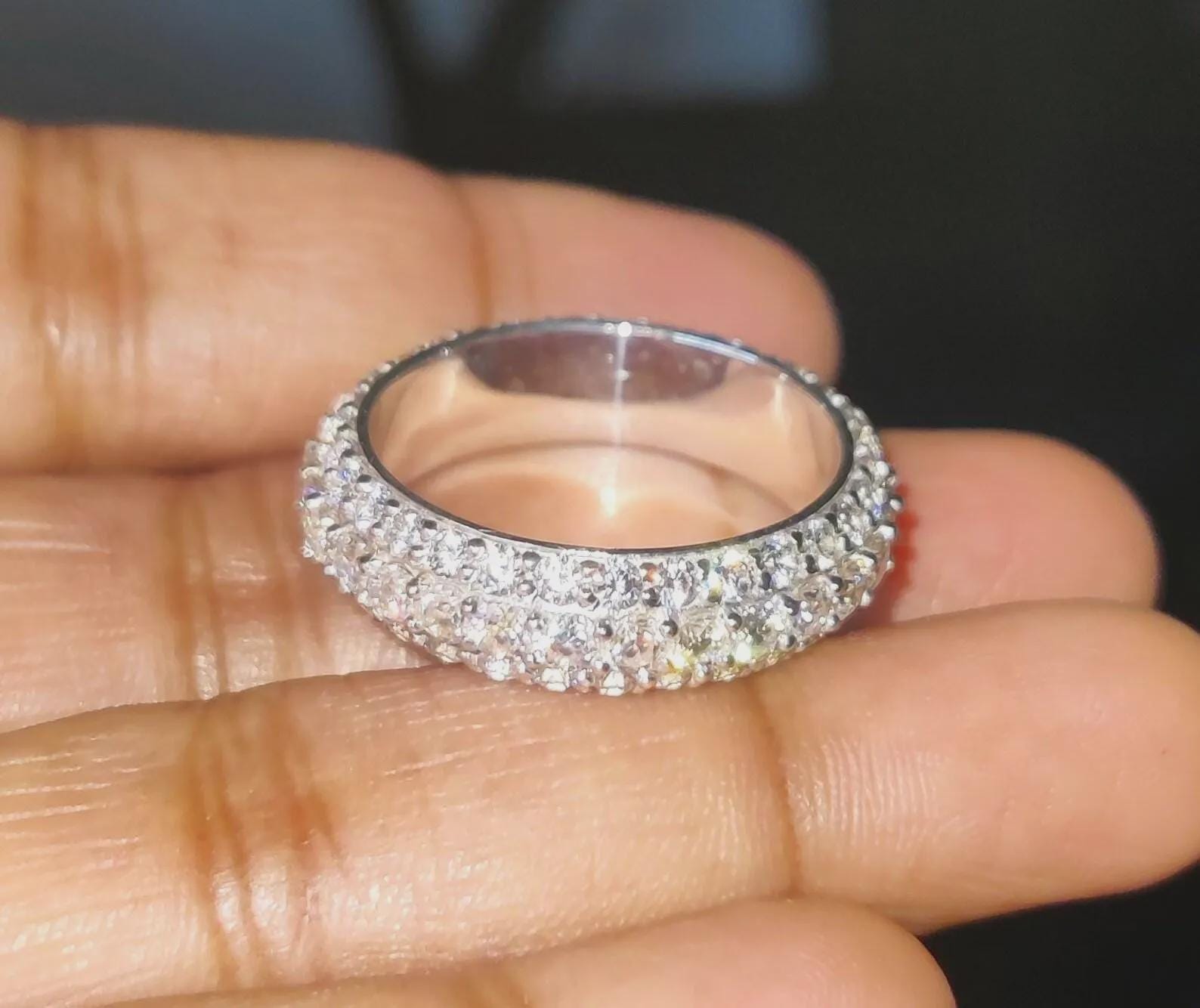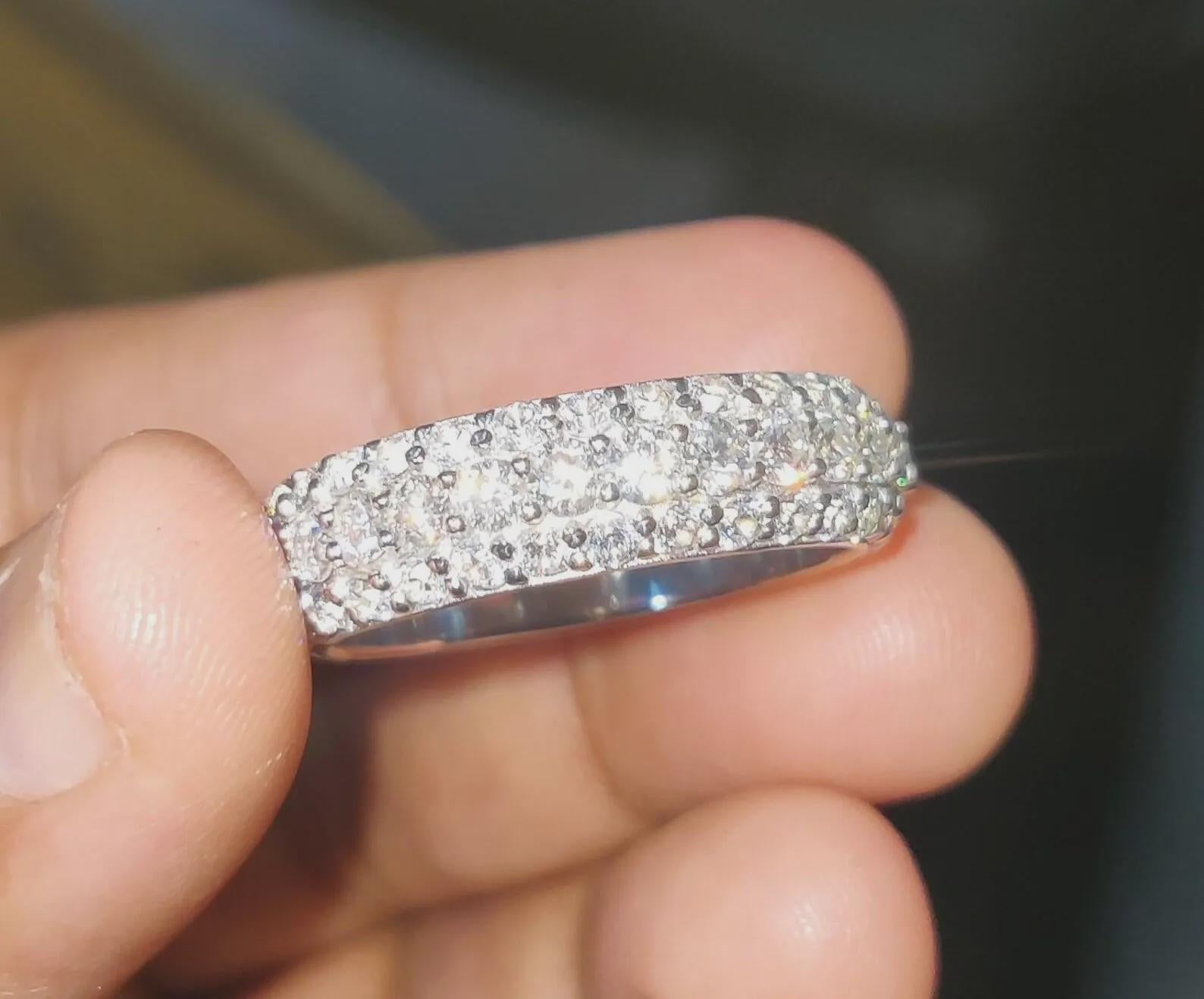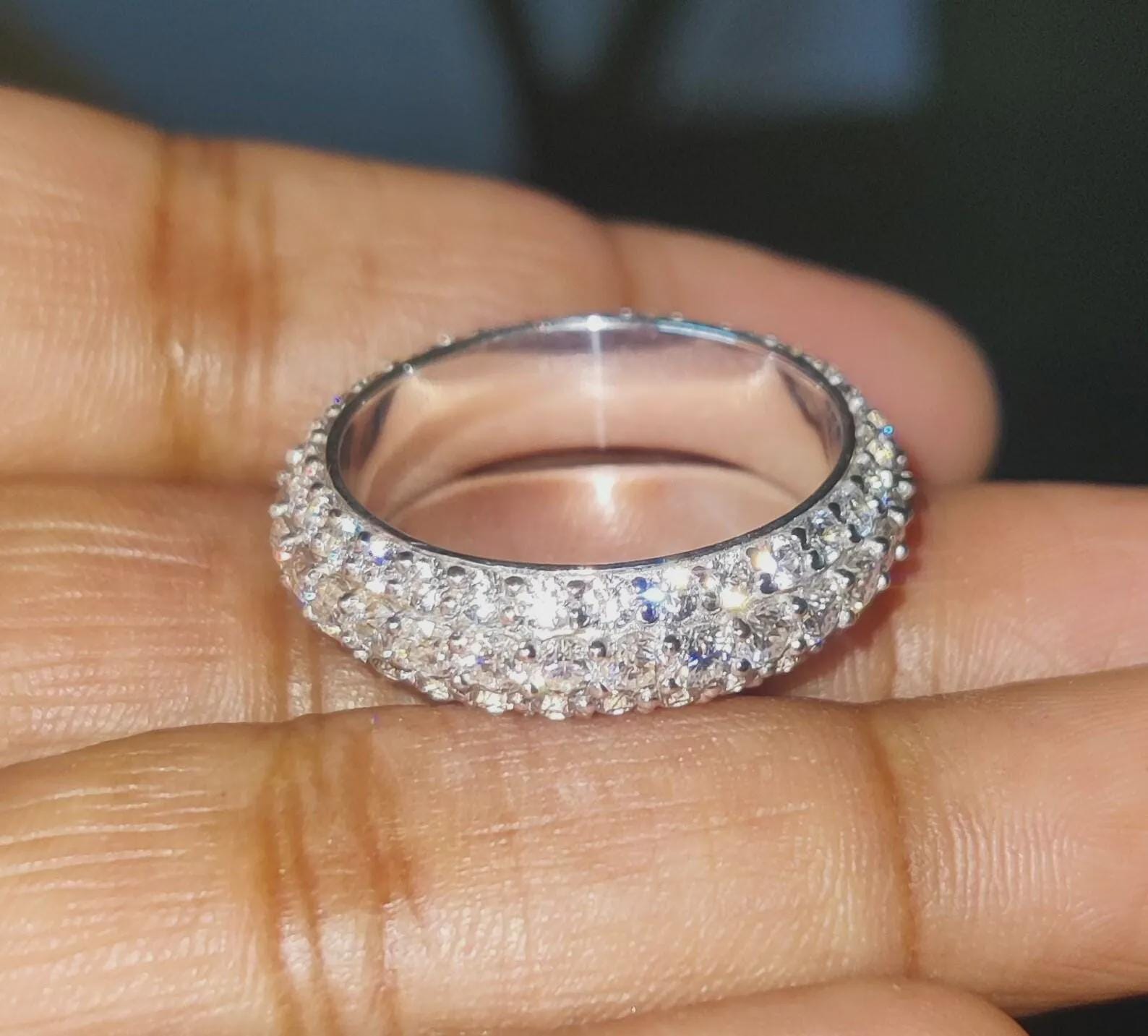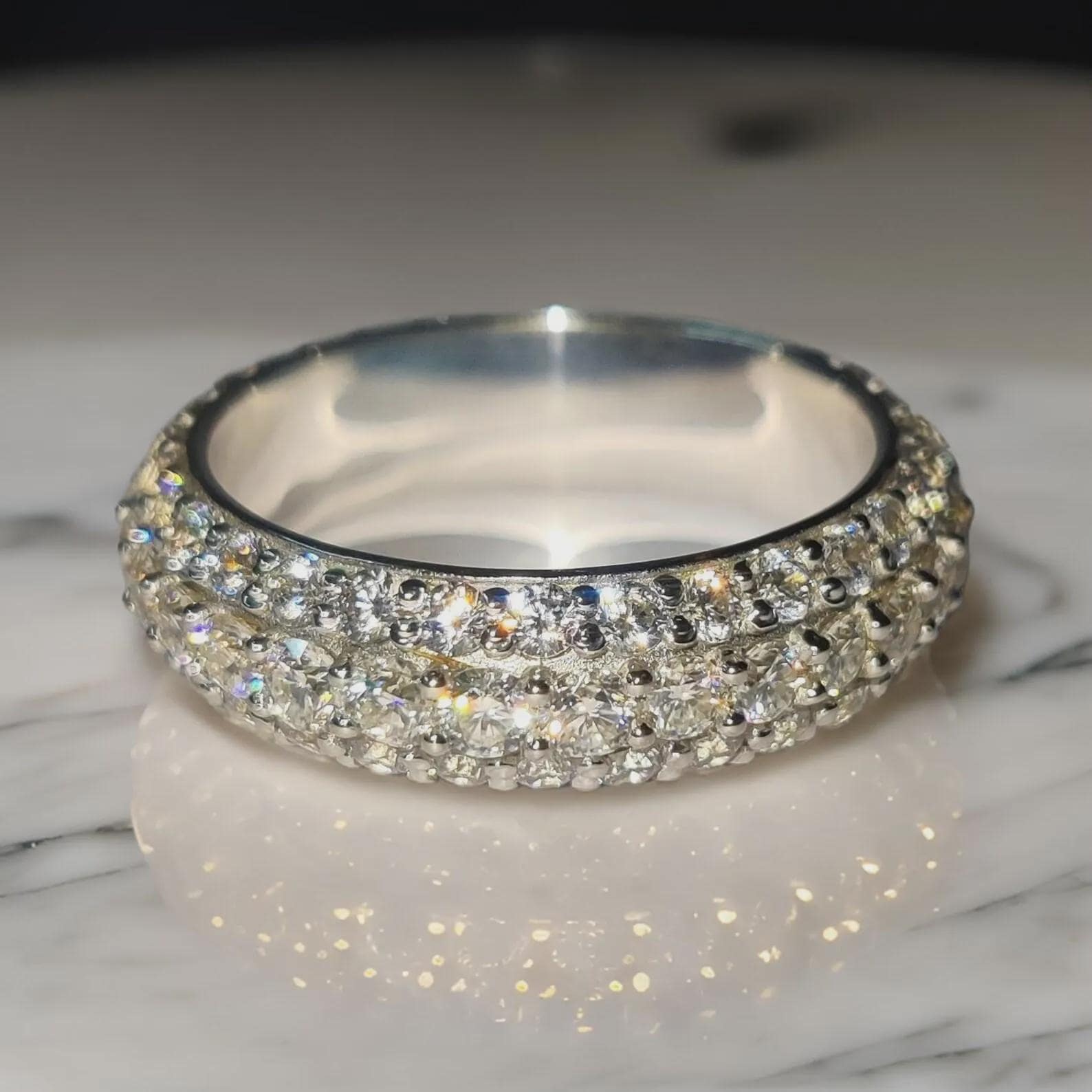 2Ct Diamond Band Ring Lab-Created Round Diamond Wedding Anniversary Band Ring 14K White Gold Finish 925 Silver Band Unisex Engagement Ring