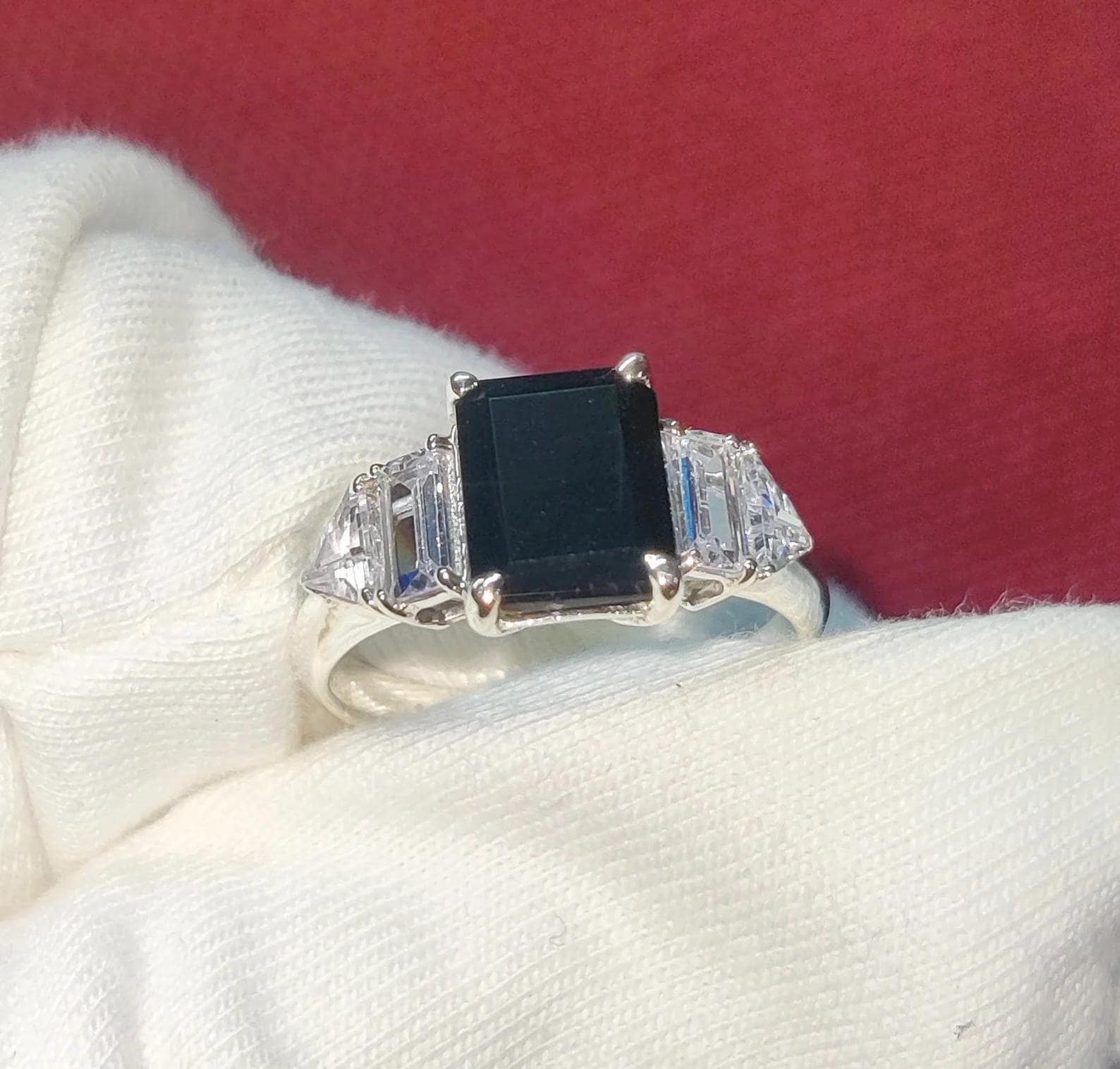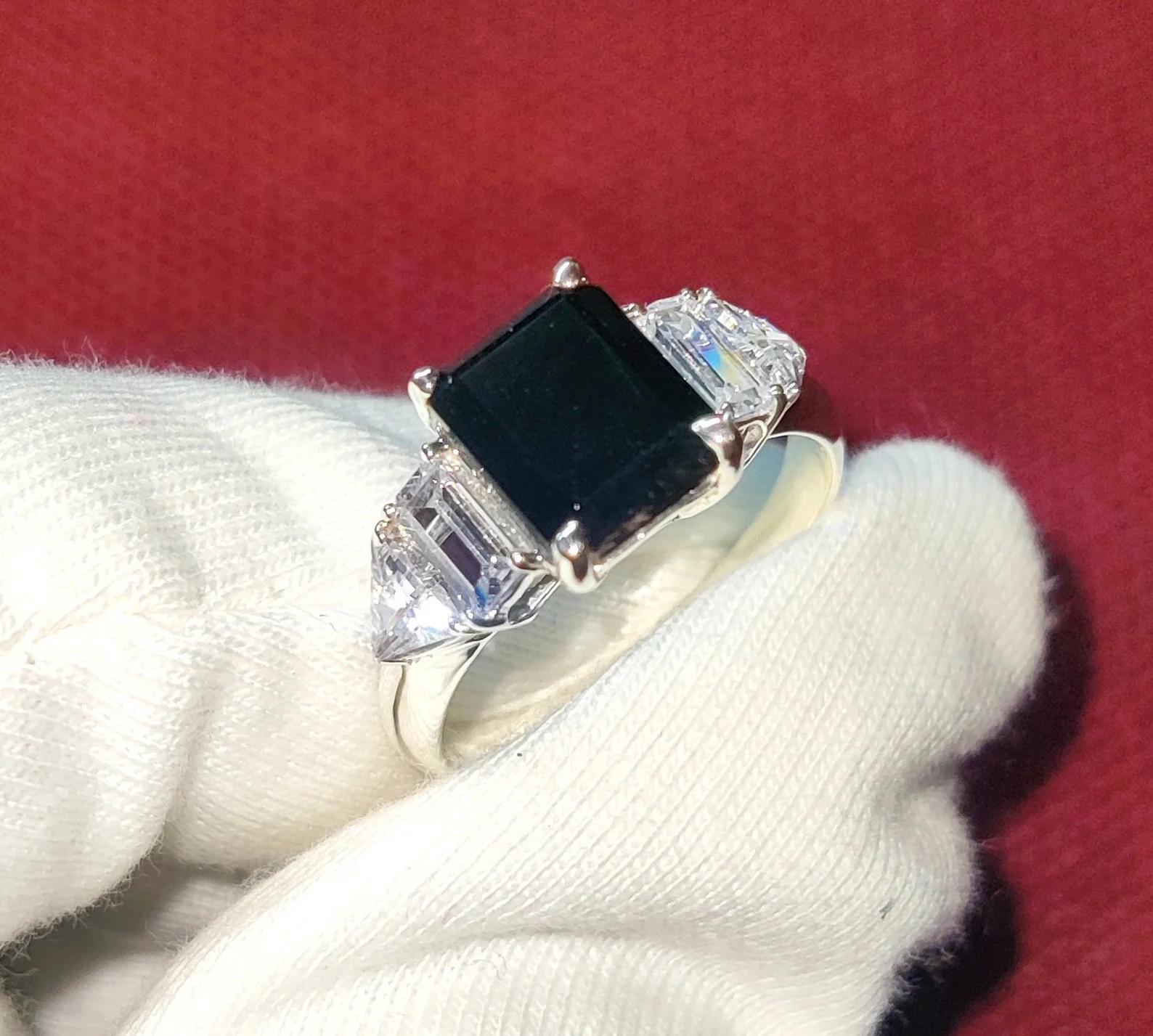 2Ct Diamond Black Emerald Cut Simulated Diamond Engagement Anniversary Ring Prong 14K White Gold Finish 925 Sterling Silver Birthday Gift