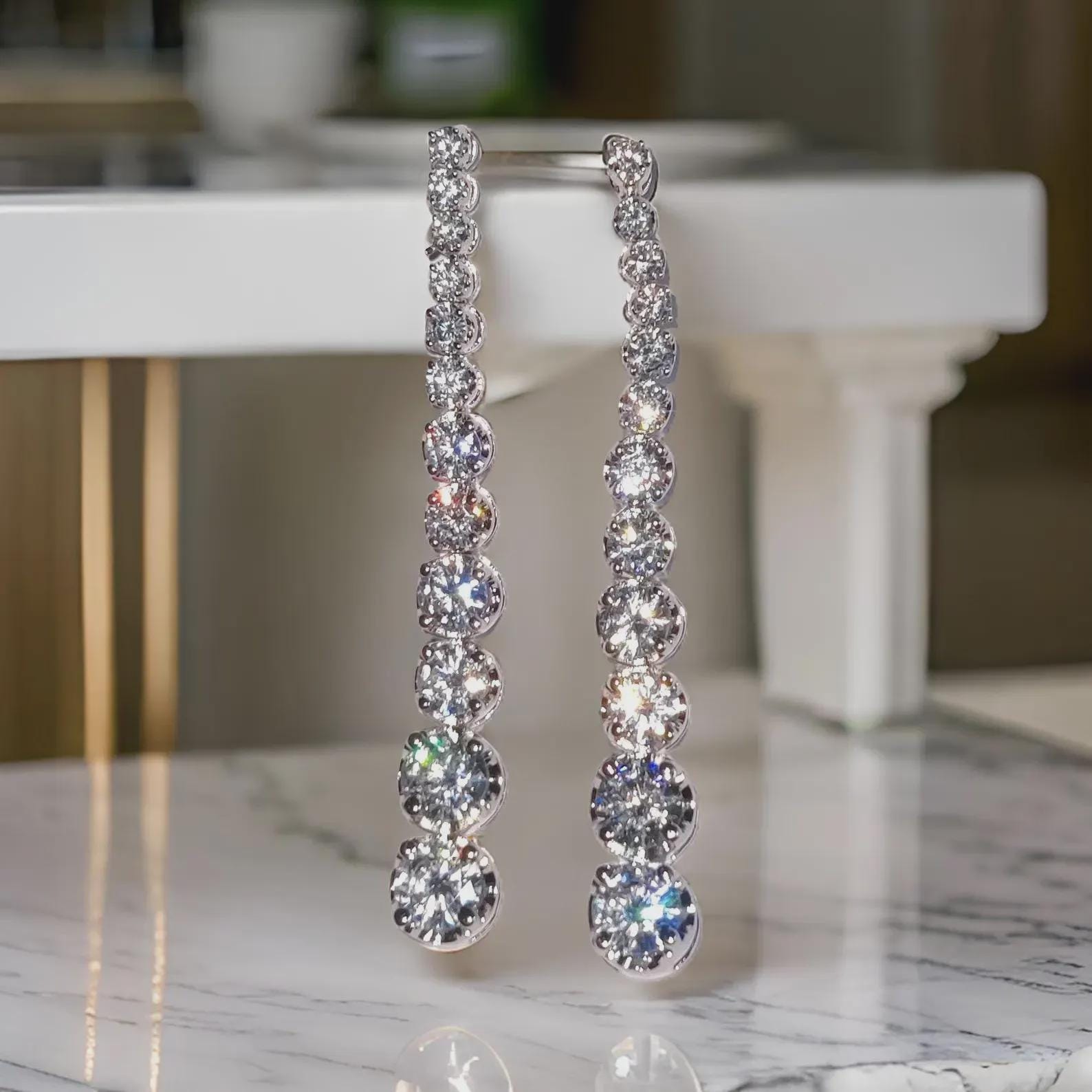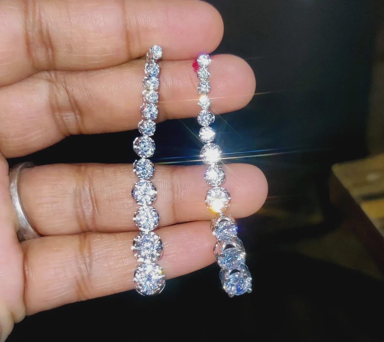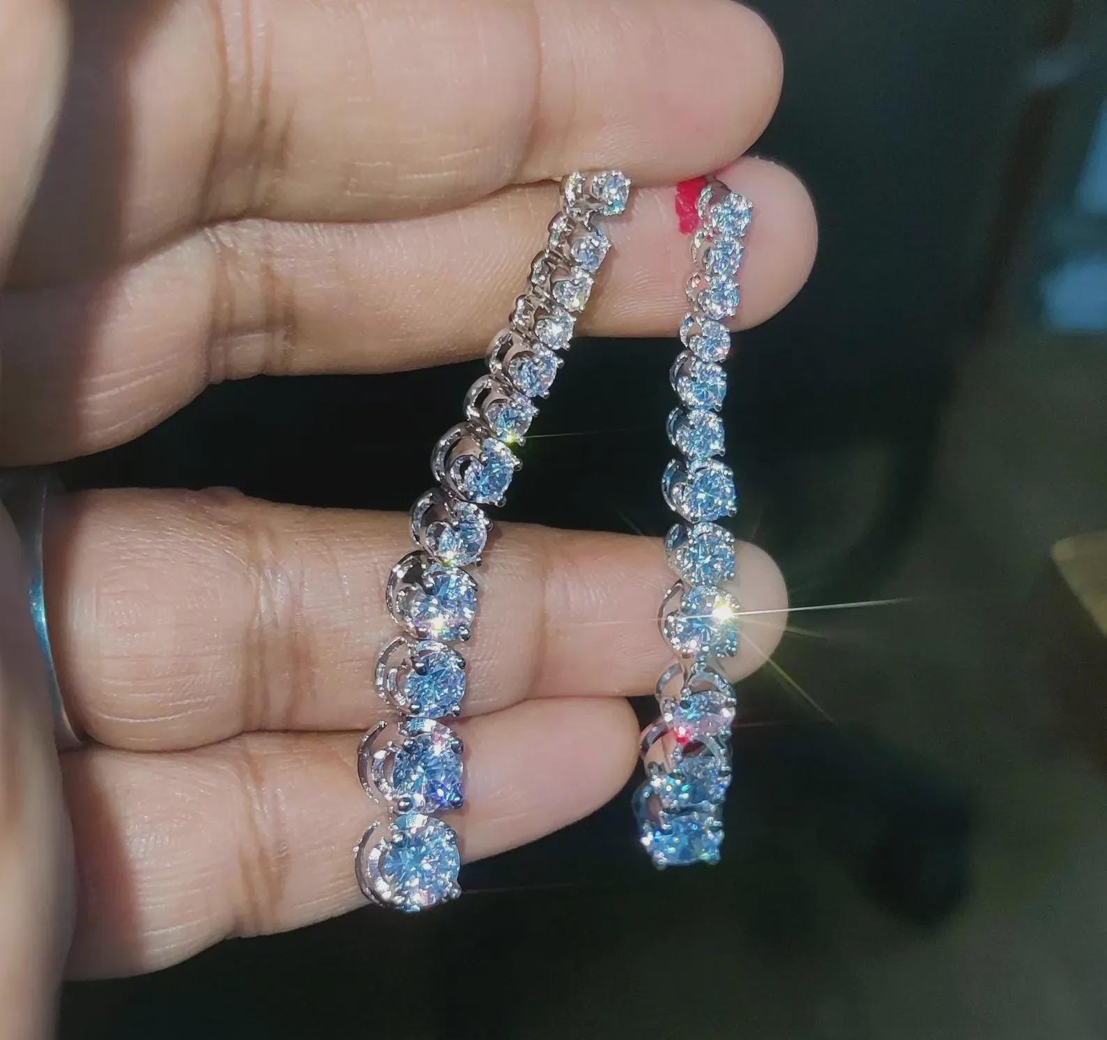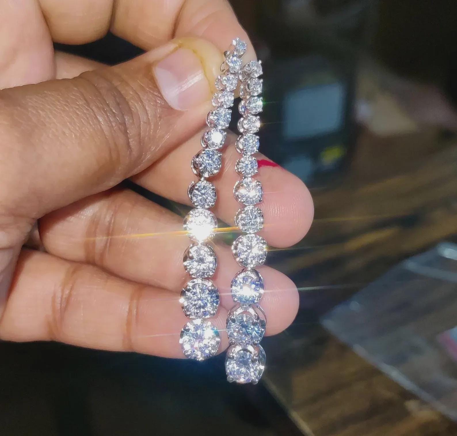 2Ct Diamond Dangle Earrings Round Simulated Diamond Drop Earrings 14K White Gold Plated Silver Drop Dangle Earrings , Special occasion Wear