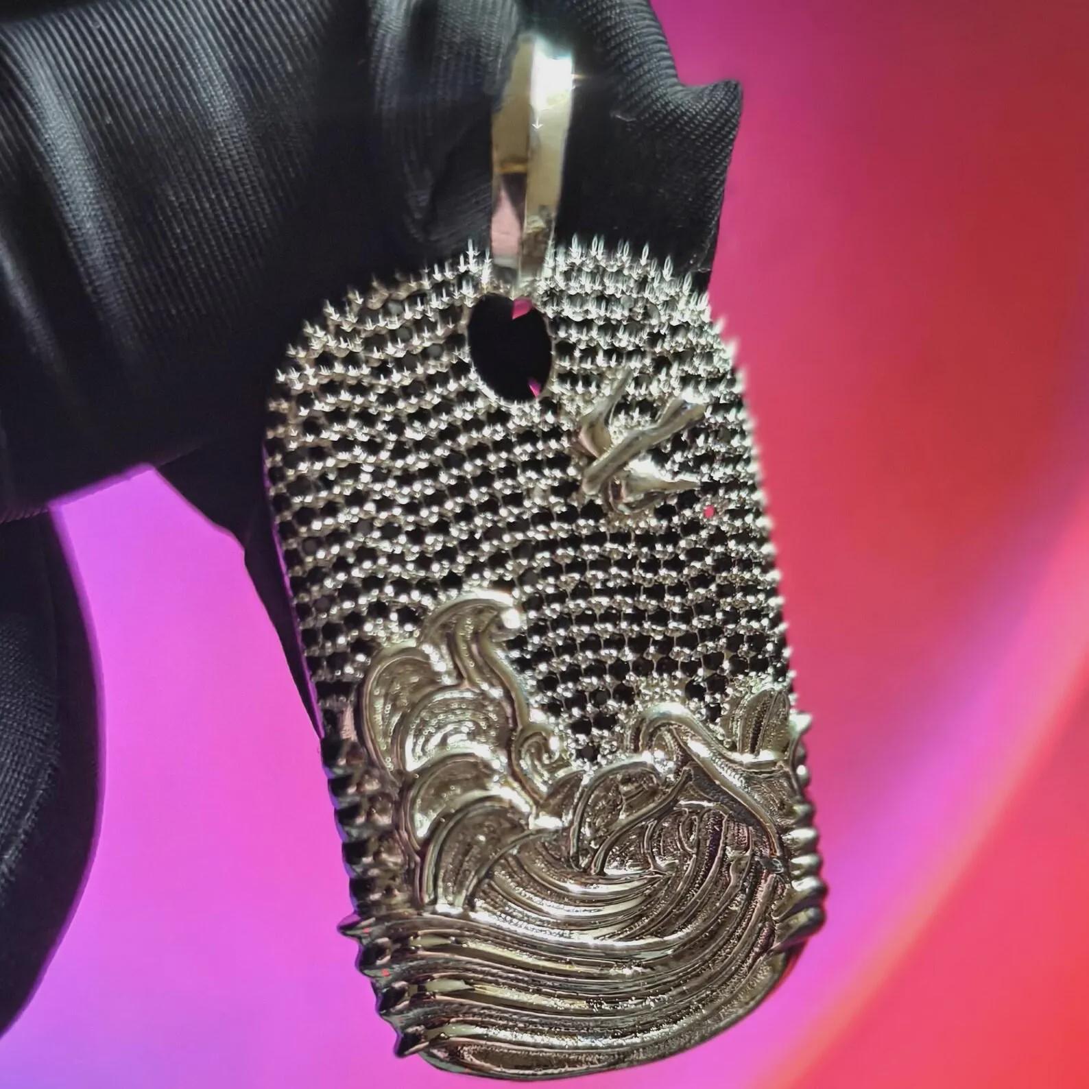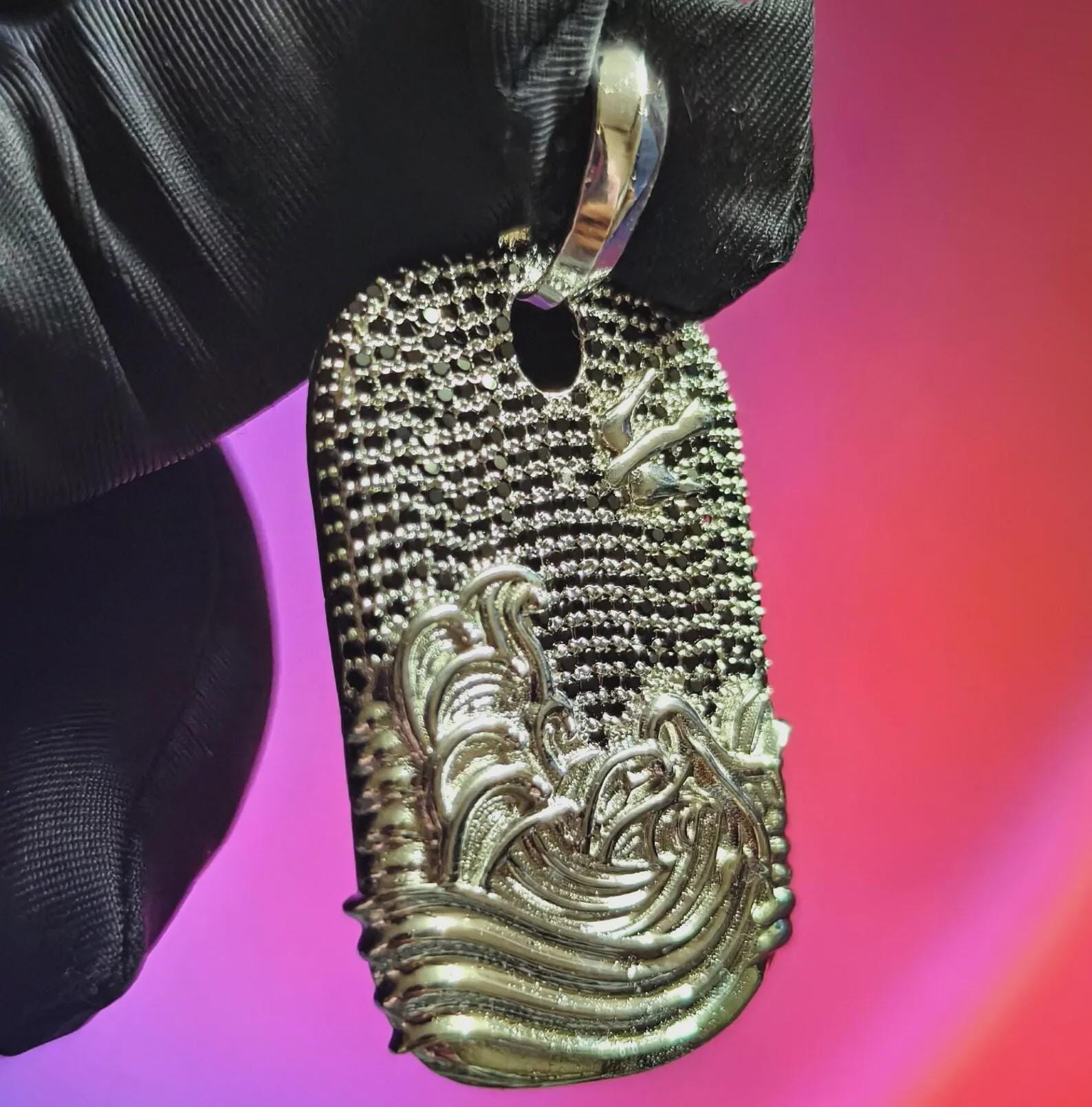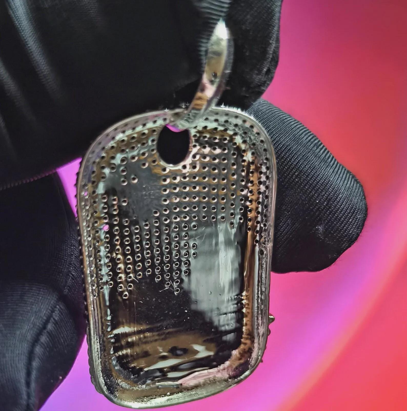 2Ct Diamond Dog Tag Pendant Round Simulated Black Diamond Pendant 14K White Gold Plated Unisex Pendant 925 Sterling Silver, Hip Hop Pendant