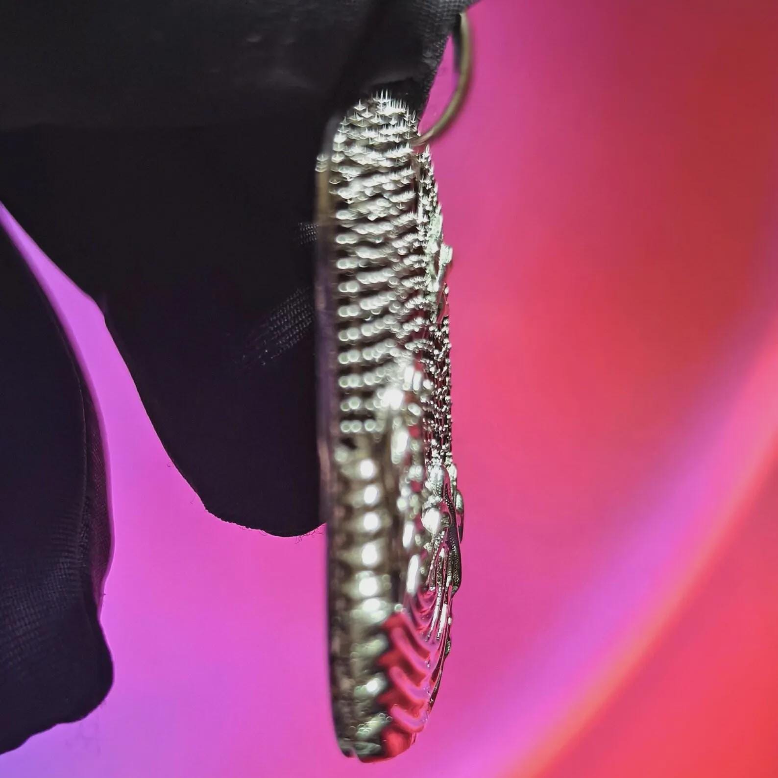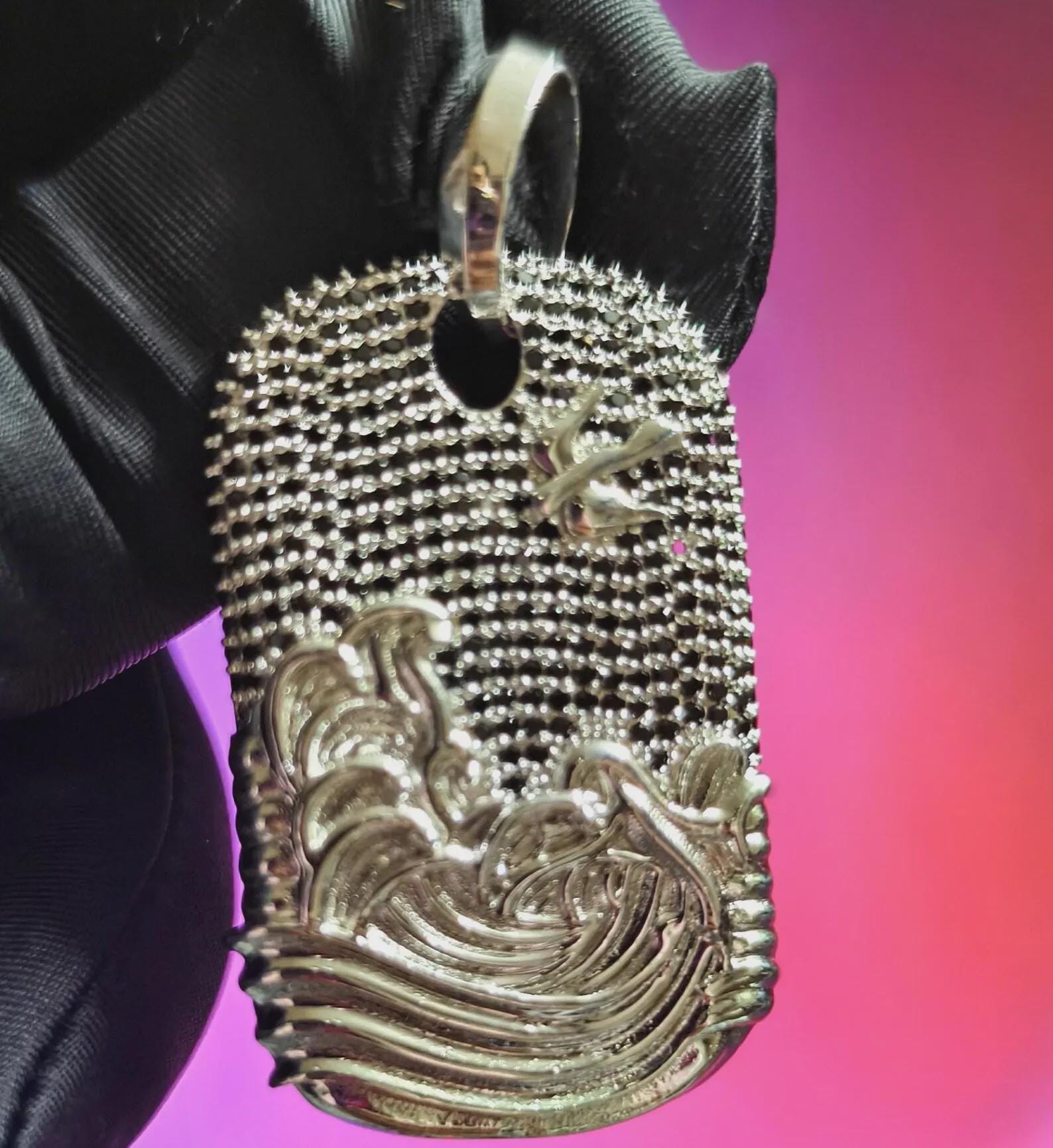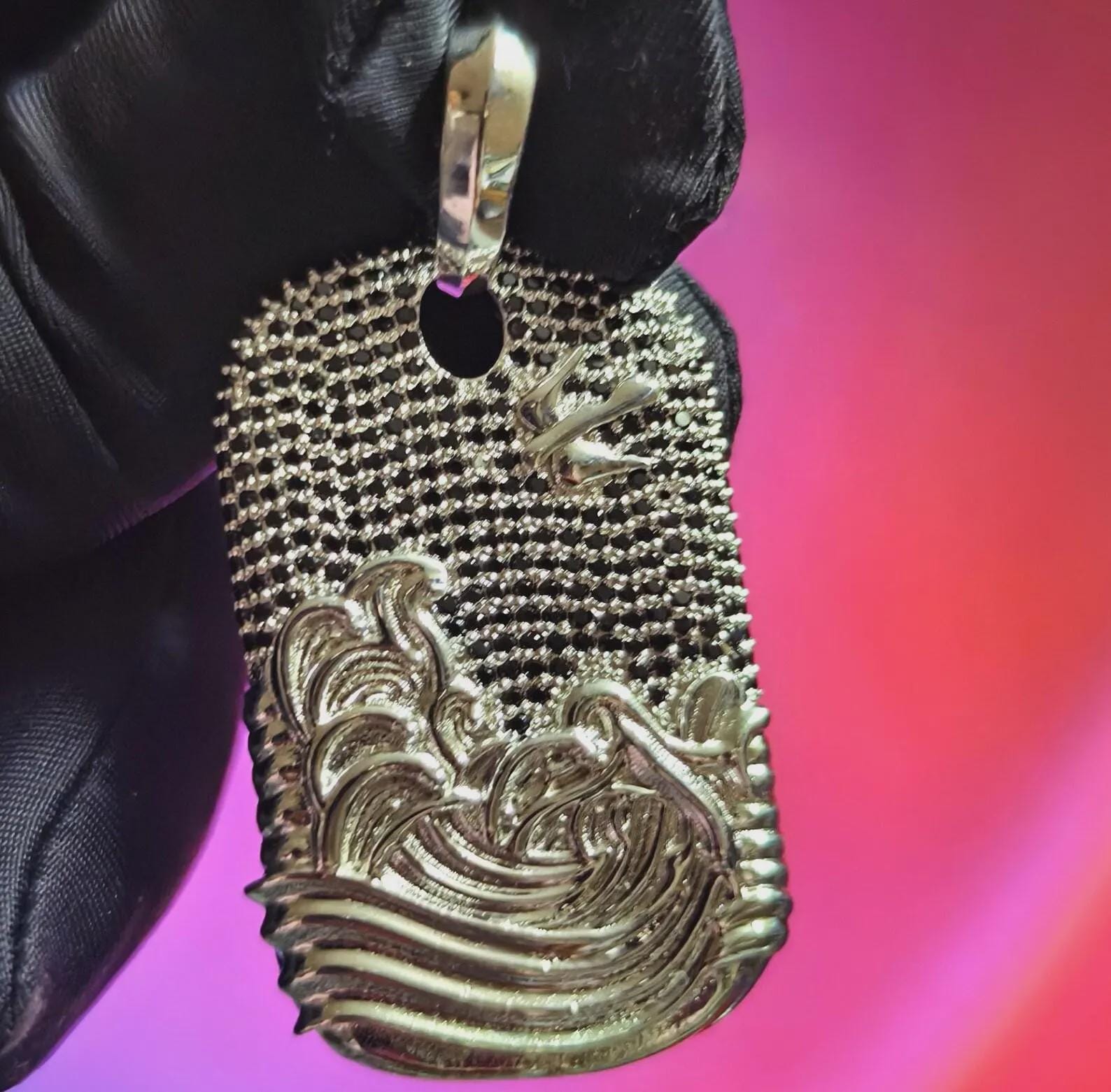 2Ct Diamond Dog Tag Pendant Round Simulated Black Diamond Pendant 14K White Gold Plated Unisex Pendant 925 Sterling Silver, Hip Hop Pendant