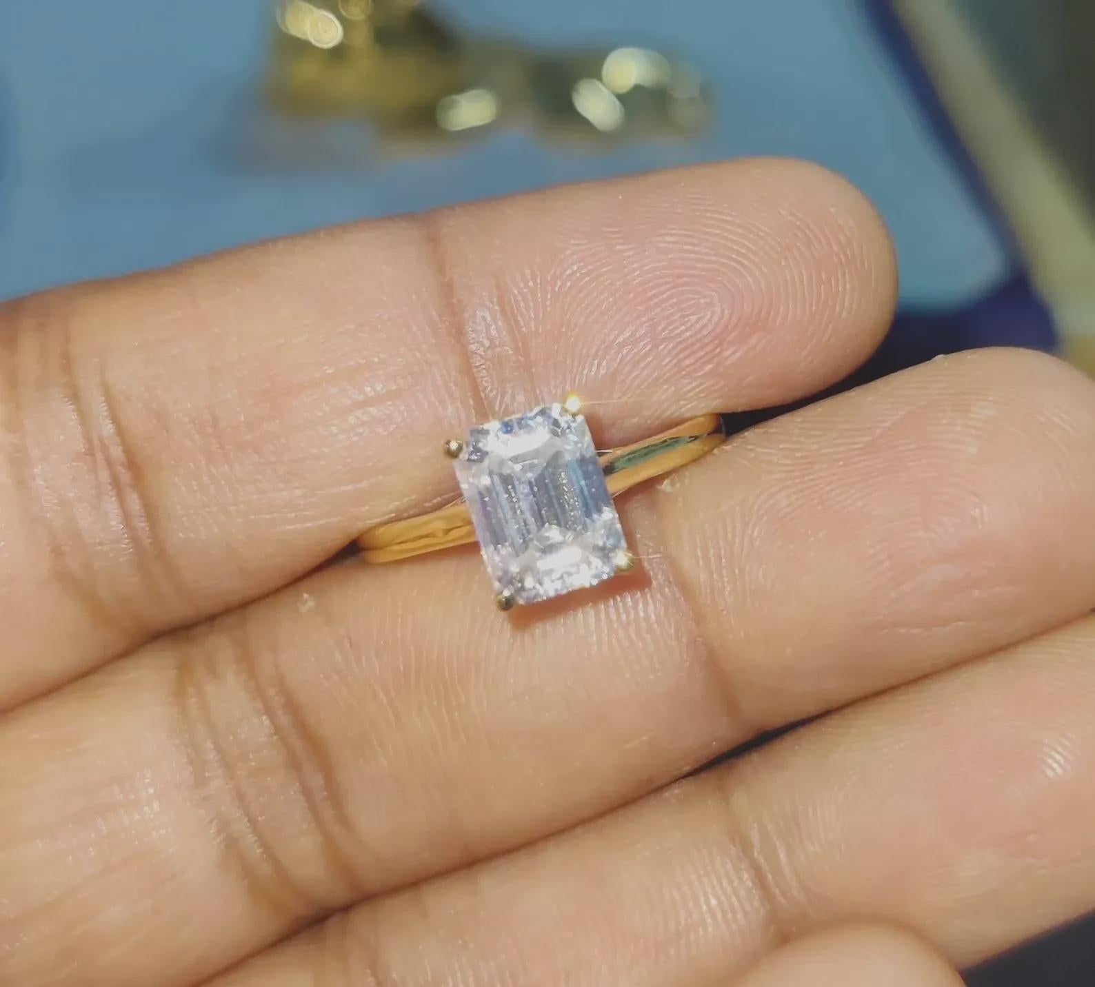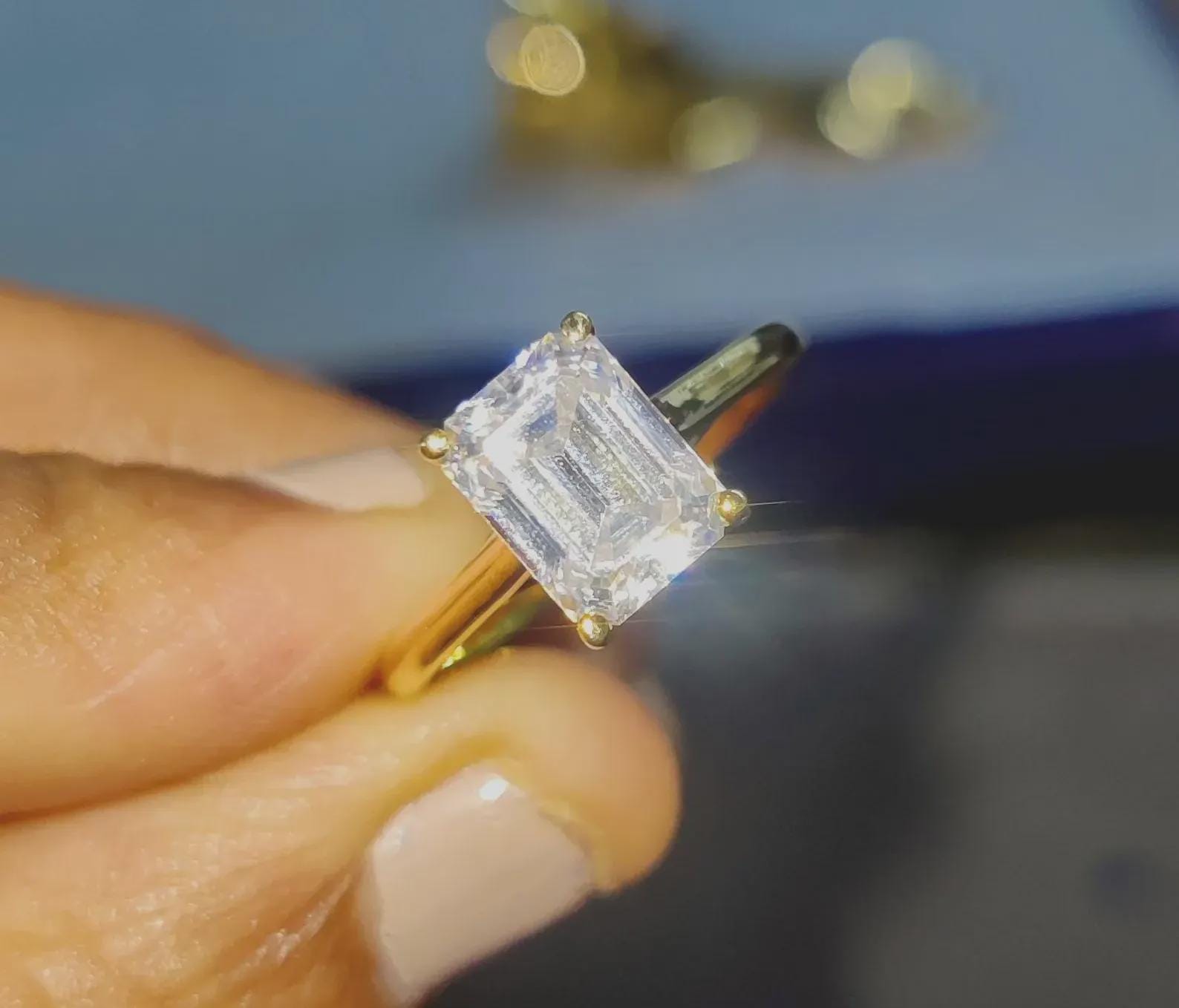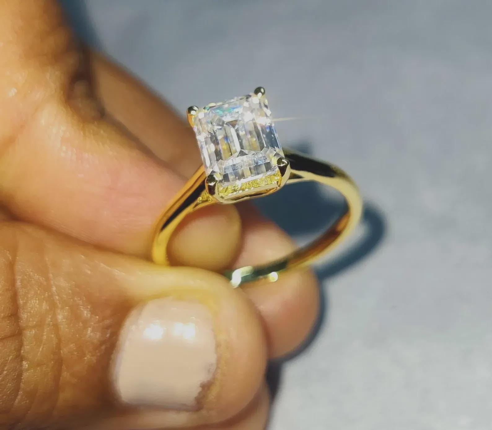 2Ct Diamond Emerald Cut Anniversary Ring Simulated Diamond Anniversary 14K Yellow Gold Finish Silver Solitaire Engagement Ring Birthday Gift