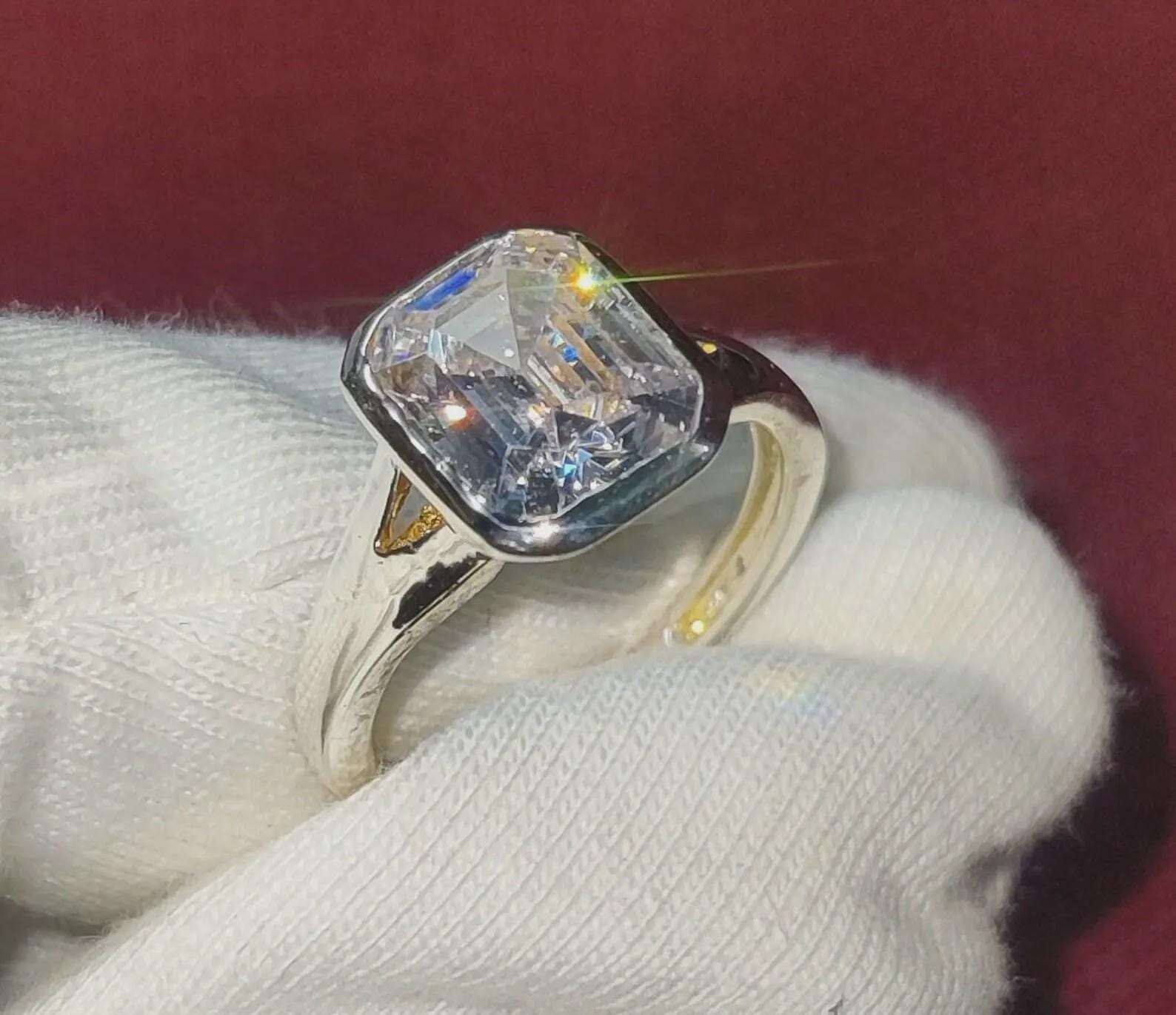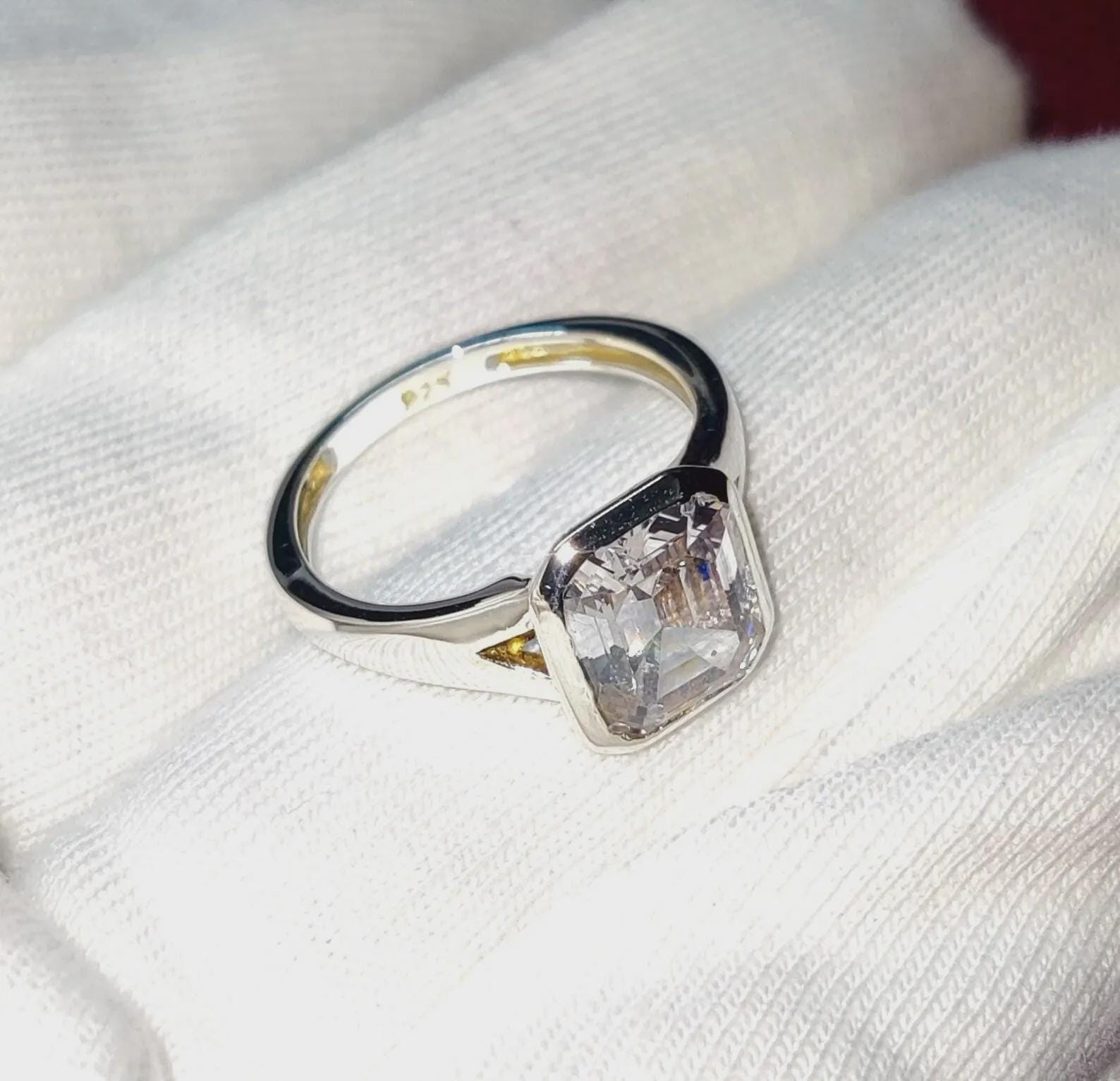 2Ct Diamond Emerald Cut Simulated Diamond Solitaire Prong Engagement Anniversary Wedding Ring 14K White Gold Finish Gift 925 Sterling Silver