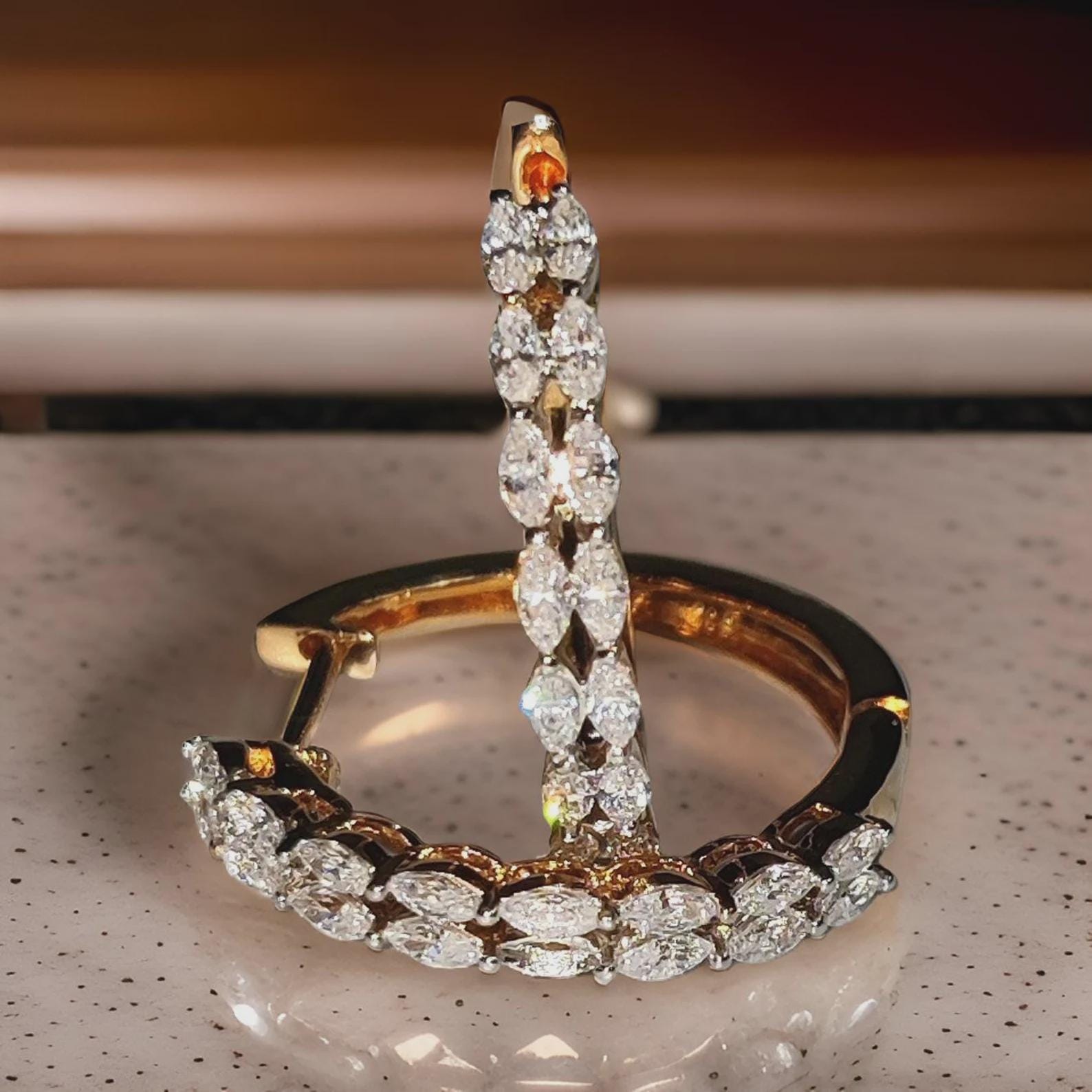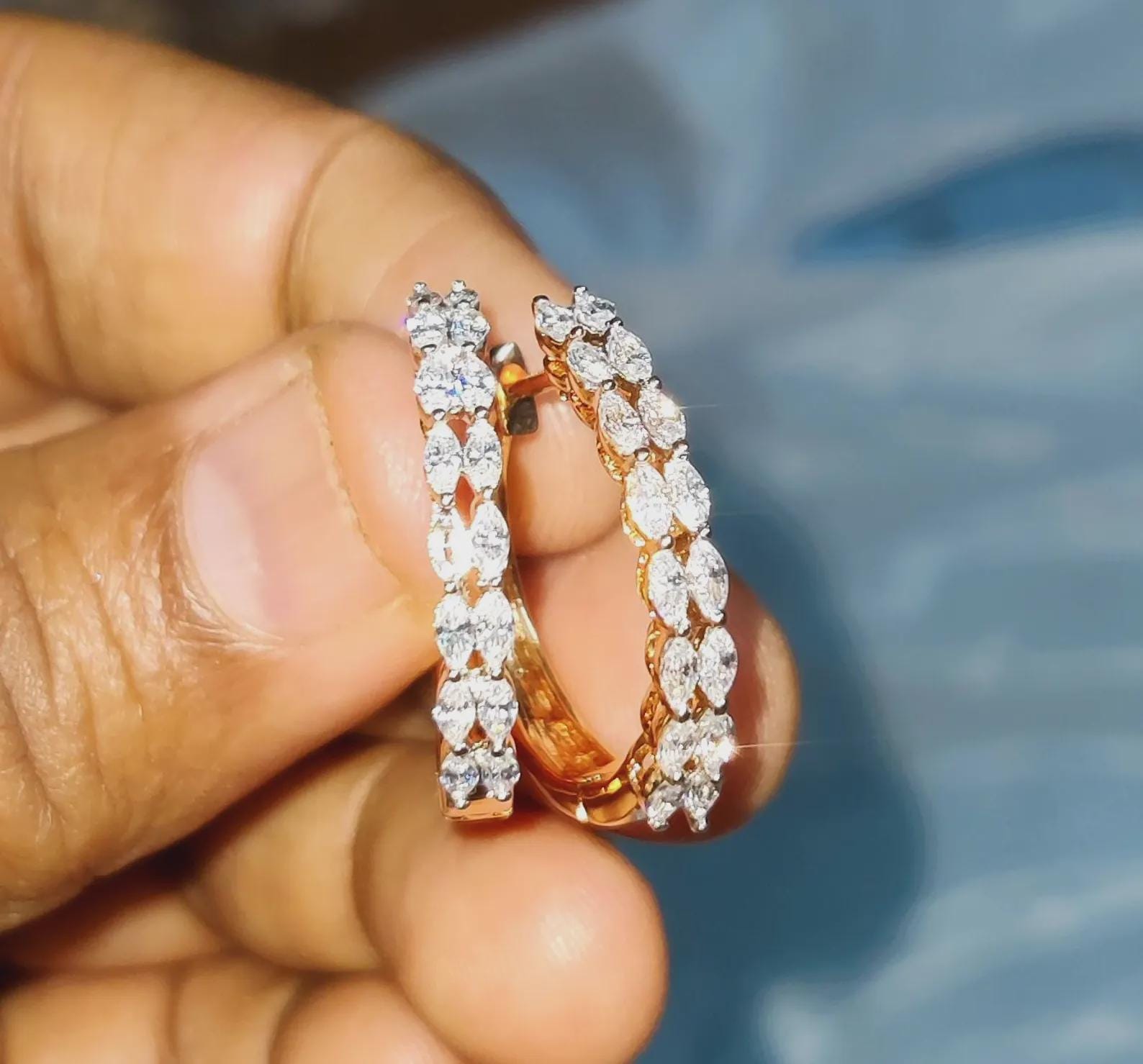 2Ct Diamond Hoop Earrings Marquise Cut VVS1 Diamond Huggie Earrings 14K Rose Gold Finish 925 Sterling Silver Diamond Hoop Earrings