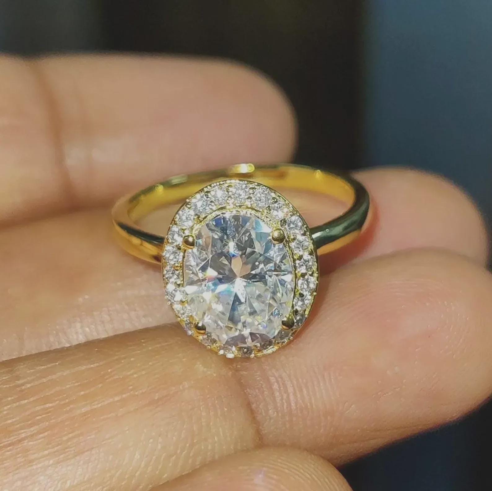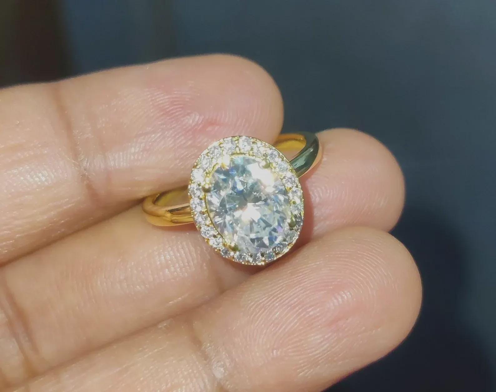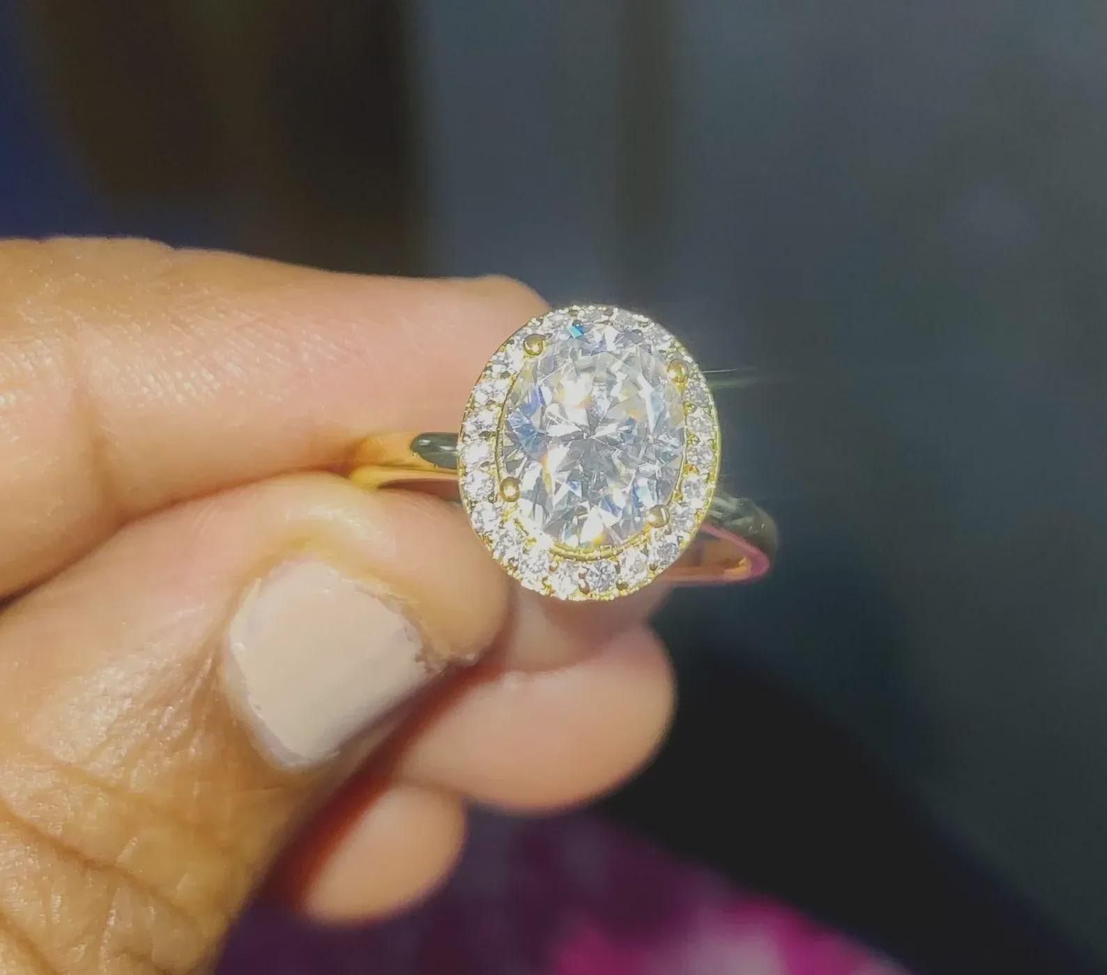 2Ct Diamond Oval Cut Wedding Halo Ring Simulated Diamond Ring 14K Yellow Gold Finish 925 Sterling Silver Engagement Ring Anniversary Ring
