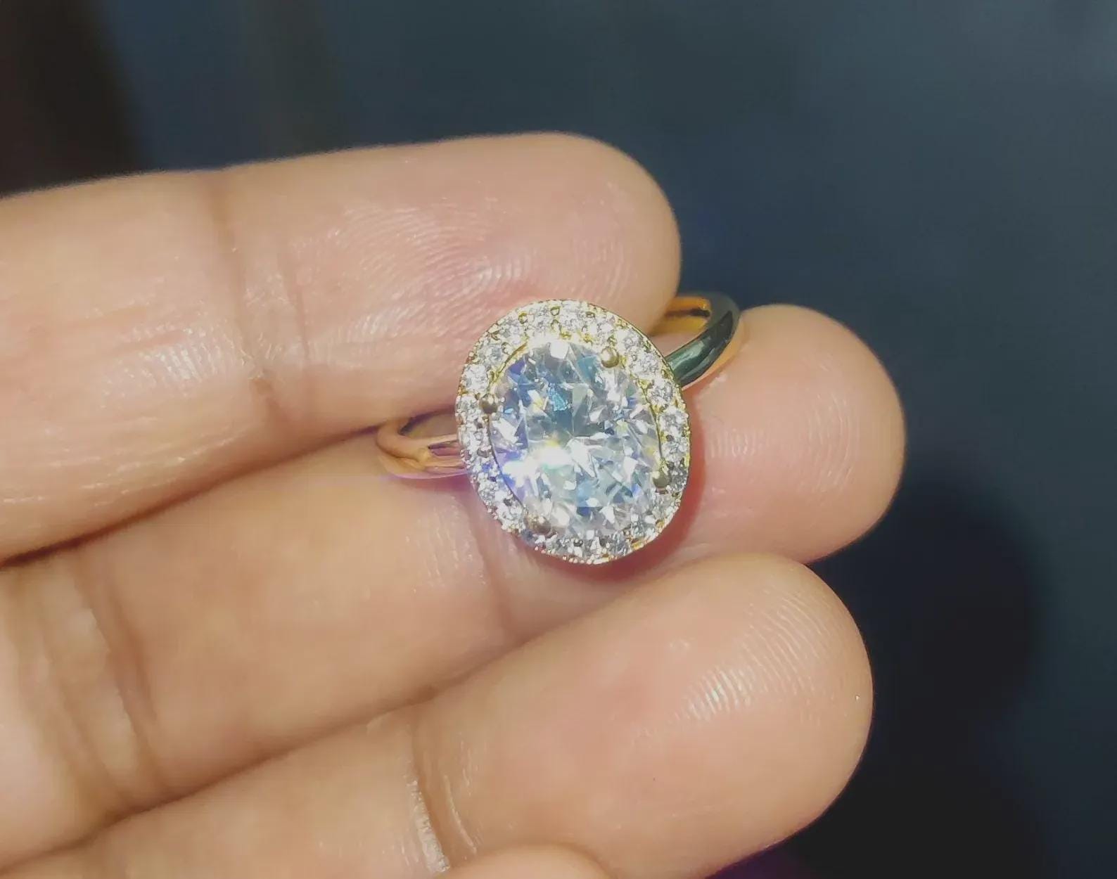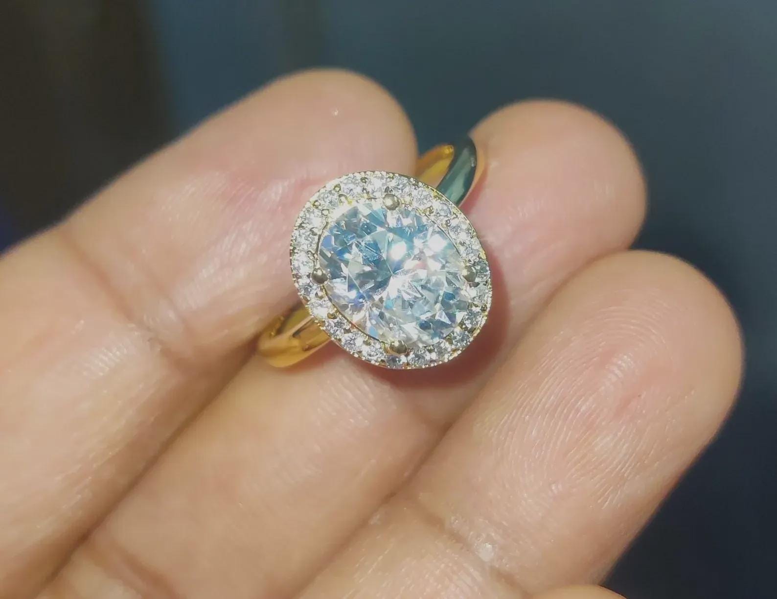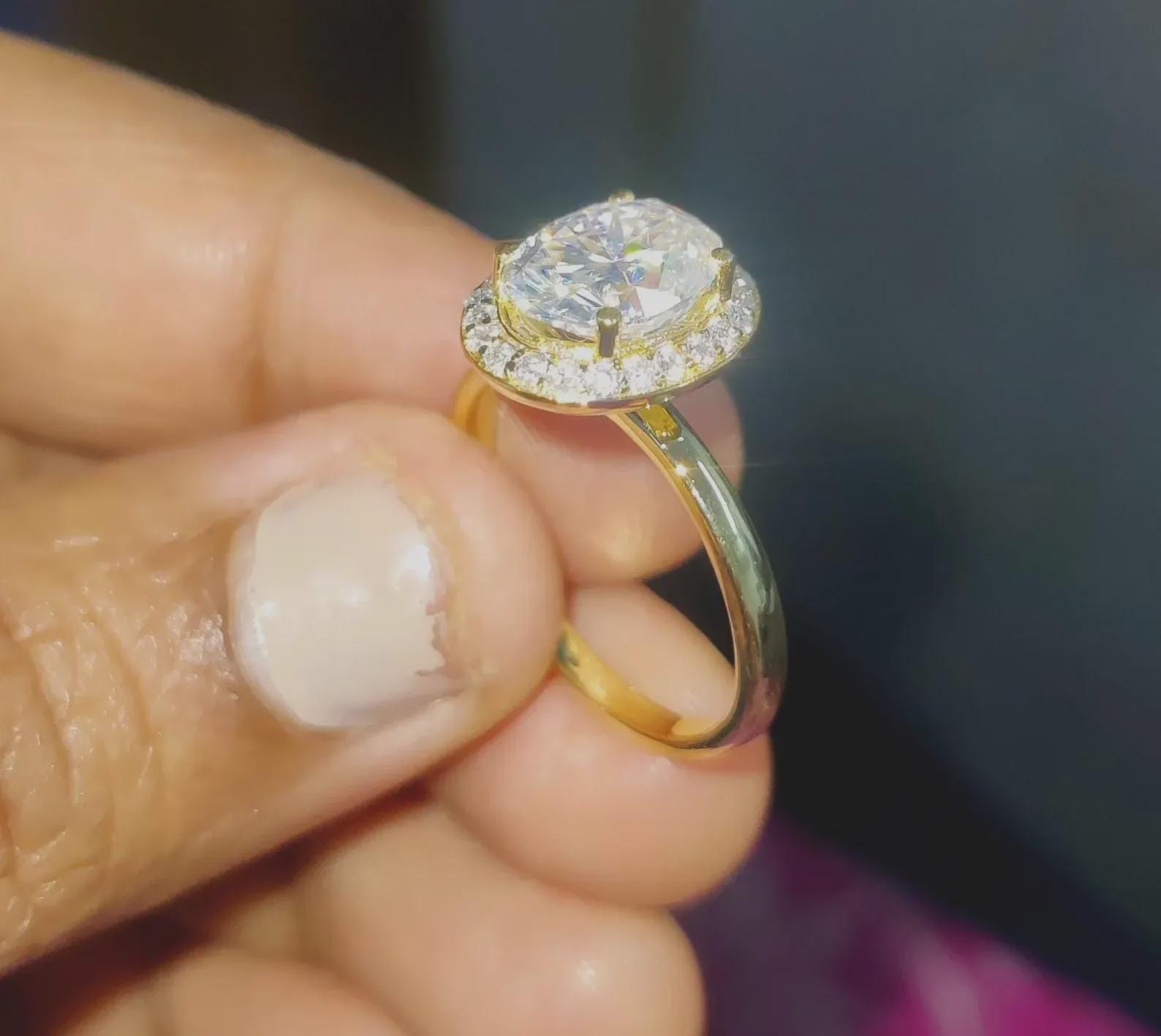 2Ct Diamond Oval Cut Wedding Halo Ring Simulated Diamond Ring 14K Yellow Gold Finish 925 Sterling Silver Engagement Ring Anniversary Ring