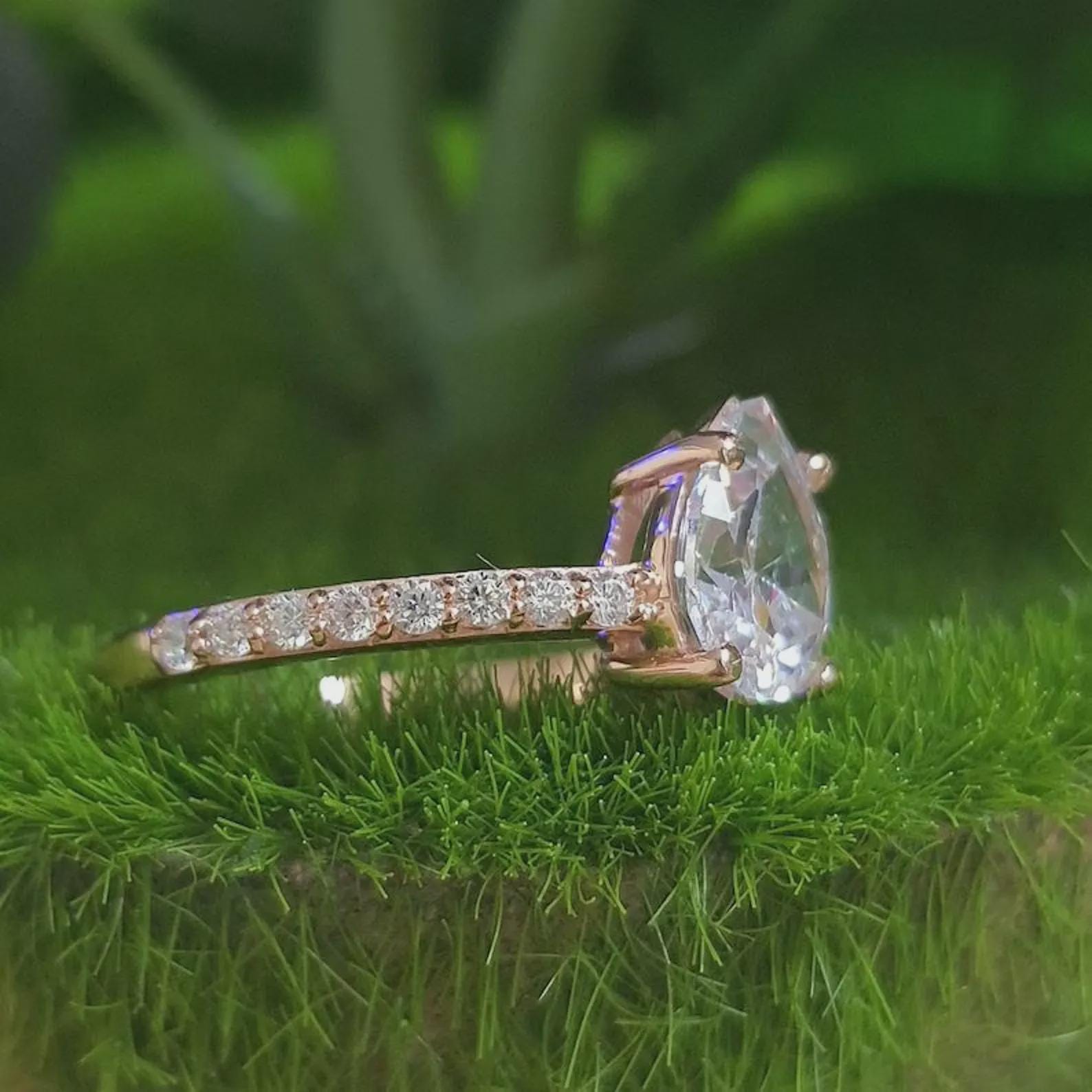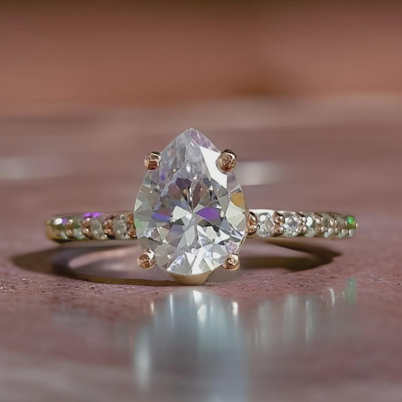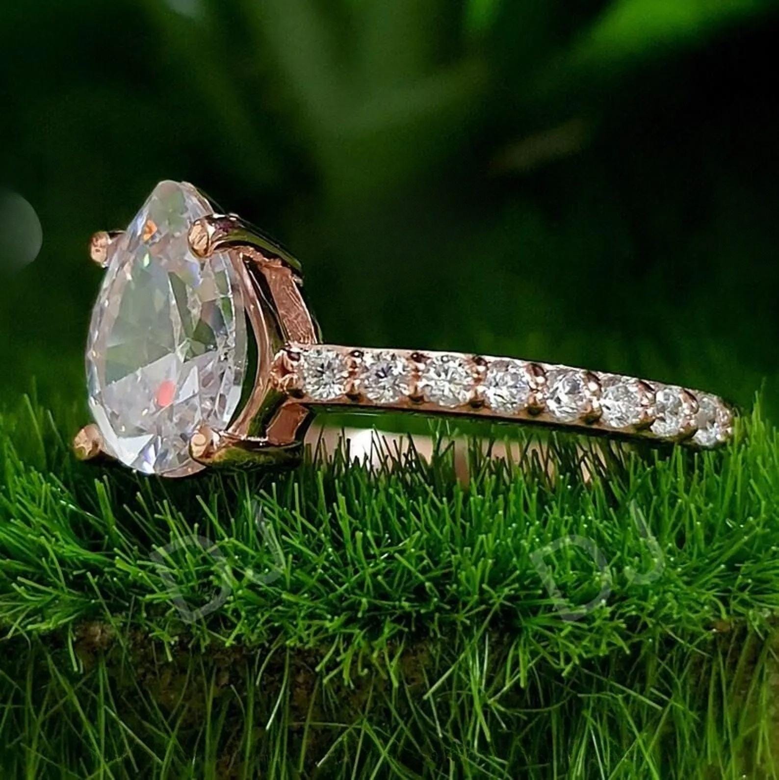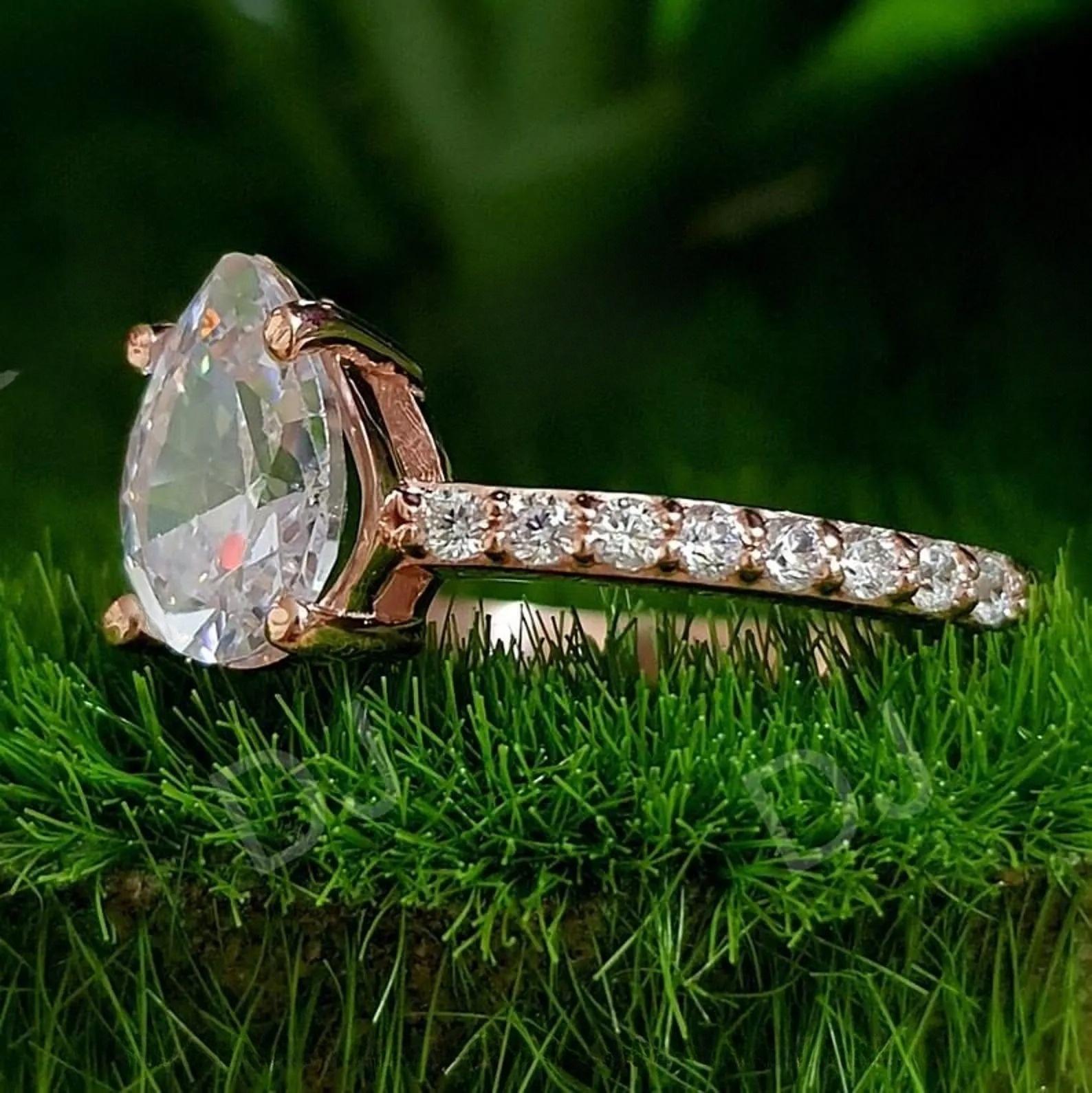 2Ct Diamond Pear Cut Wedding Ring Simulated Diamond Solitaire Ring 14K Rose Gold Finish Sterling 925 Silver Engagement Ring Birthday Gift