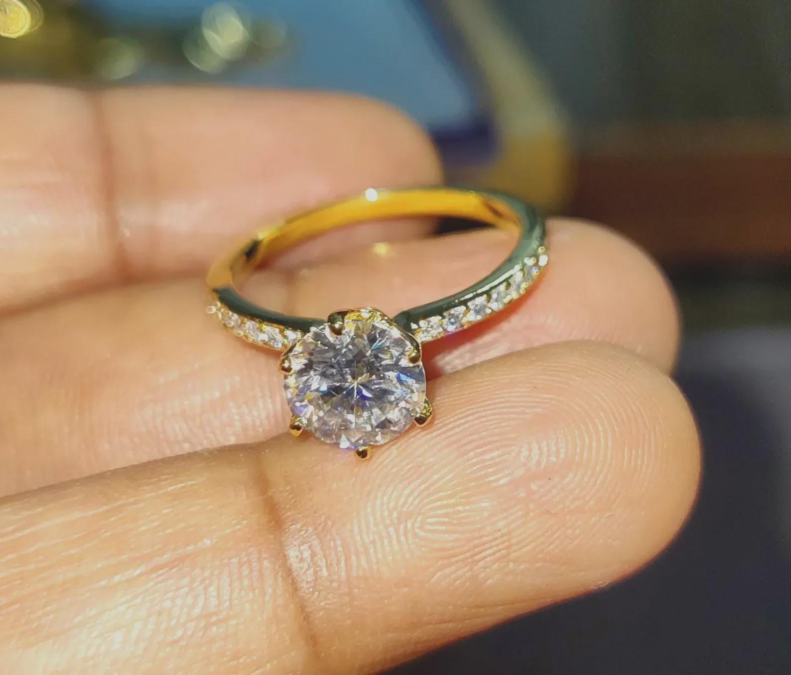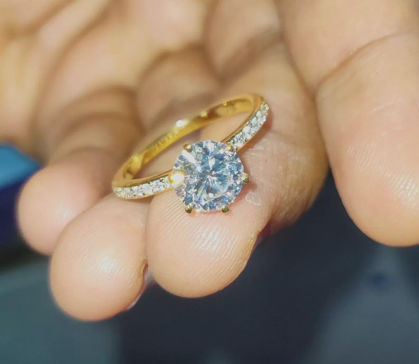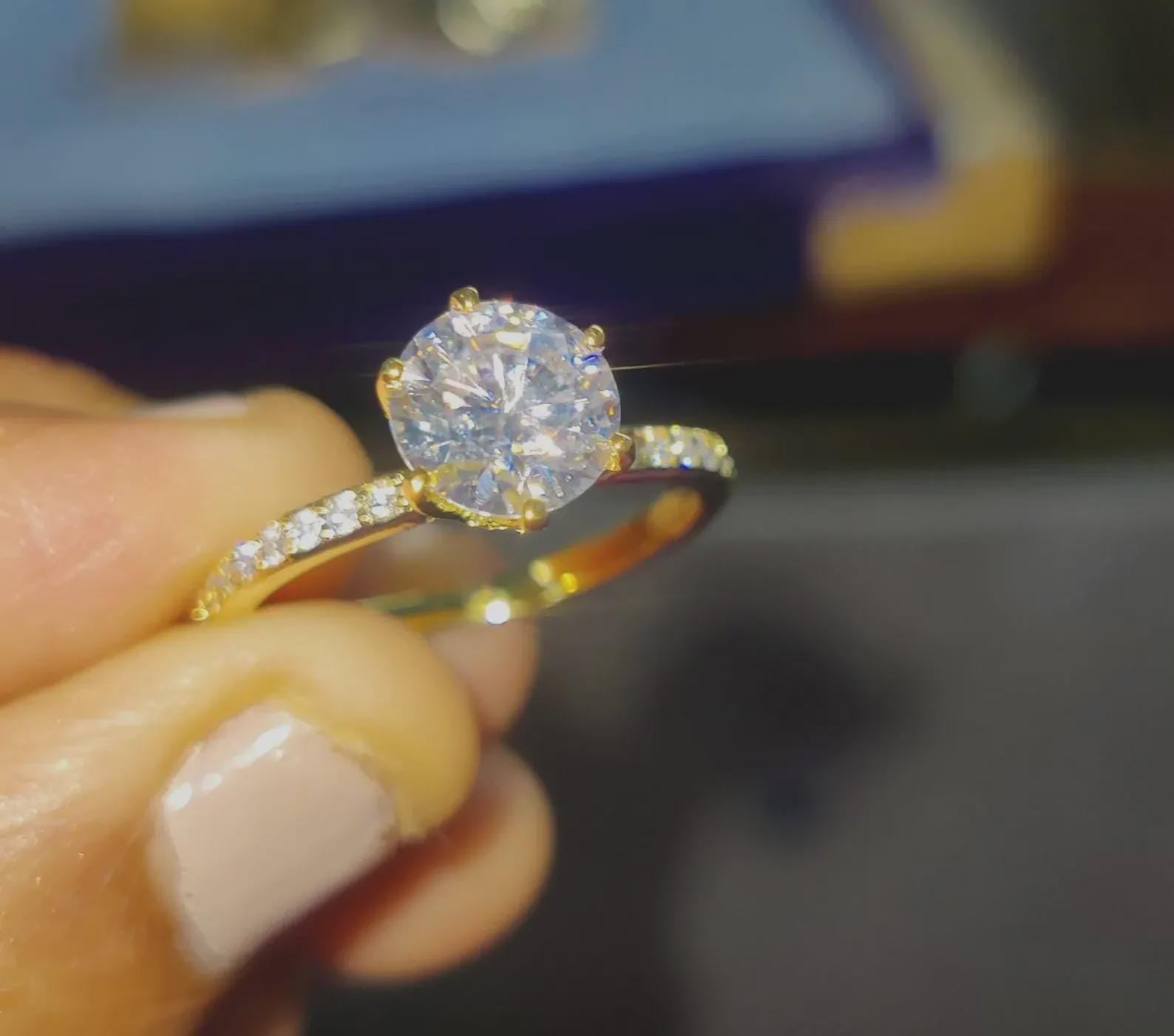 2Ct Diamond Round Cut Wedding Ring Simulated Diamond Solitaire Ring 14K Yellow Gold Finish Sterling 925 Silver Engagement Ring Birthday Gift