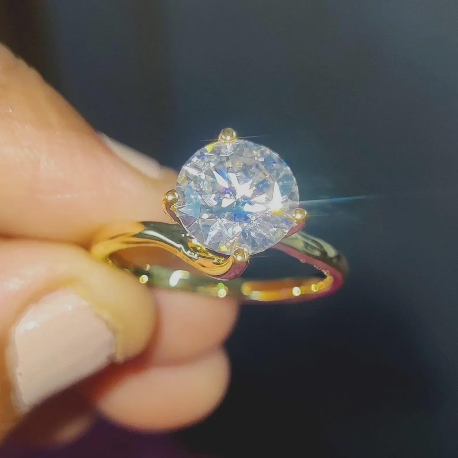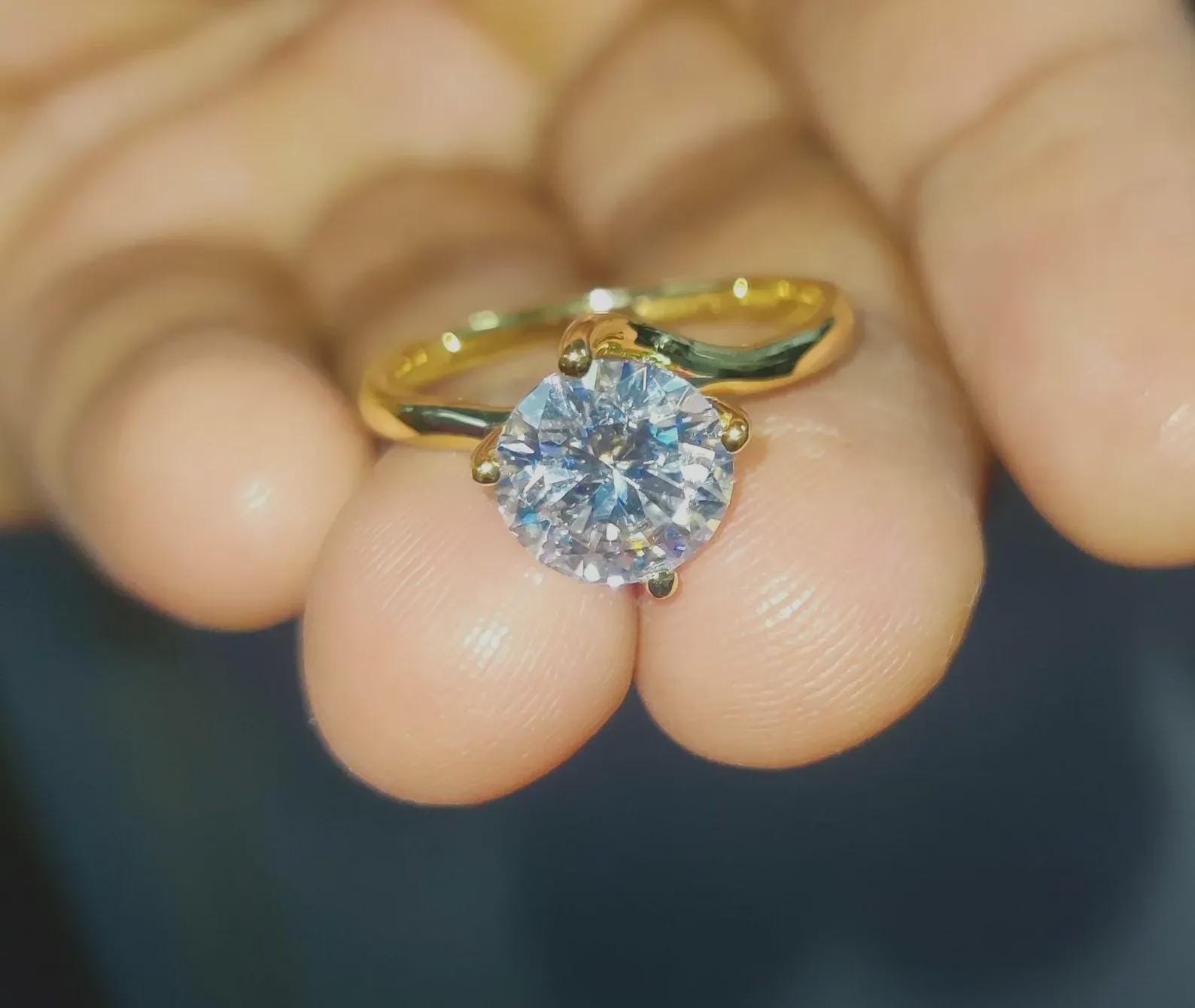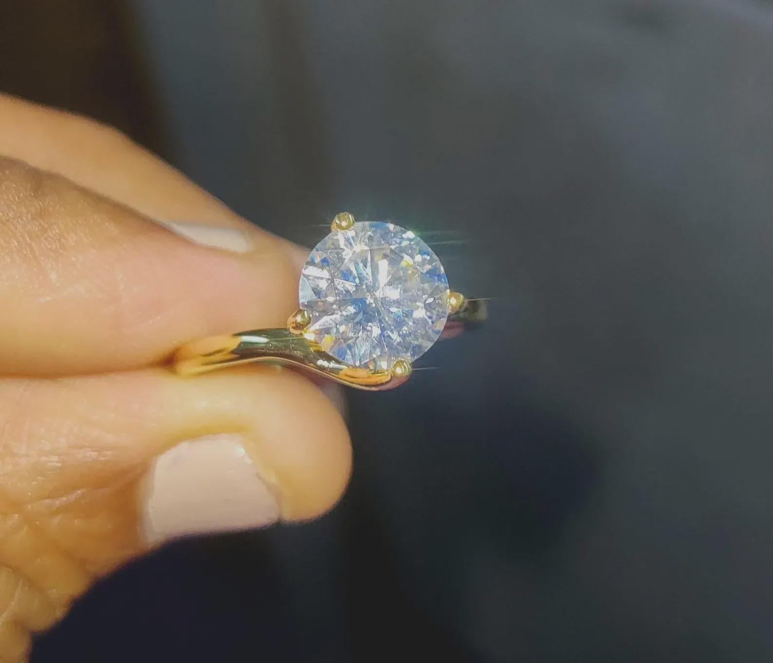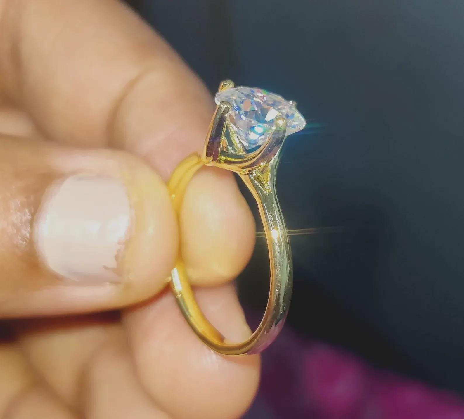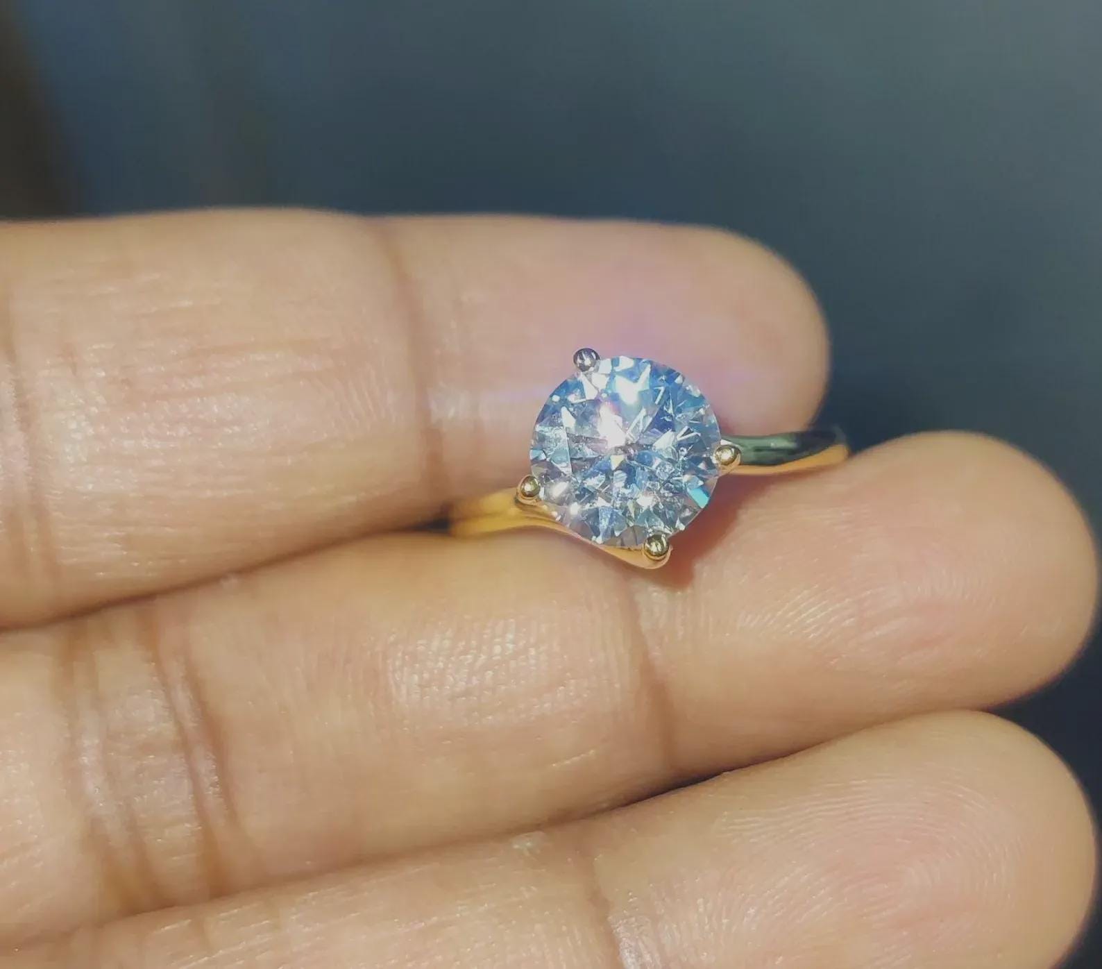 2Ct Diamond Solitaire Ring Round Cut Simulated Diamond Anniversary Ring 14K Yellow Gold Finish Sterling Silver Engagement Ring Birthday Gift