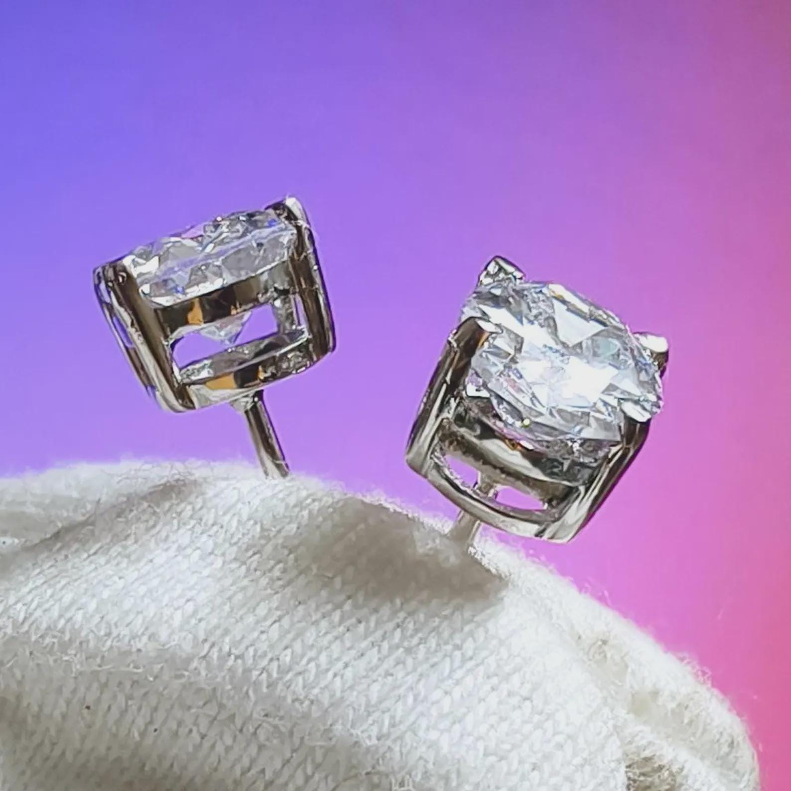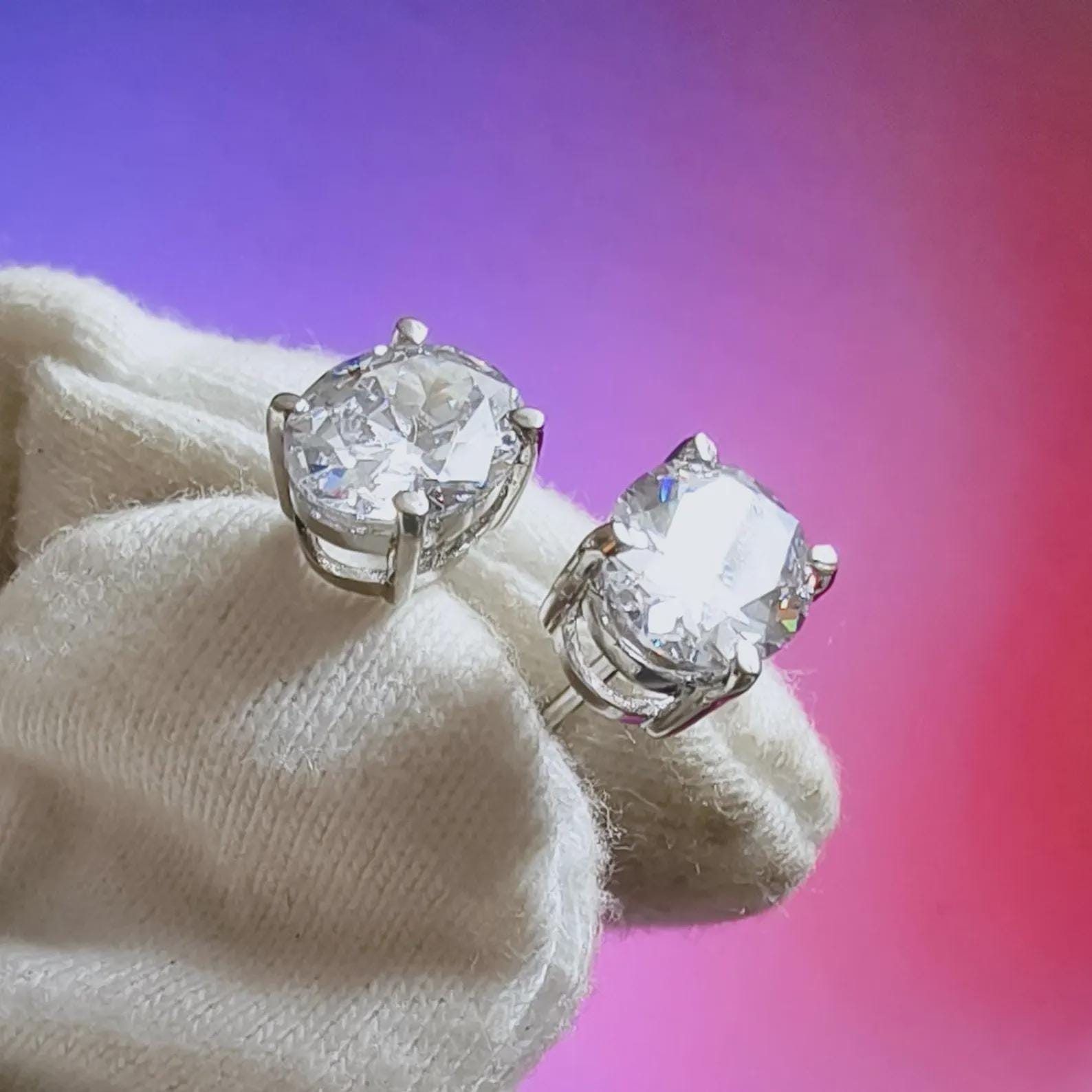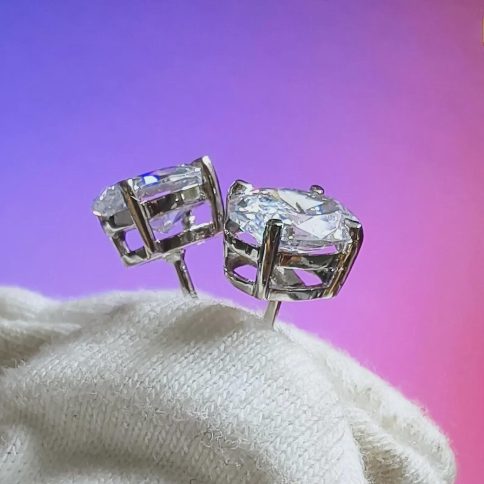 2Ct Diamond Stud Earrings 4Ct Oval Cut VVS1 Diamond Solitaire Stud Earrings 14K White Gold Finish 925 Silver Diamond Stud Earrings