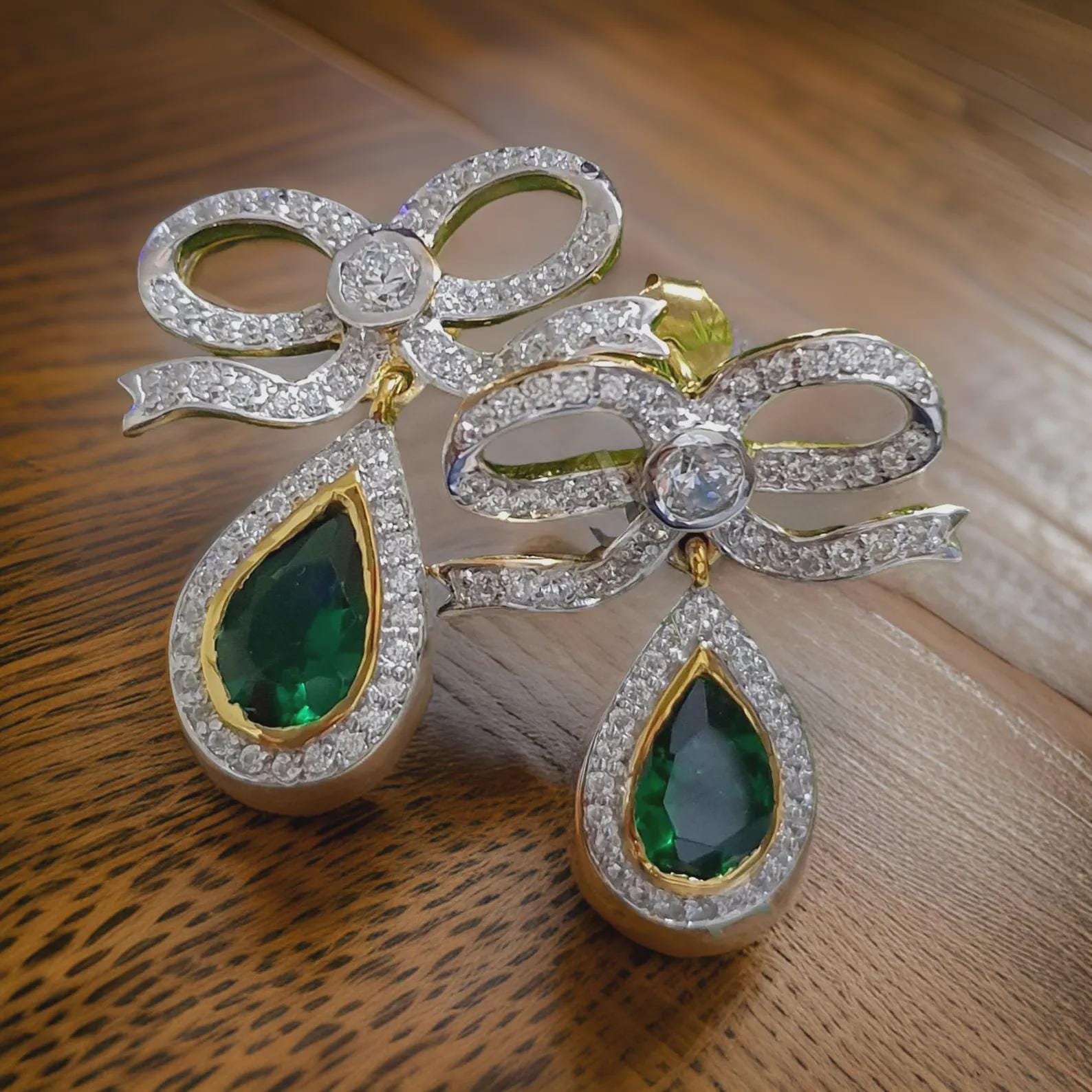 2Ct Drop Dangle Earring Pear Cut Green Emerald Diamond 14K Two-Tone Gold Plated 925 Sterling Silver Dangle Earring Birthday Gift