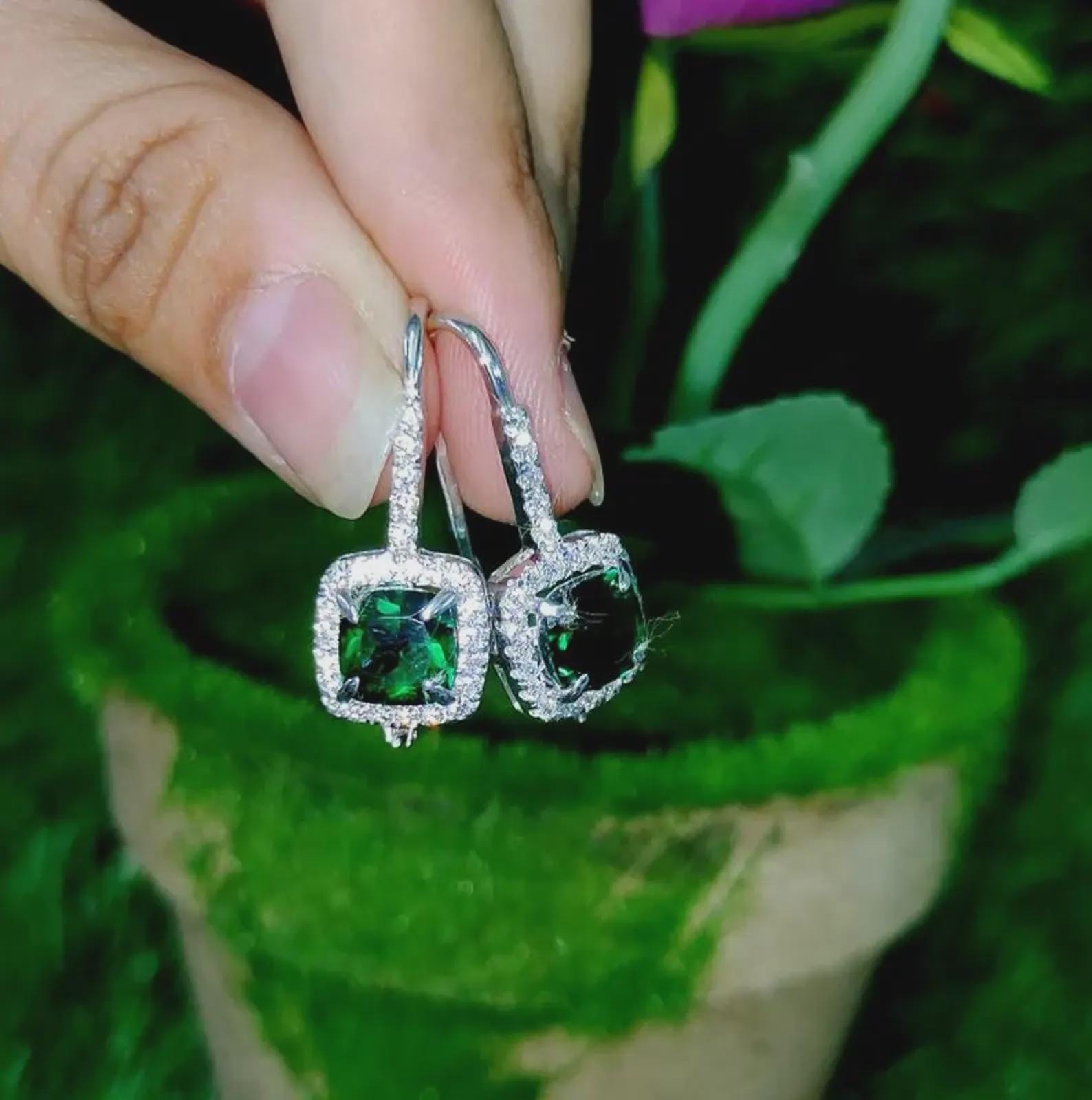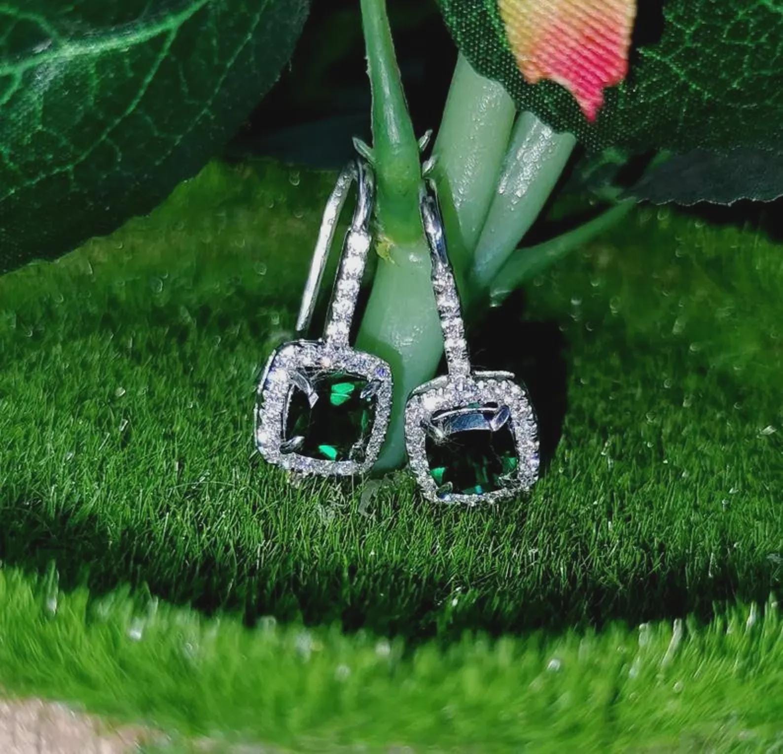 2Ct Emerald Cut Green Emerald Elegant Drop Dangle Women's Earrings 14K White Gold Plated - 925 Silver