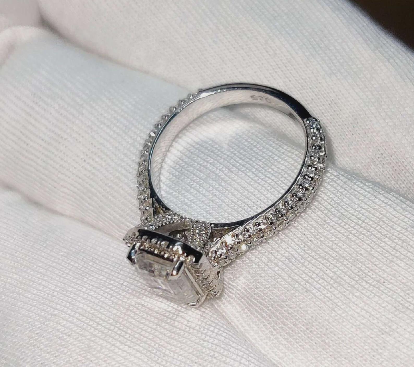 2Ct Emerald Cut Halo Simulated Diamond Solitaire Engagement Anniversary Ring 14K White Gold Finish 925 Sterling Silver Wedding Gift For her
