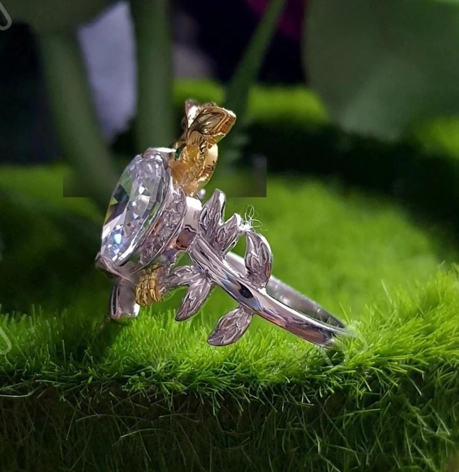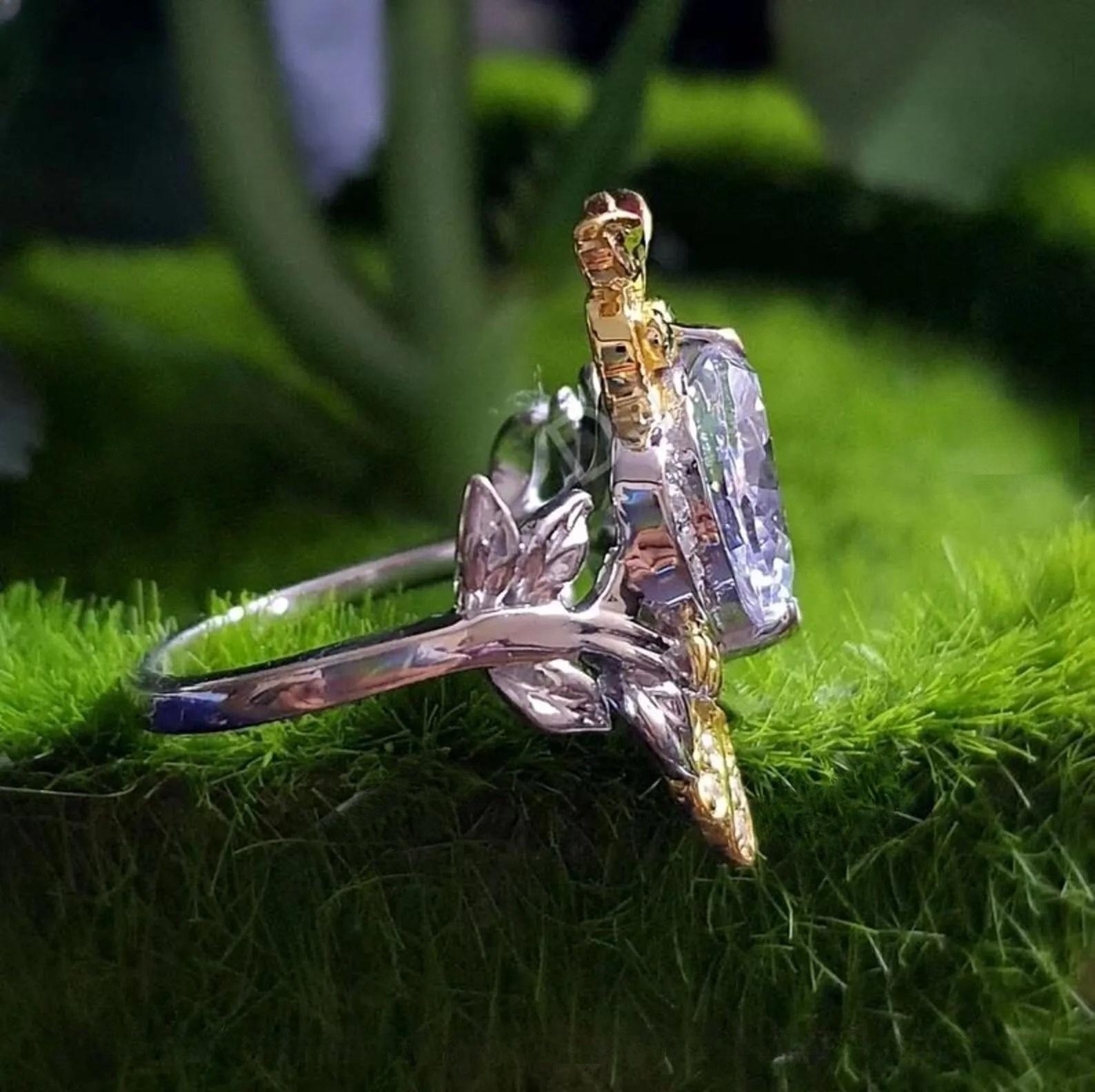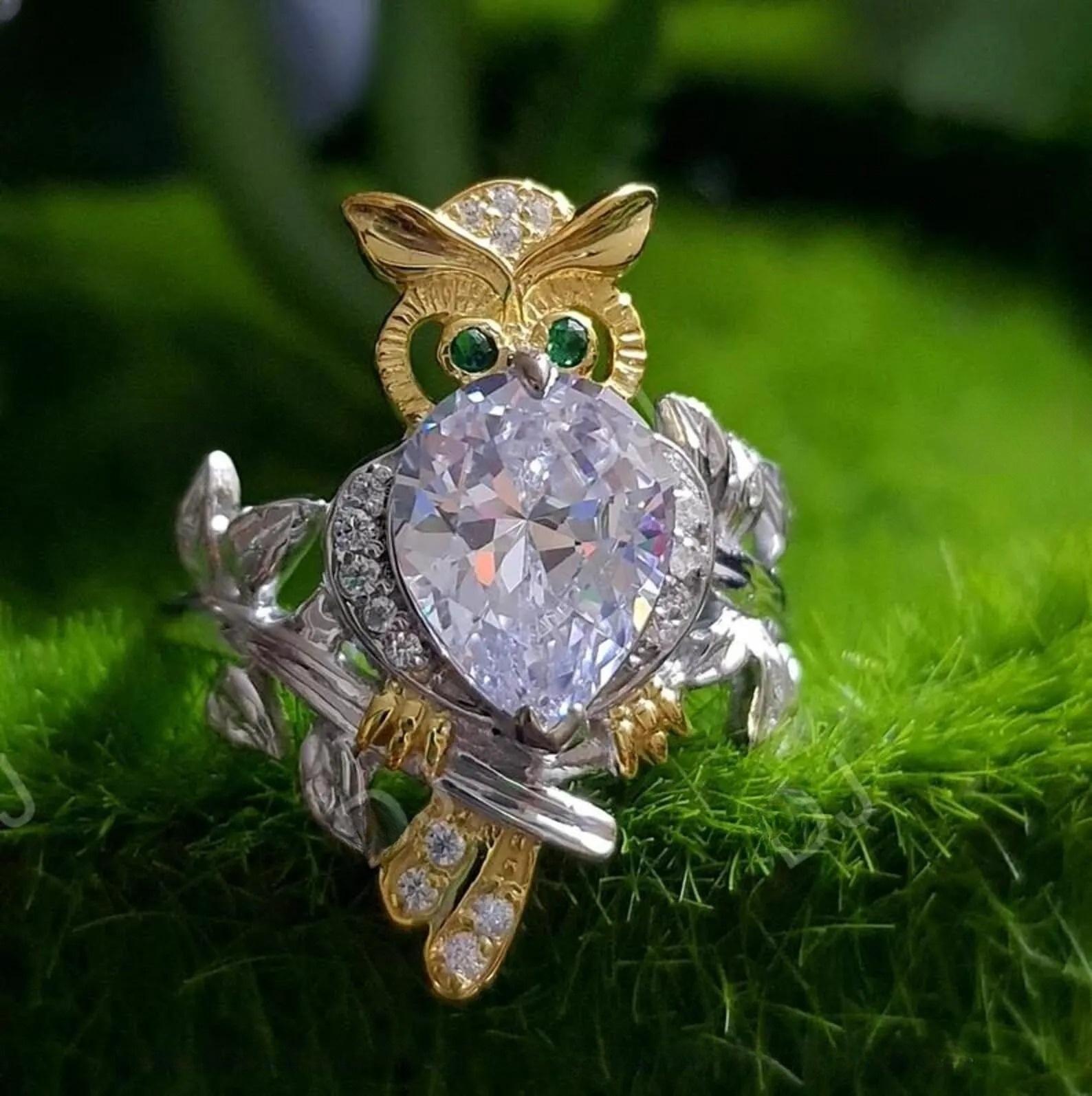 2Ct Heart Cut Owl Shape Ring Simulated Green Emerald 14K Two Tone Gold Plated 925 Sterling Silver, Anniversary Ring, For Birthday Gift Ring