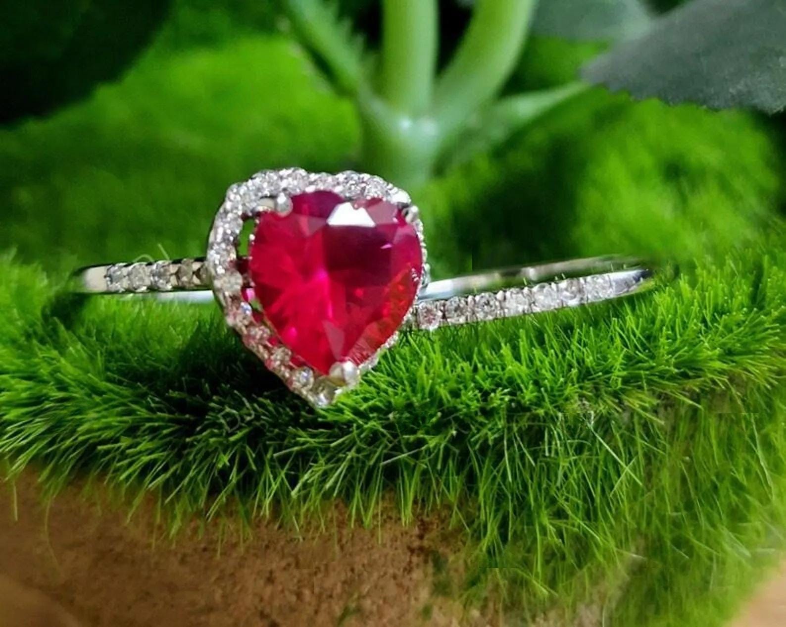 2Ct Heart Cut Simulated Red Ruby Diamond Promise Love 14K White Gold Finish Bridal Engagement Anniversary Ring , Birthday Gift, Ring For Her