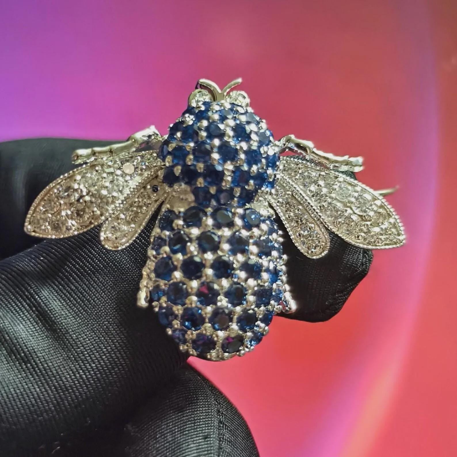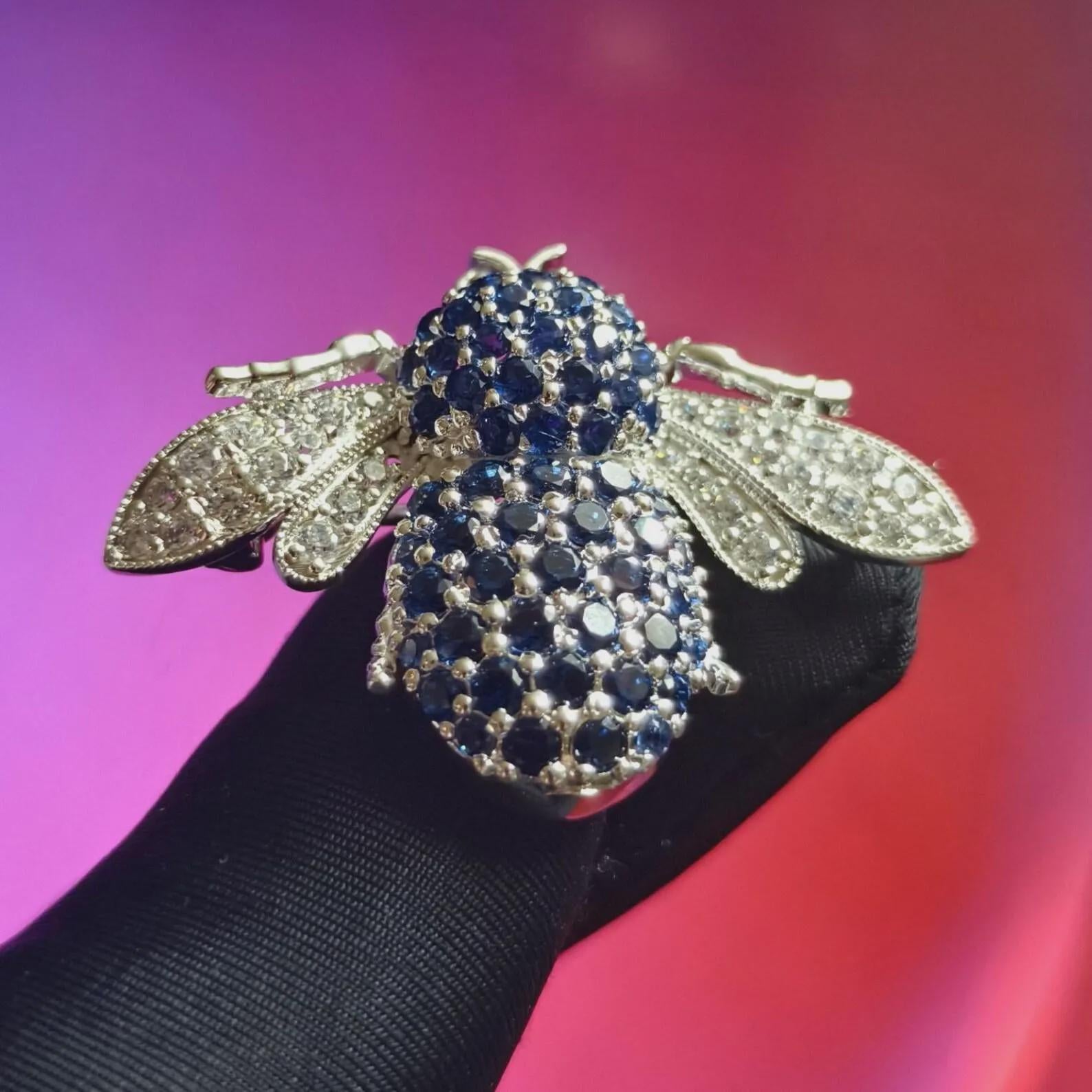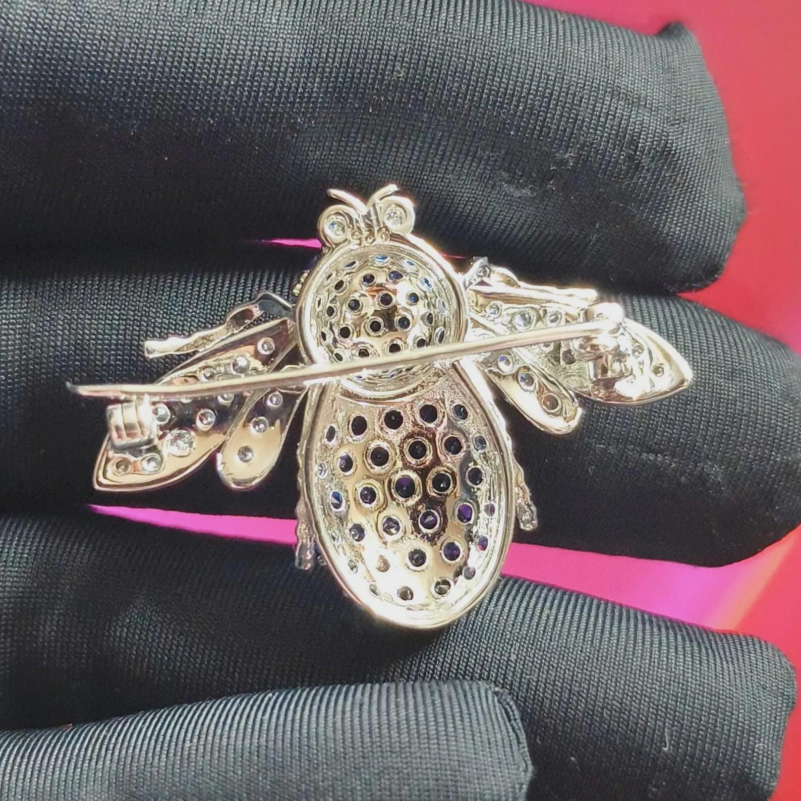 2Ct Honey Bee Brooch Pin Round Simulated Blue Sapphire Diamond 14K White Gold Plated 925 Sterling Silver, Honey Bee Brooch Pin, Gift For Her