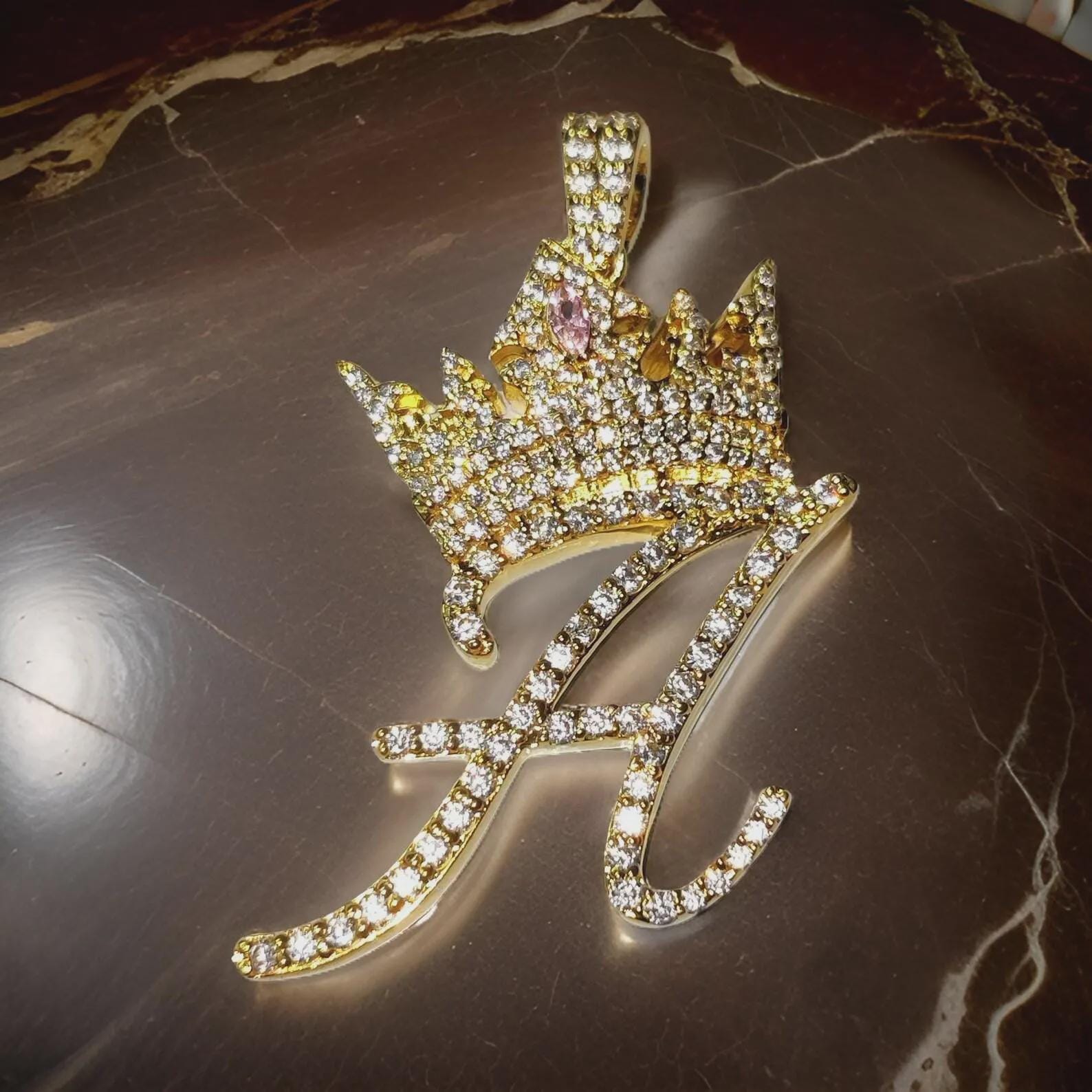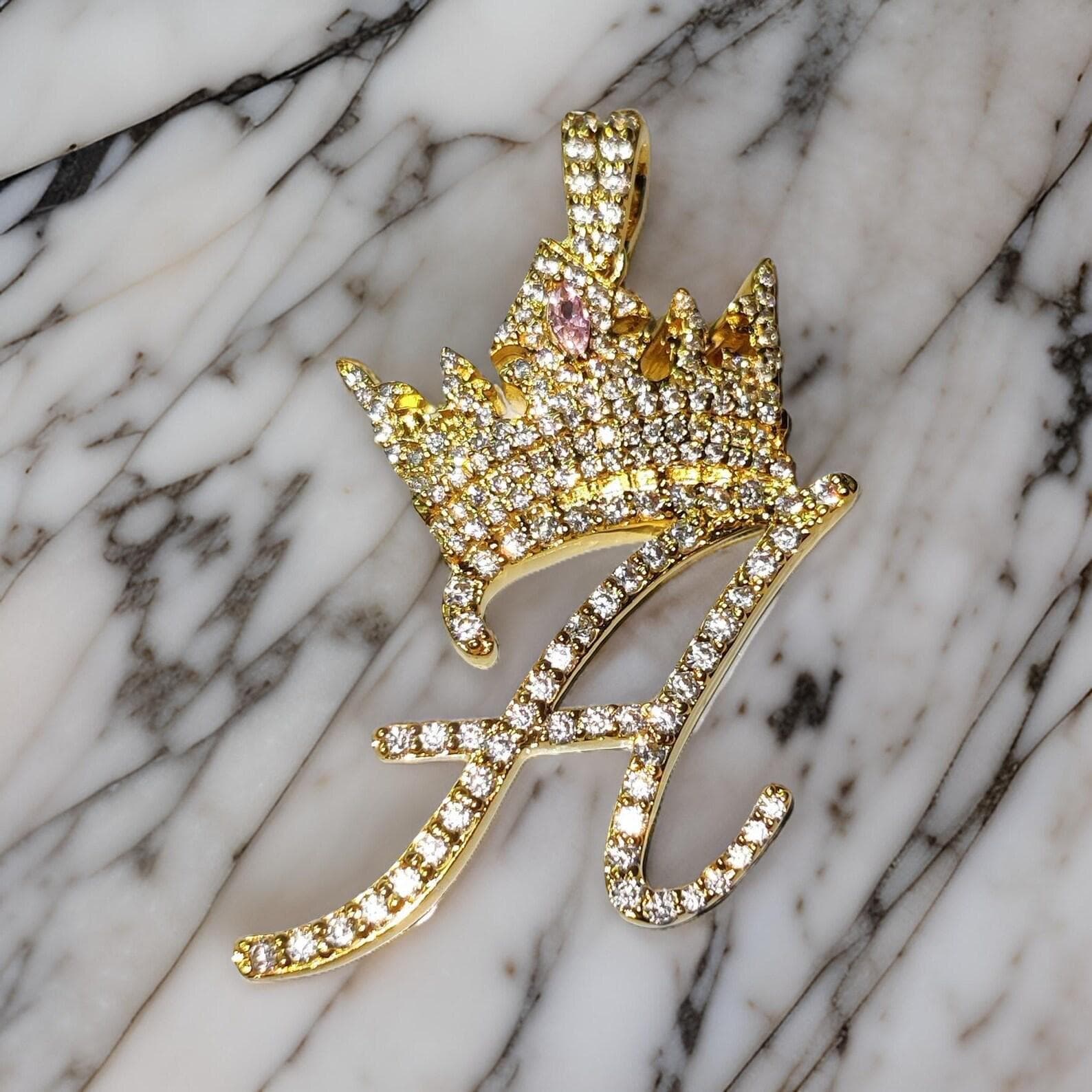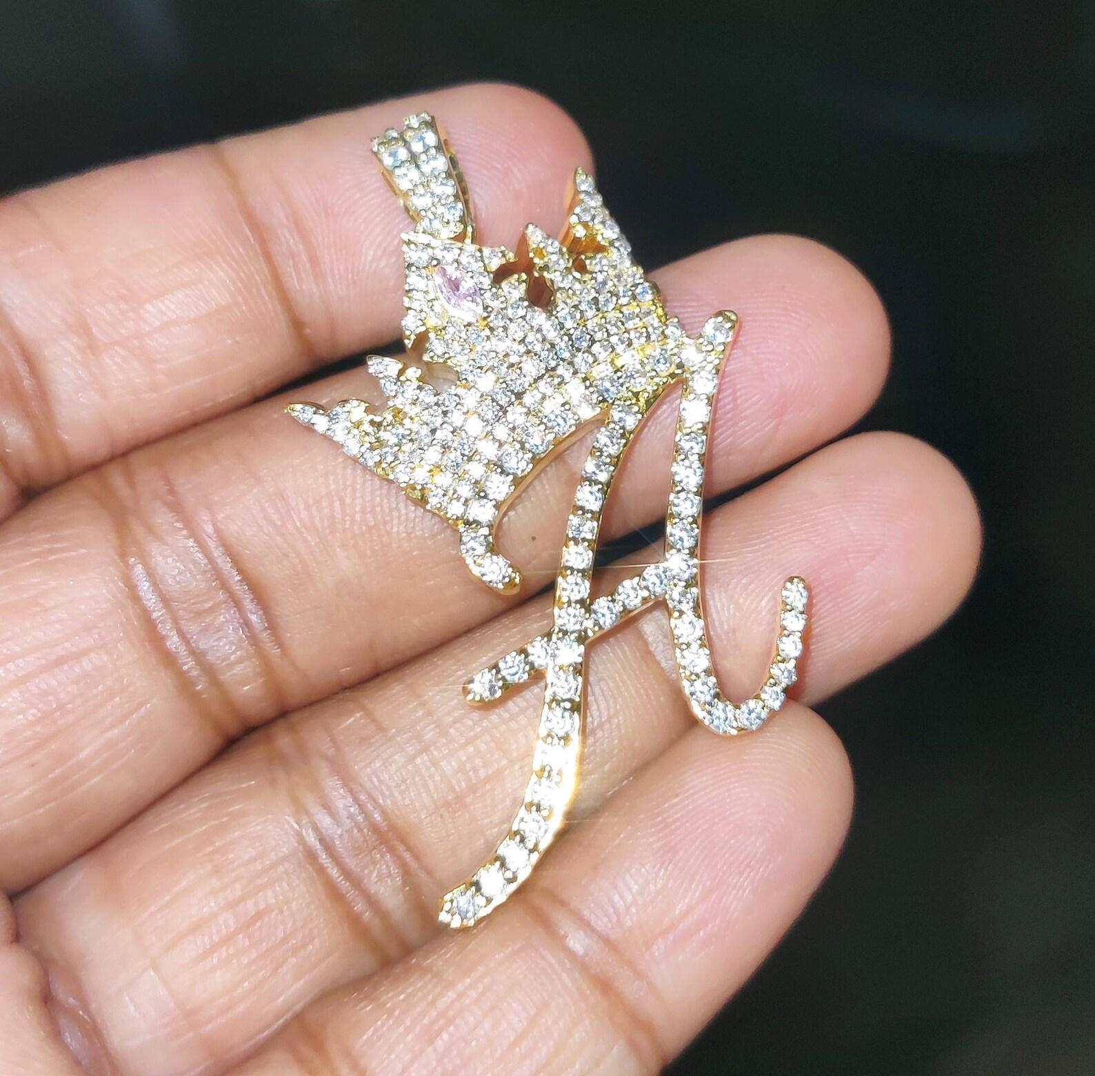 2Ct Letter Pendant Round Simulated Diamond Pendant 14K White Gold Plated 925 Sterling Silver Custom Any Letter Diamond Pendant