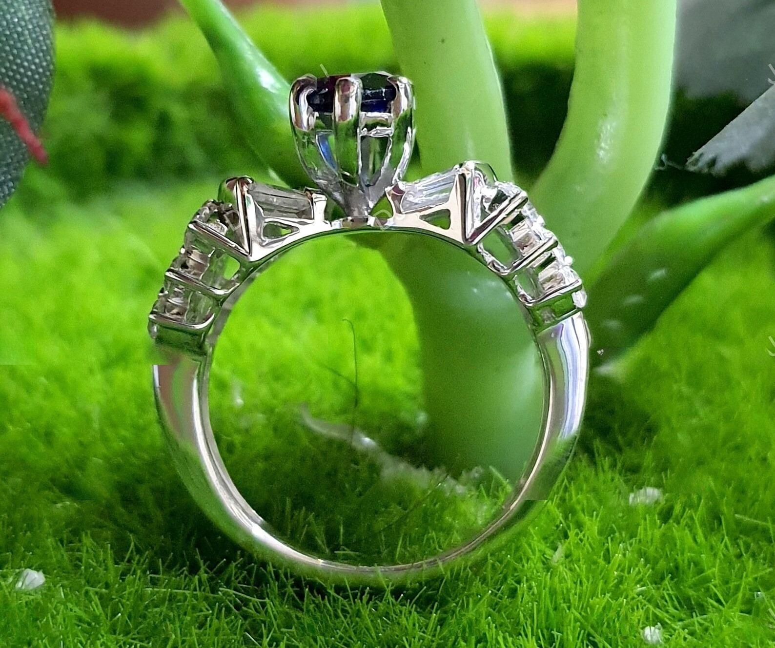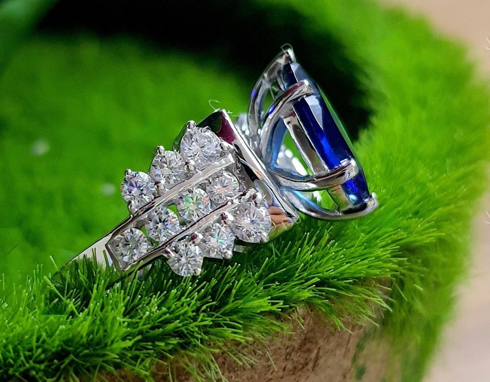 2Ct Marquise Cut Blue Sapphire Diamond Solitaire 14K White Gold Finish Engagement Wedding Anniversary Ring, Birthday Gift, Ring For Her