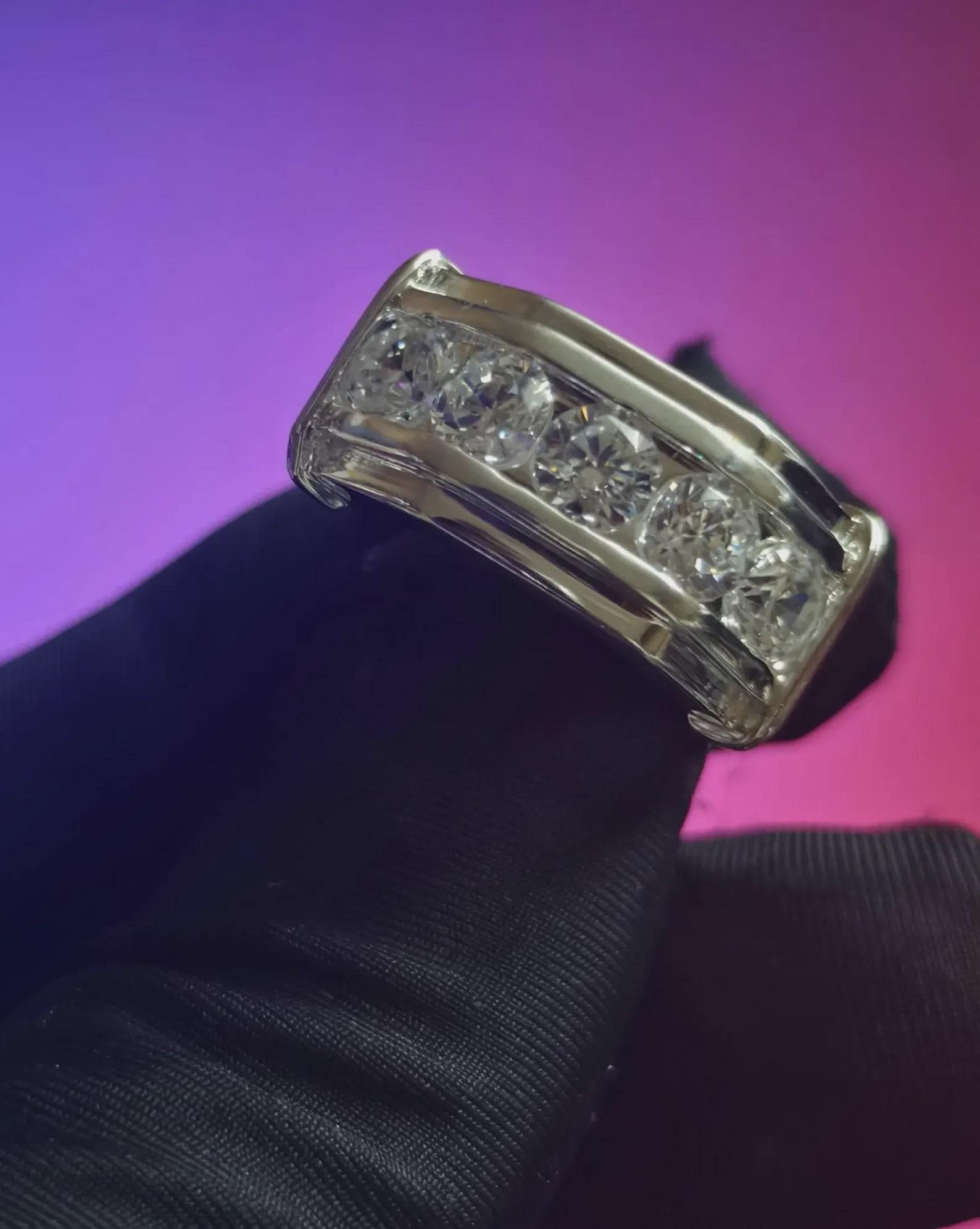 2Ct Moissanite Anniversary Band Ring Round Cut 14K White Gold Plated 925 Silver, Engagement Band Ring, For Wedding Ring