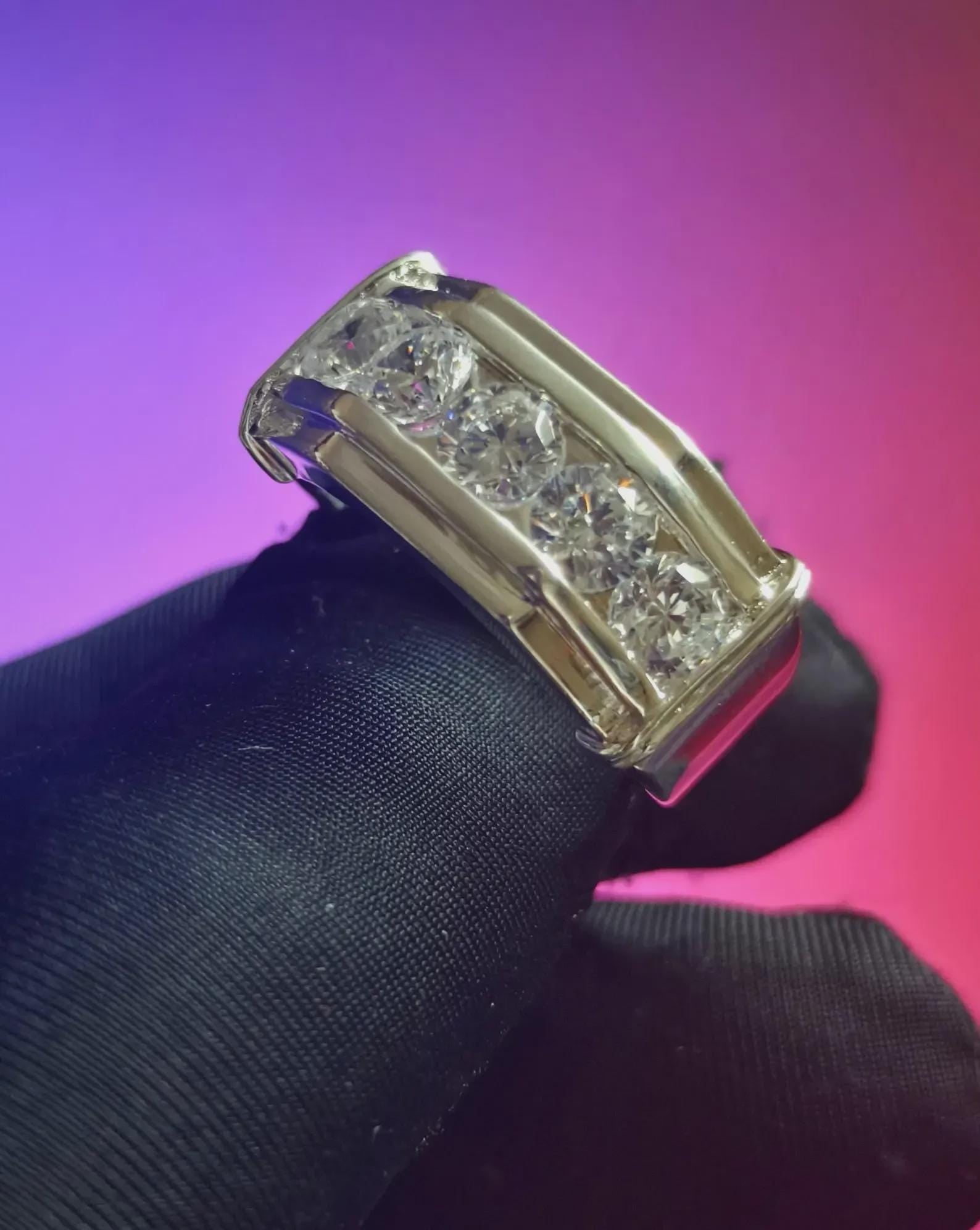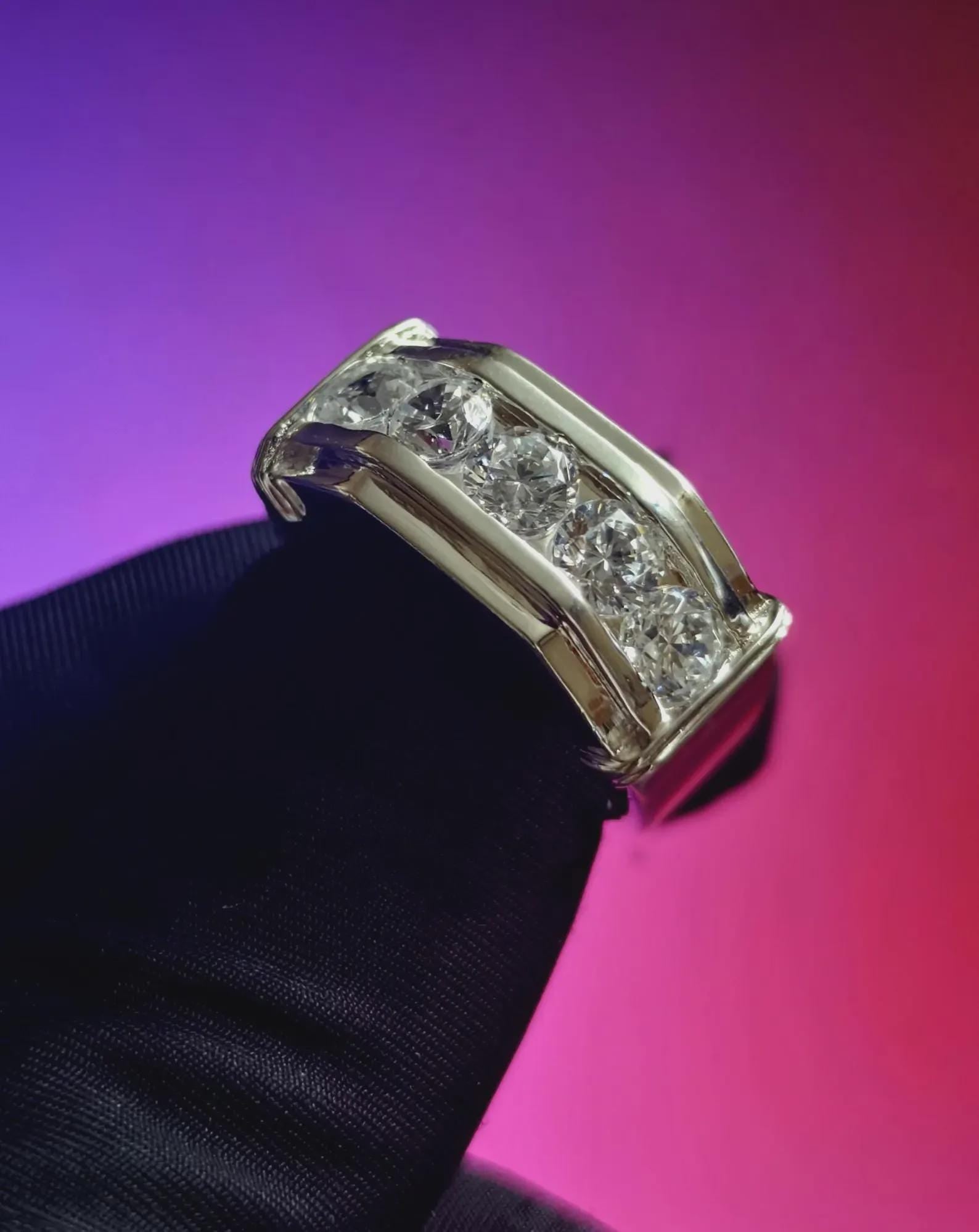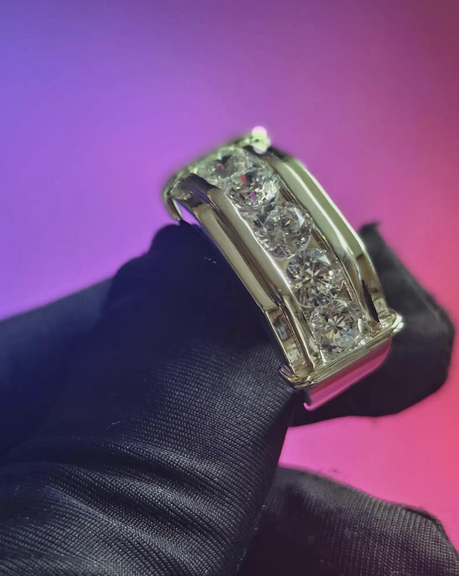 We would be more than happy to customize the item according to your specific requirements. If you have any special requests, please feel free to contact us, and we will do our best to accommodate them. For additional personalization, we can modify the gemstones, the width of the band, and the curvature of the rings to match your desired style and preferences.