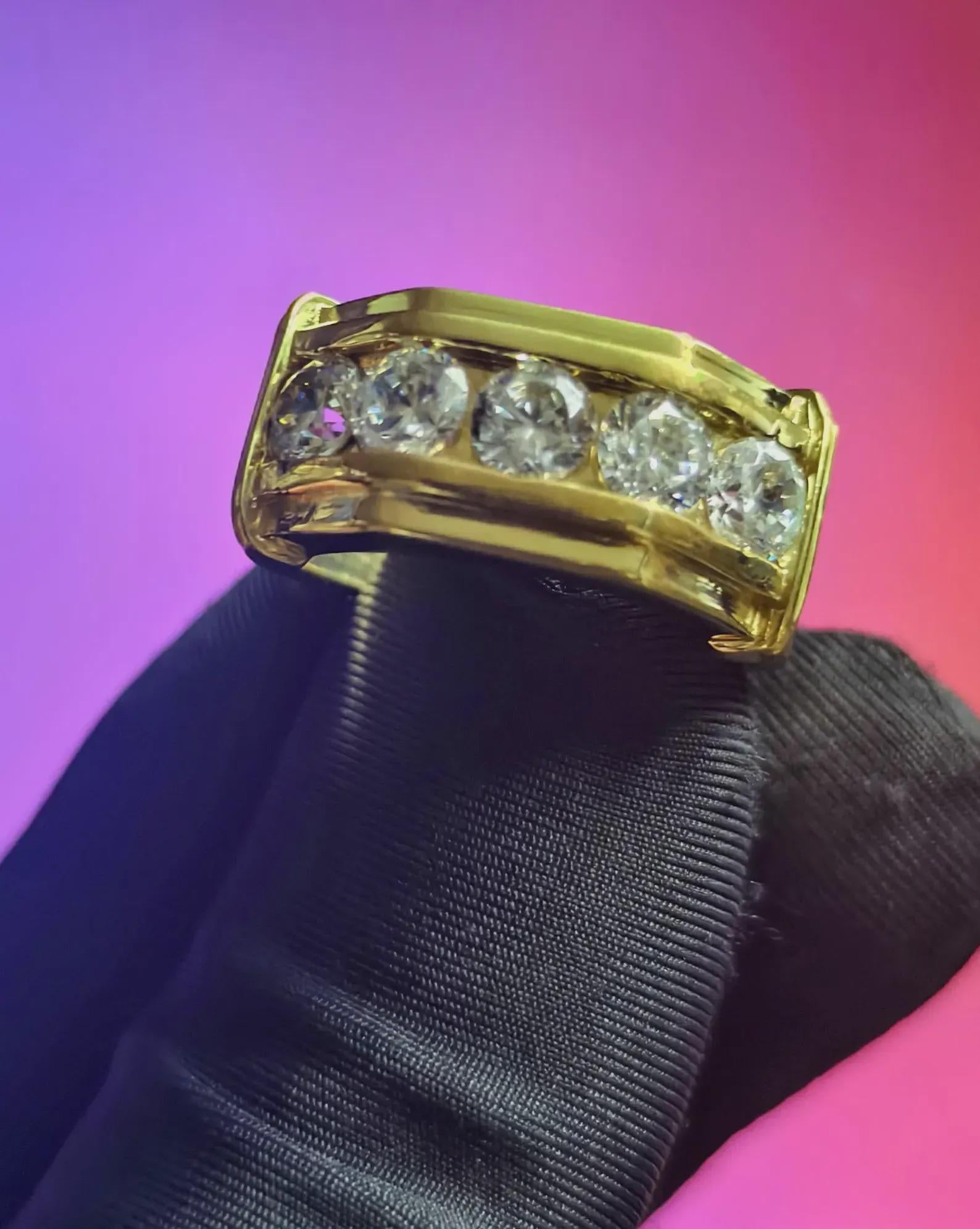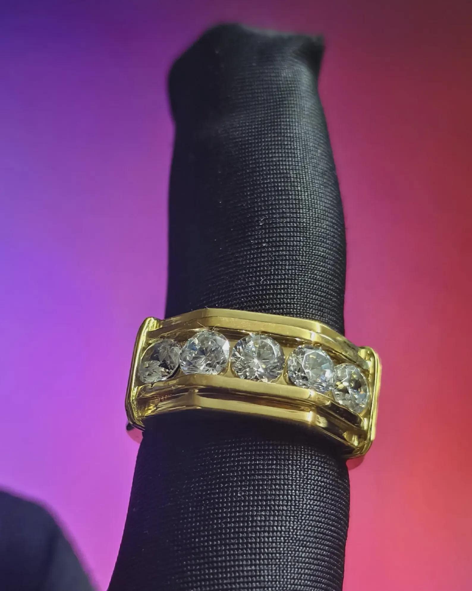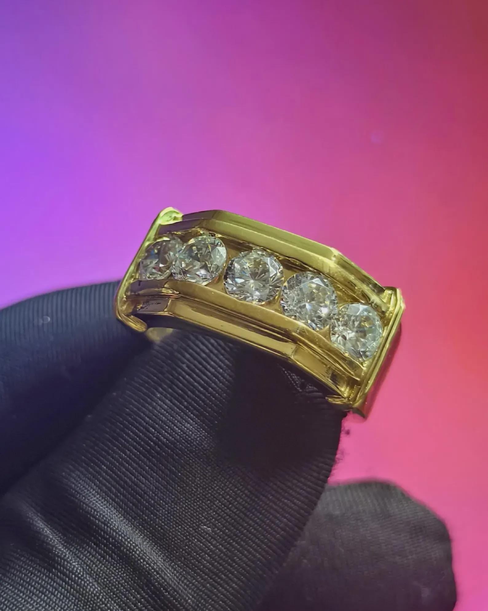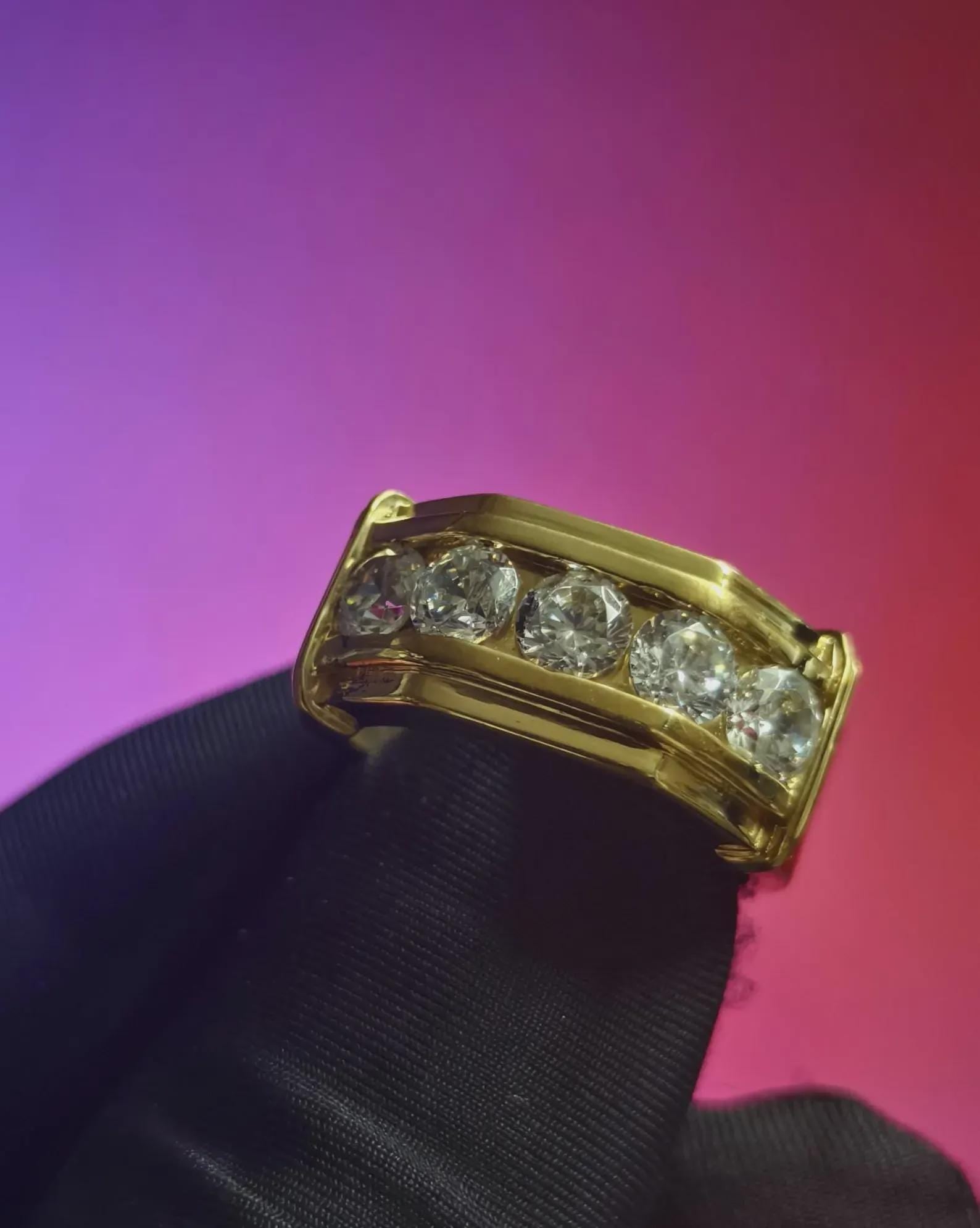 2Ct Moissanite Anniversary Band Ring Round Cut 14K Yellow Gold Plated 925 Silver, Engagement Band Ring, For Wedding Ring