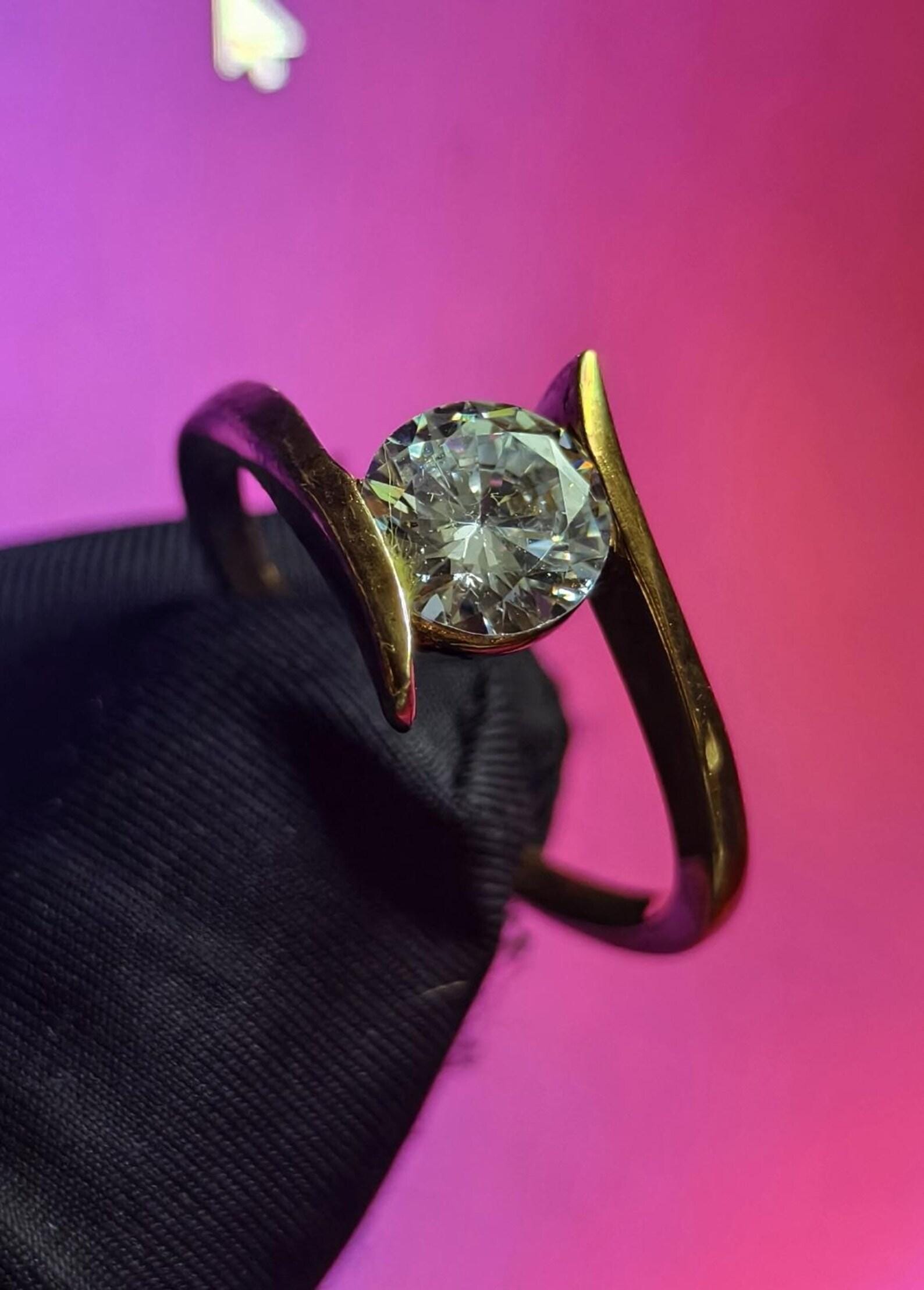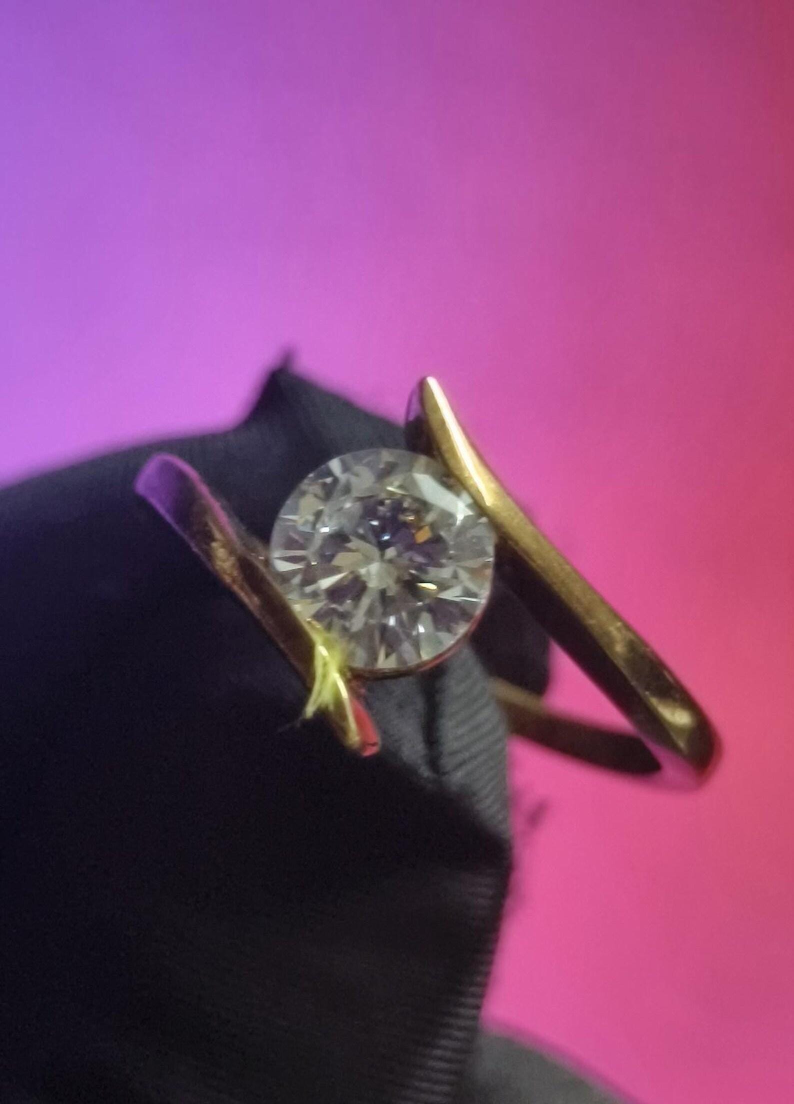 2Ct Moissanite Solitaire Ring Round 14K Yellow Gold Plated 925 Sterling Silver, Anniversary Ring, Wedding Ring, Gift For Her