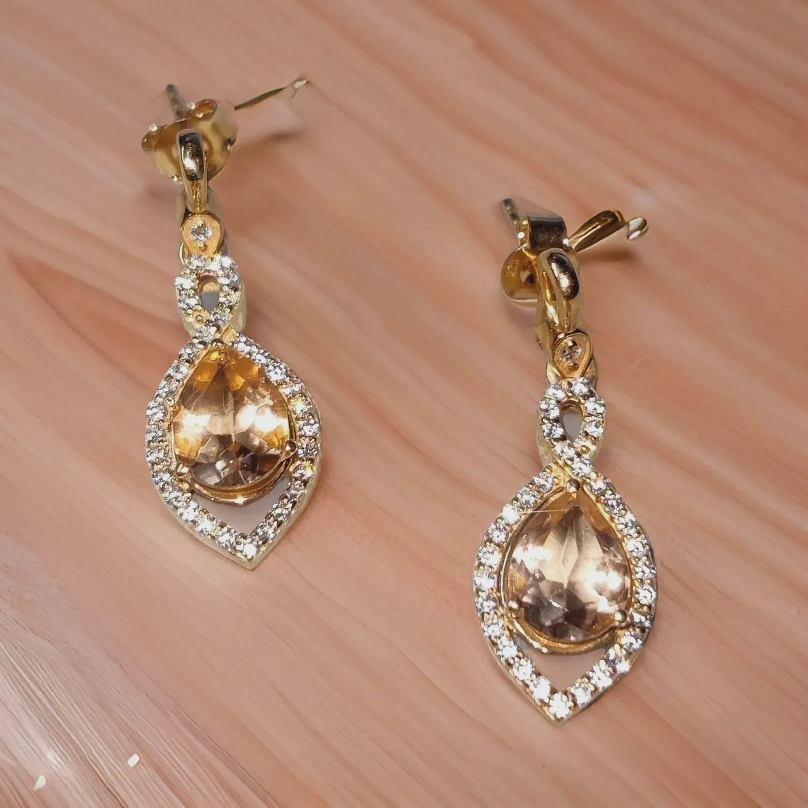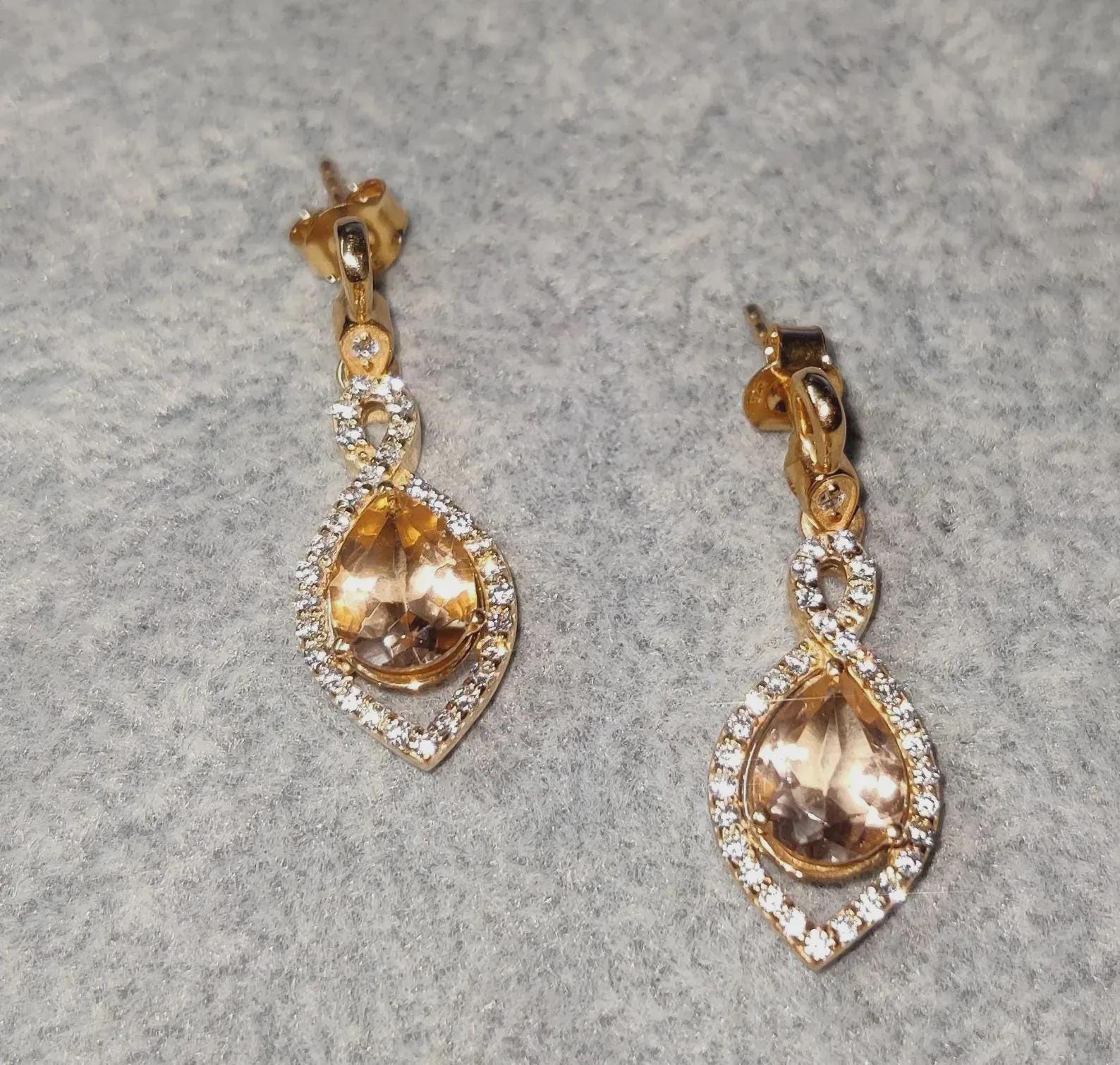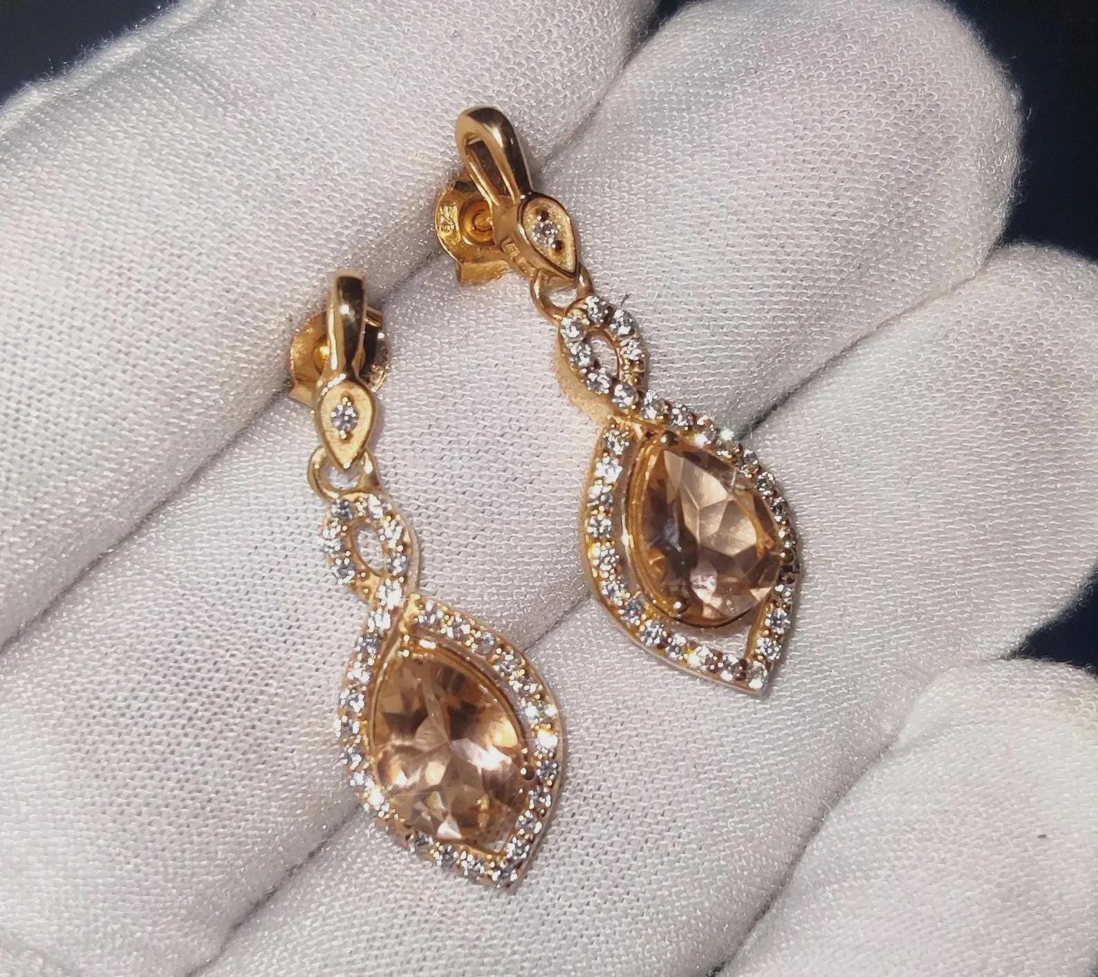 2Ct Morganite Dangle Earrings Pear Cut Simulated morganite Diamond Earrings 14K Yellow Gold Plated 925 Sterling Silver Drop Dangle Earrings