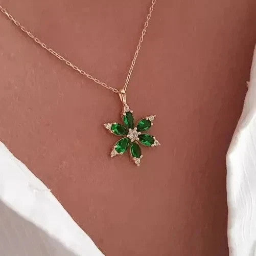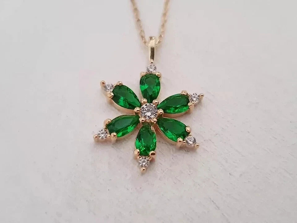 2Ct Pear Cut Lab Created Emerald Diamond Flower Pendant 14K Rose Gold Plated