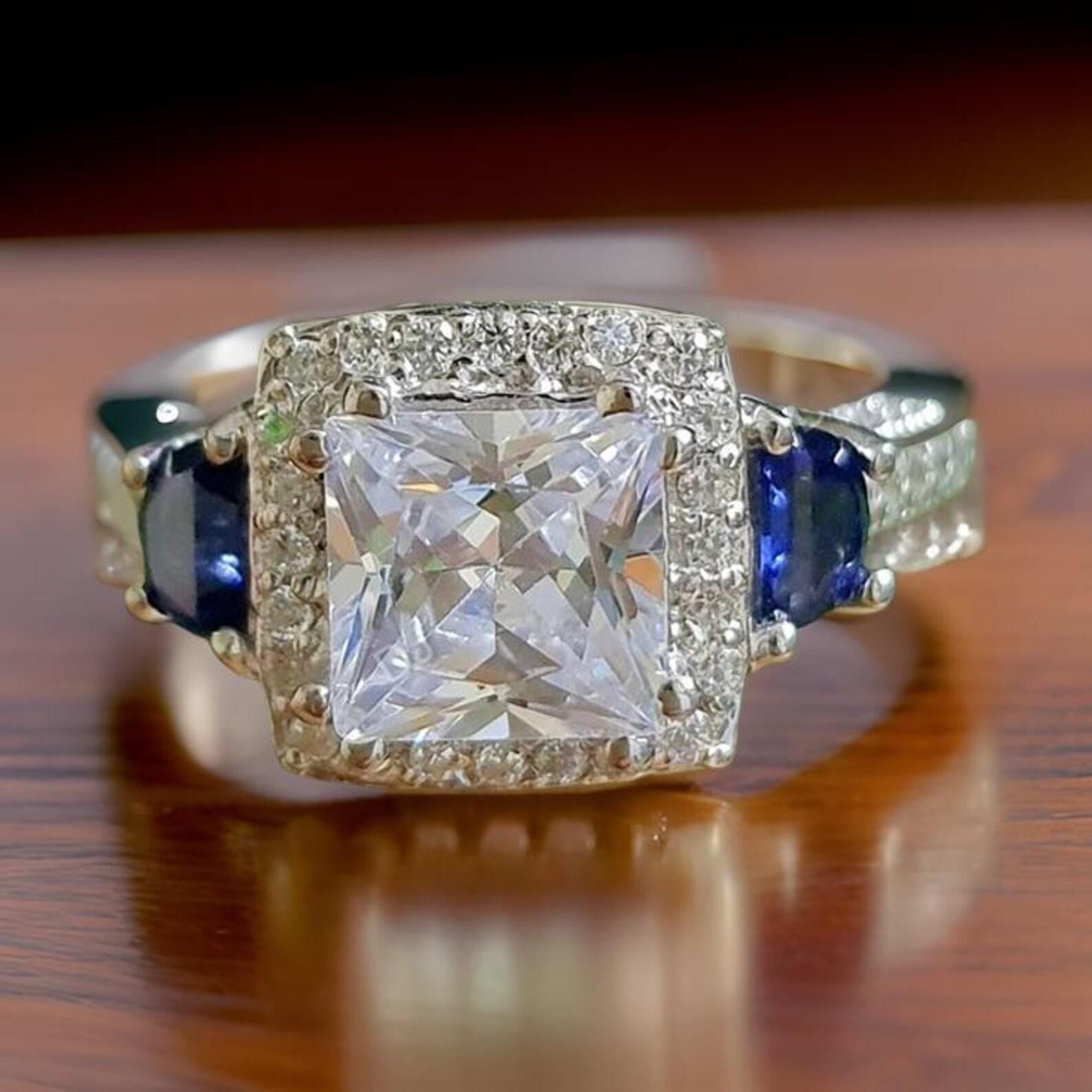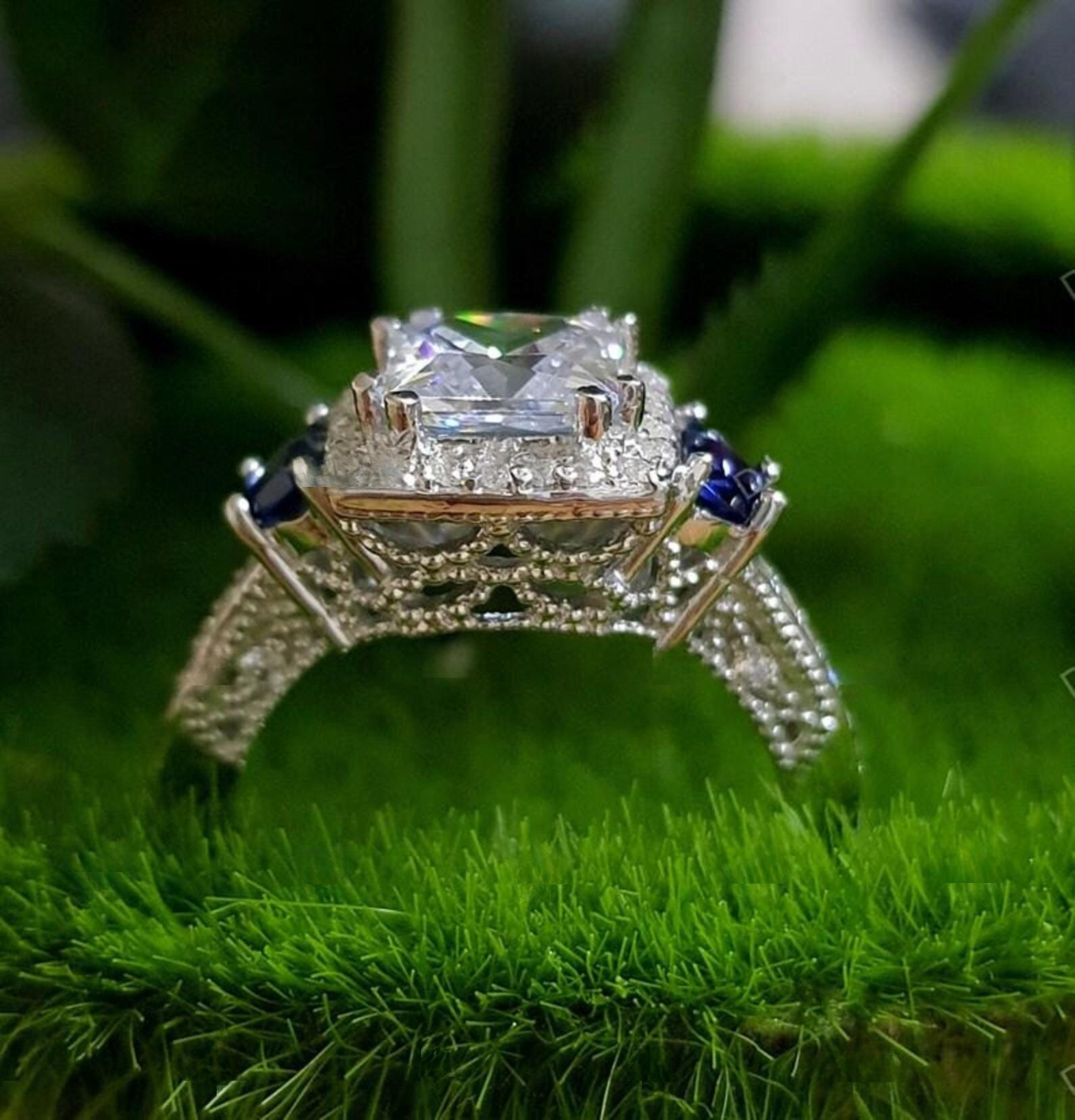 2Ct Princess Cut Halo Simulated Diamond Solitaire Engagement Anniversary Ring 14K White Gold Finish 925 Sterling Silver Wedding Gift For her