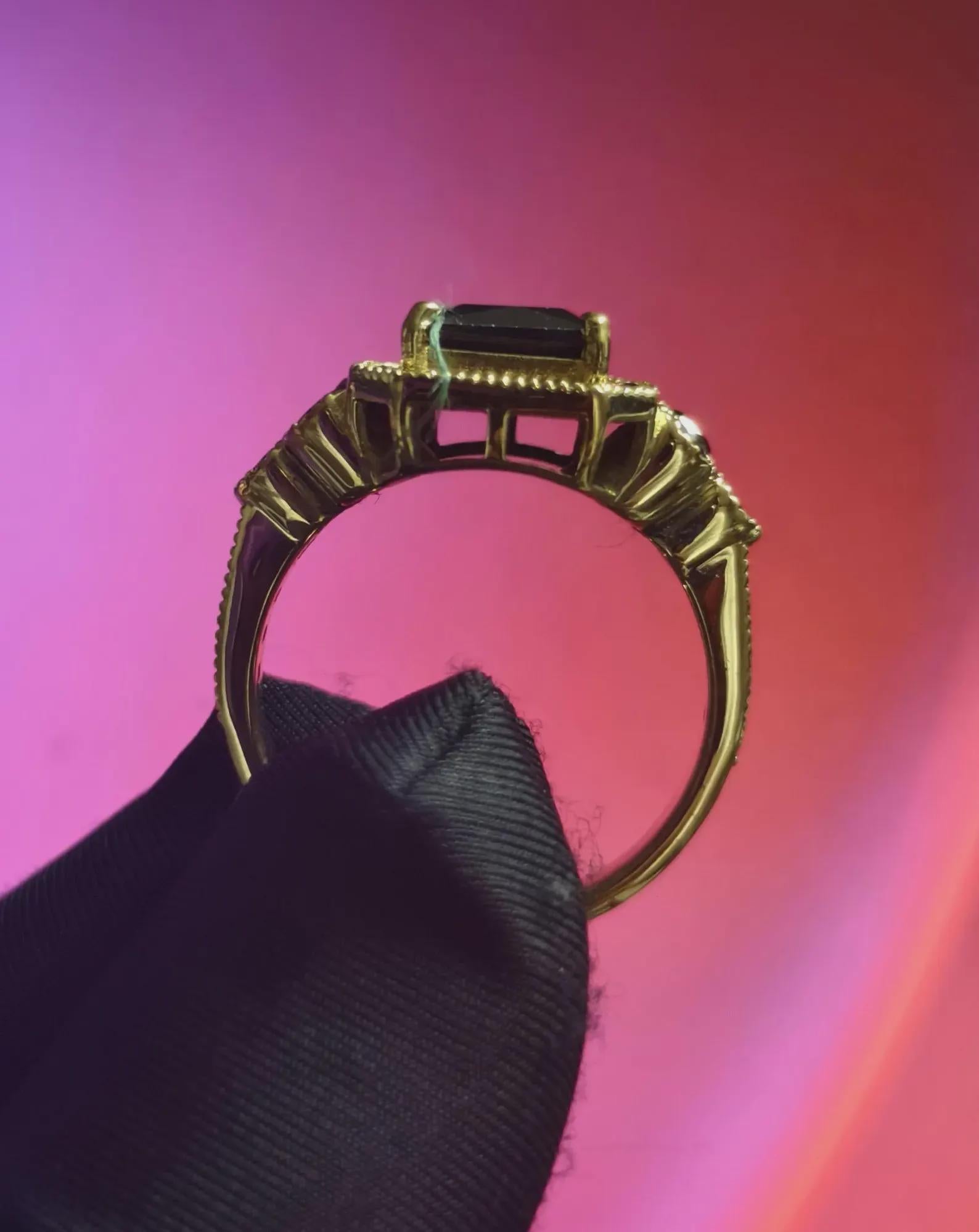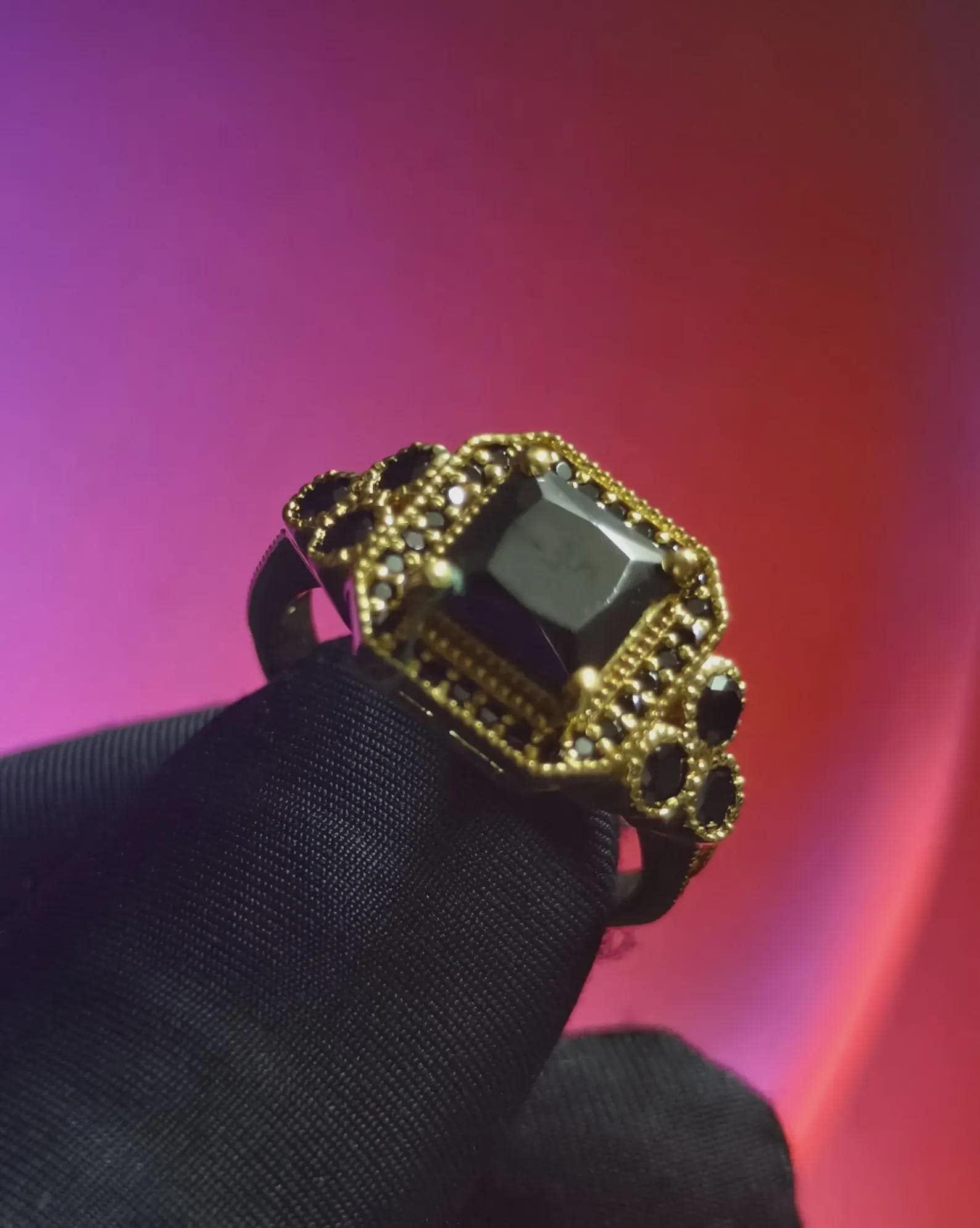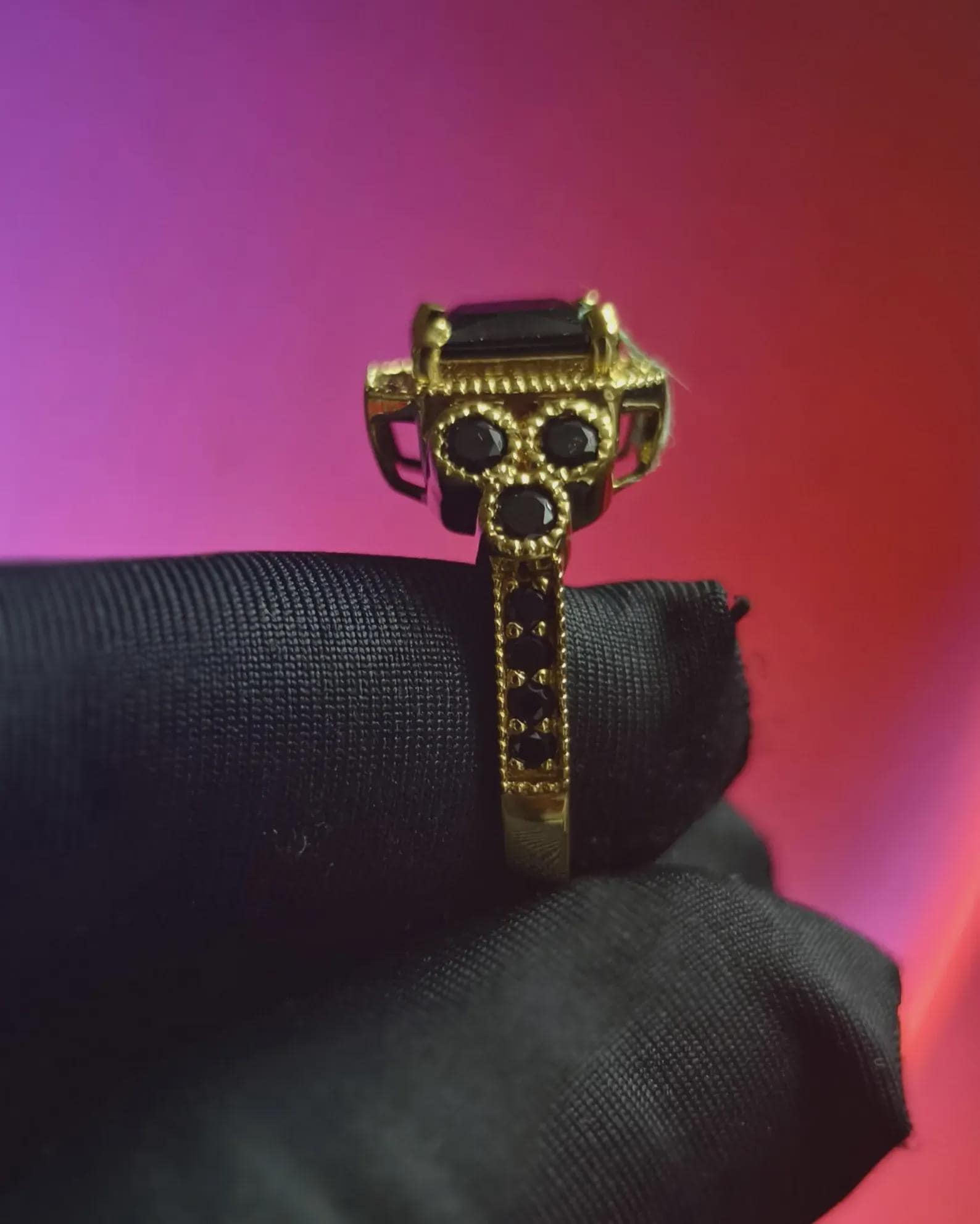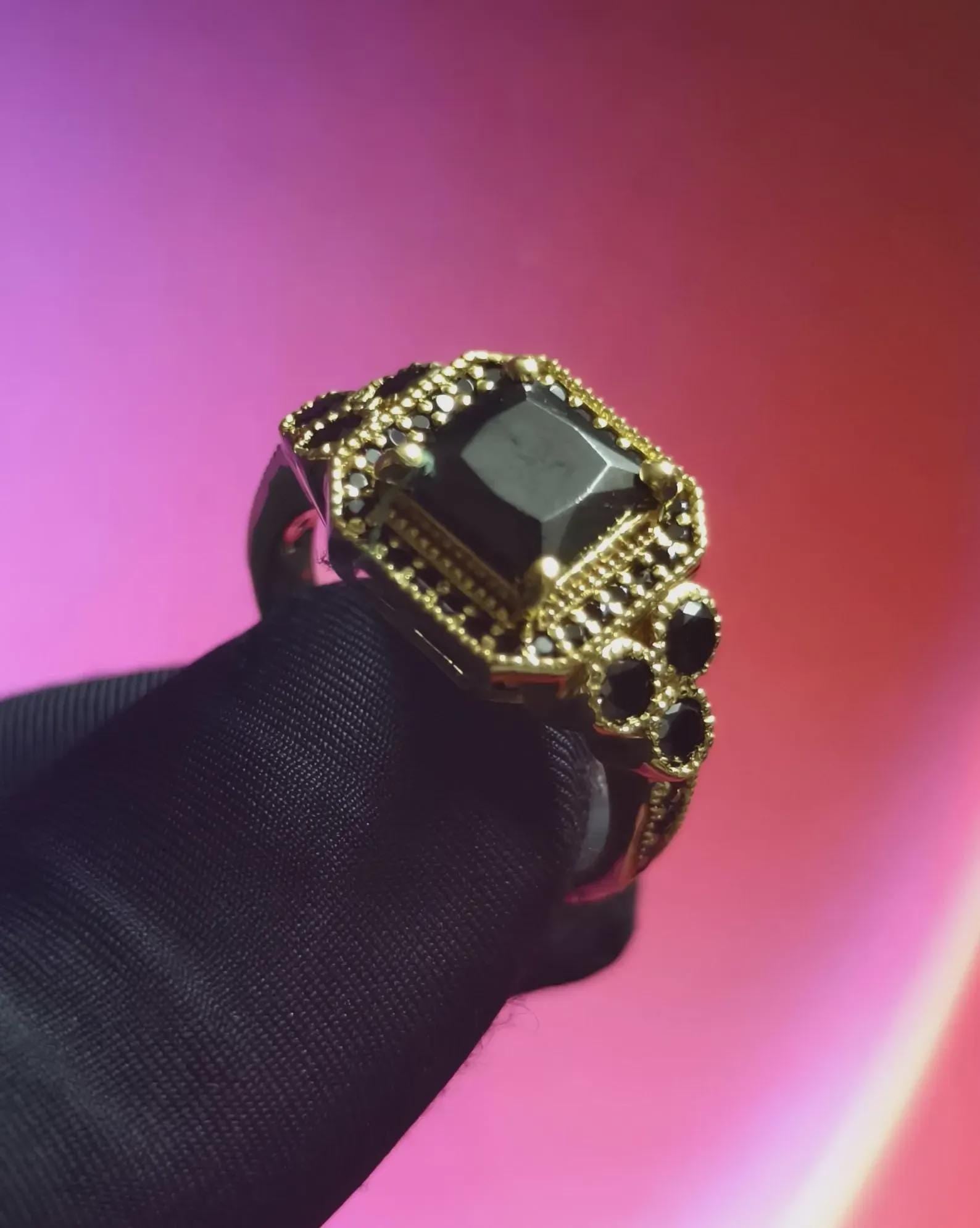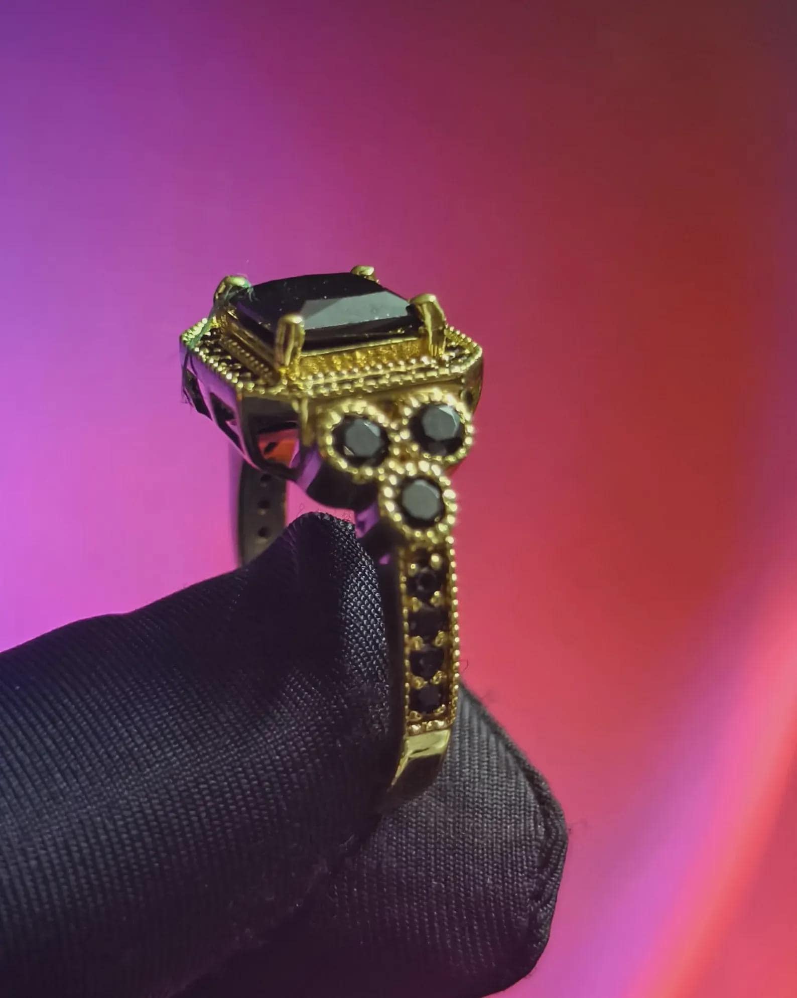 2Ct Princess Halo Wedding Ring Black Spinel 14K Yellow Gold Plated 925 Sterling Silver, Anniversary Ring, Gift For Birthday Or Party