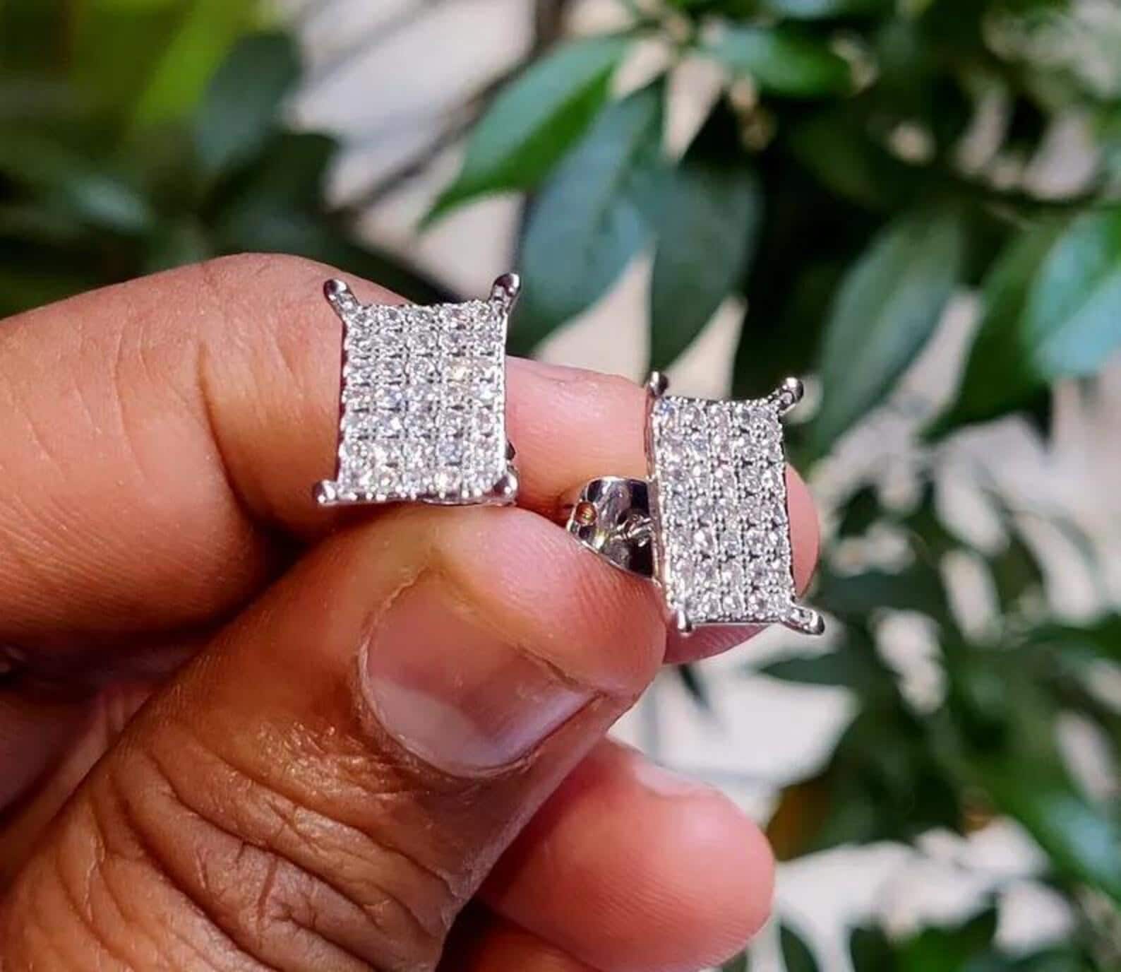 2Ct Round Cut Cluster Stud Earrings Simulated Diamond Earrings 14K White Gold Plated 925 Sterling Silver, Push back , Gift For Birthday