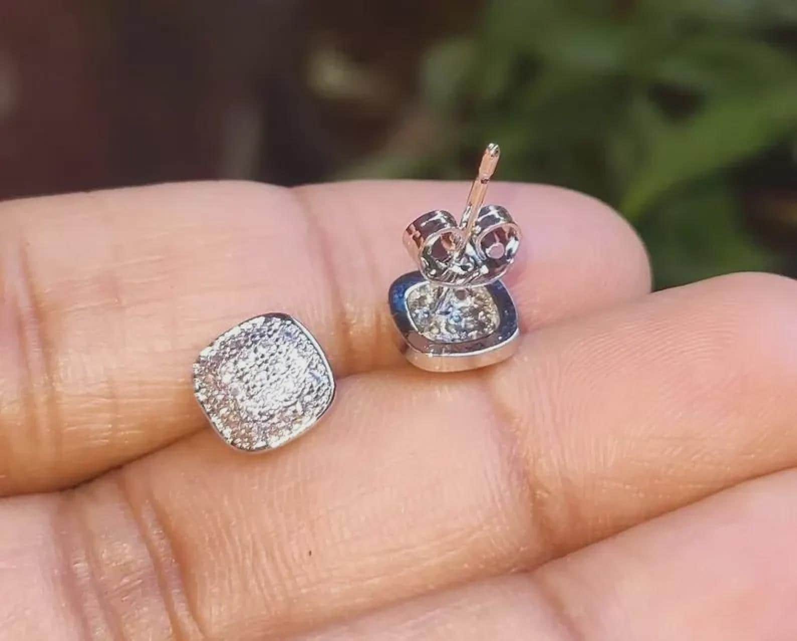 2Ct Round Cut Diamond Cluster Halo Women's Stud Earrings 14K White Gold Finish 925 Sterling Silver Hip Hop Stud Earrings