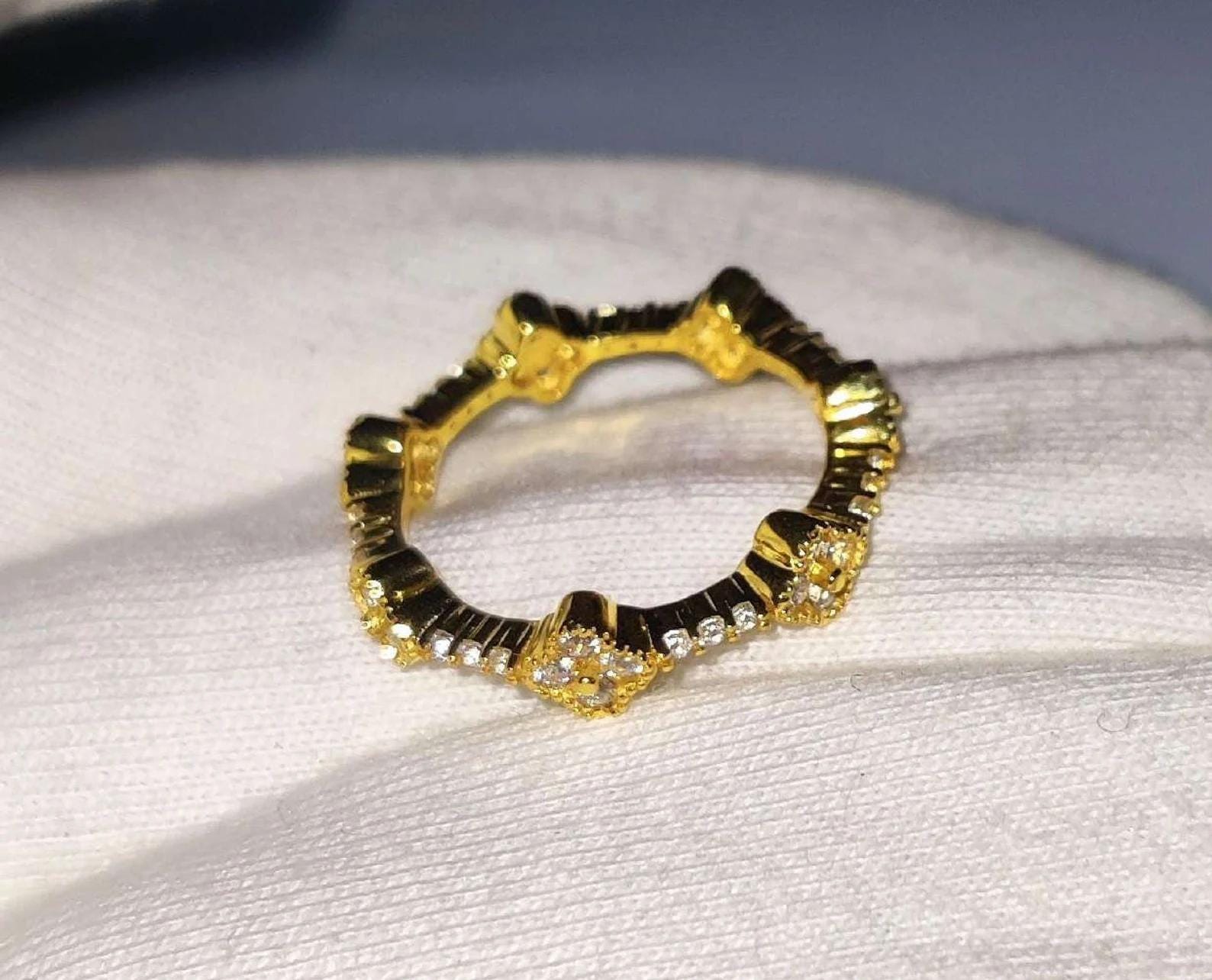 We would be more than happy to customize the item according to your specific requirements. If you have any special requests, please feel free to contact us, and we will do our best to accommodate them. For additional personalization, we can modify the gemstones, the width of the band, and the curvature of the rings to match your desired style and preferences.